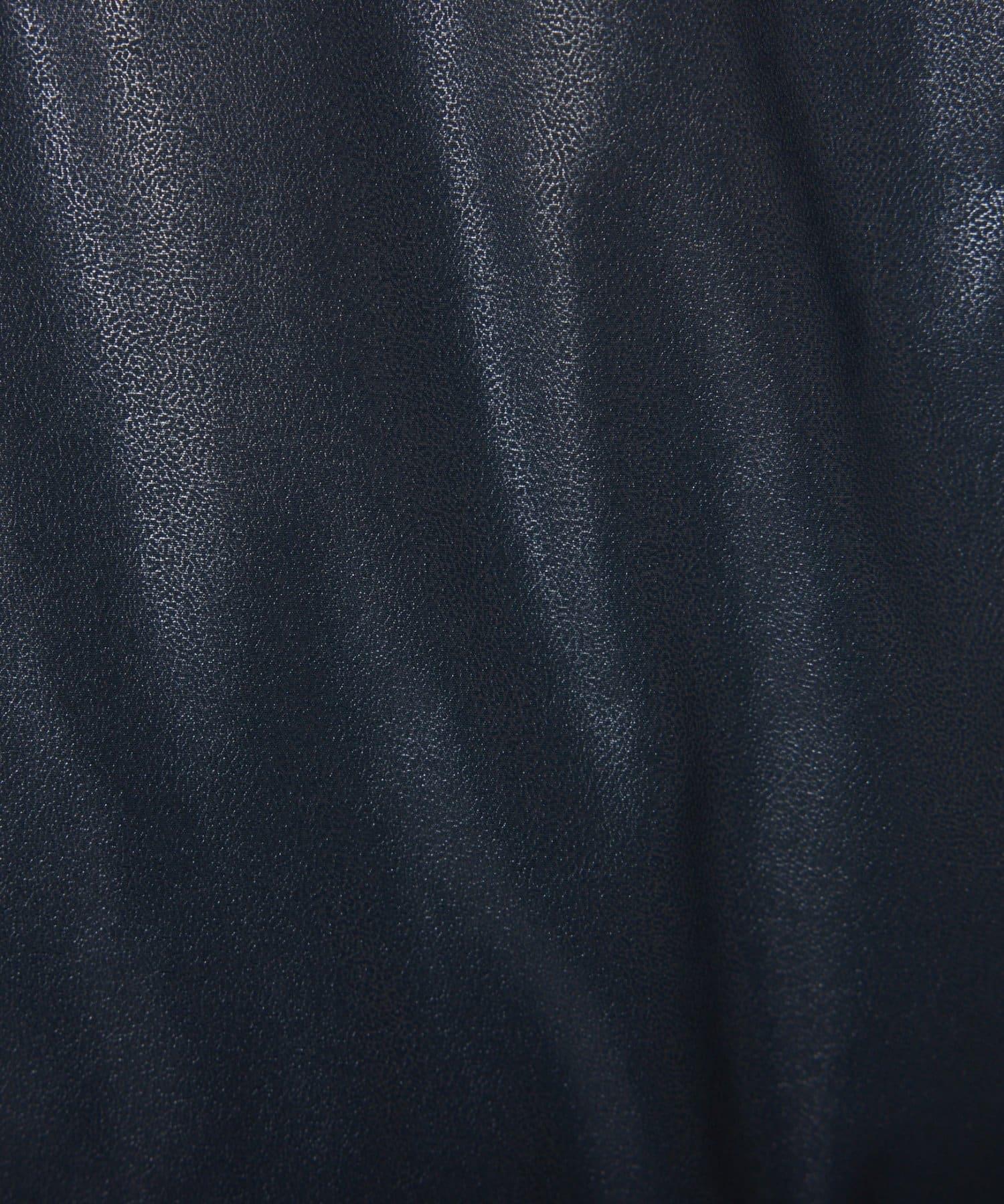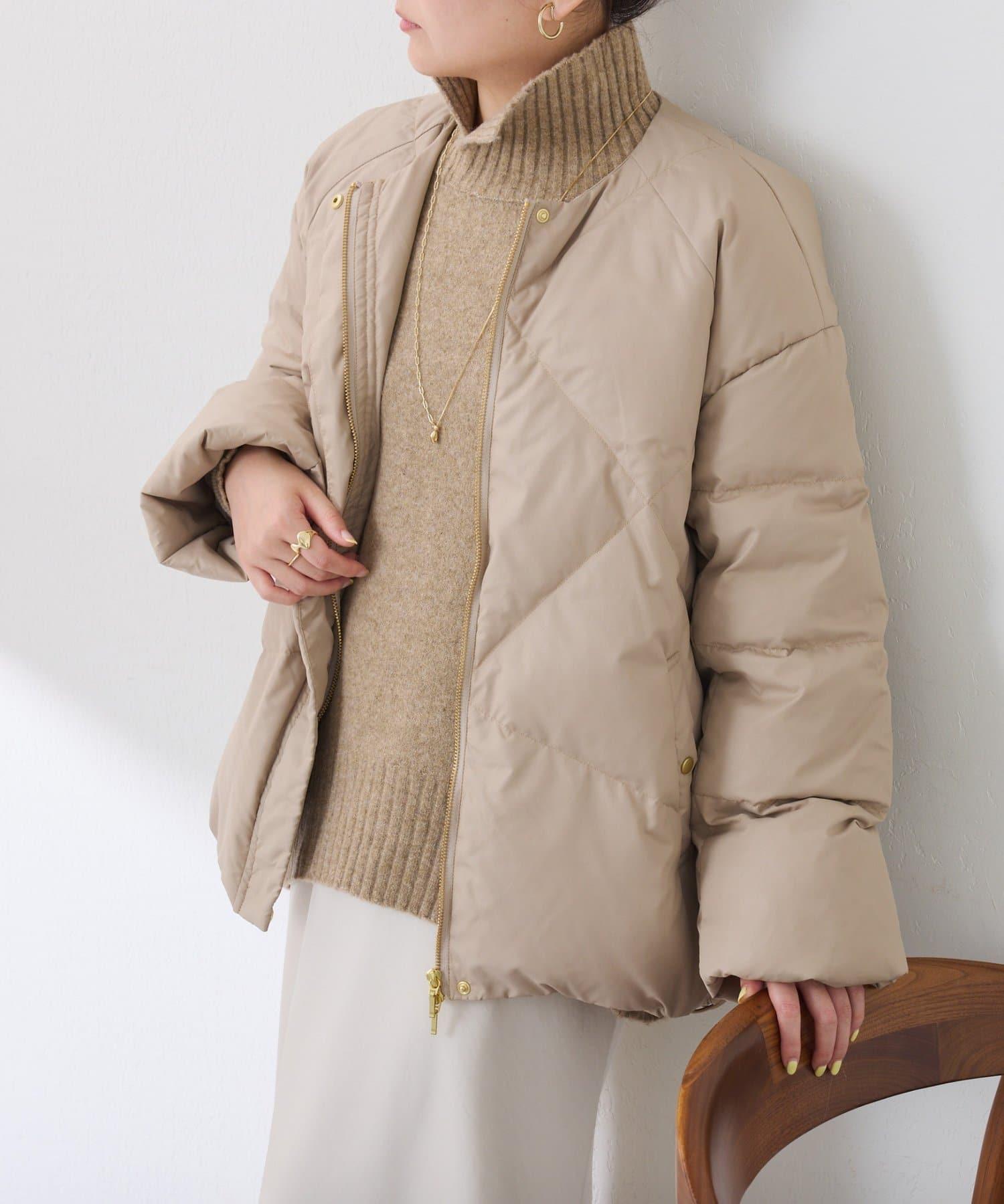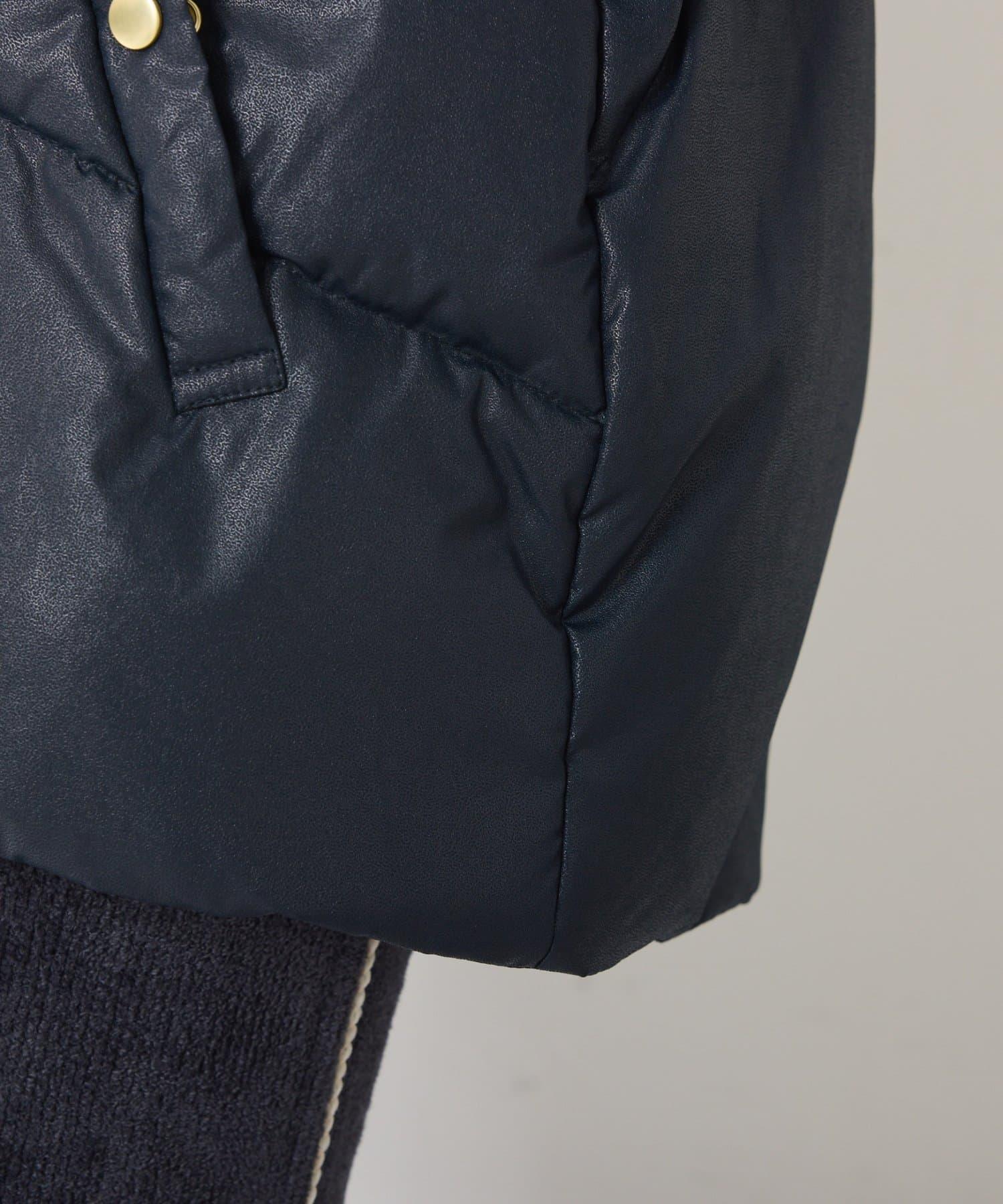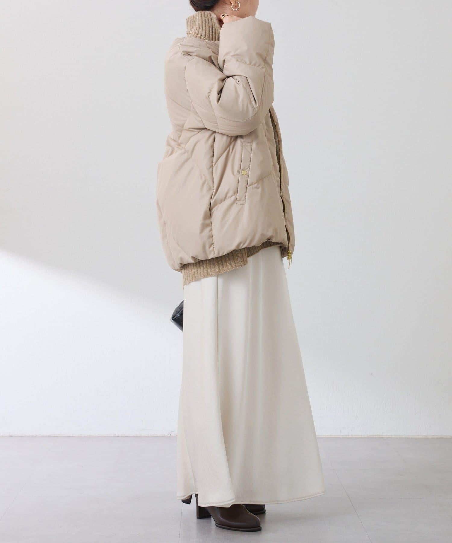 這款無領羽絨服採用壓花織物,看起來像皮革。啞光質感給人以沉穩的印象。