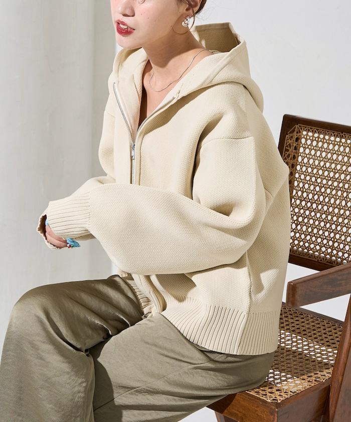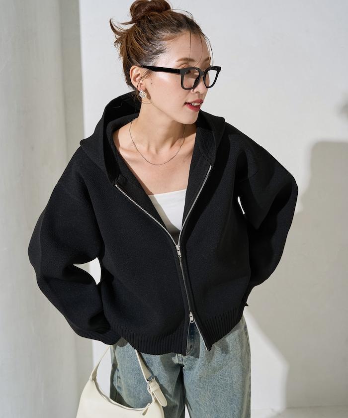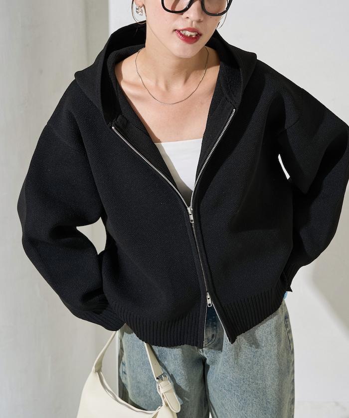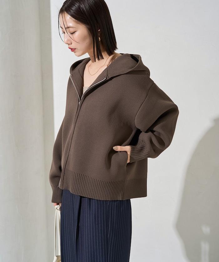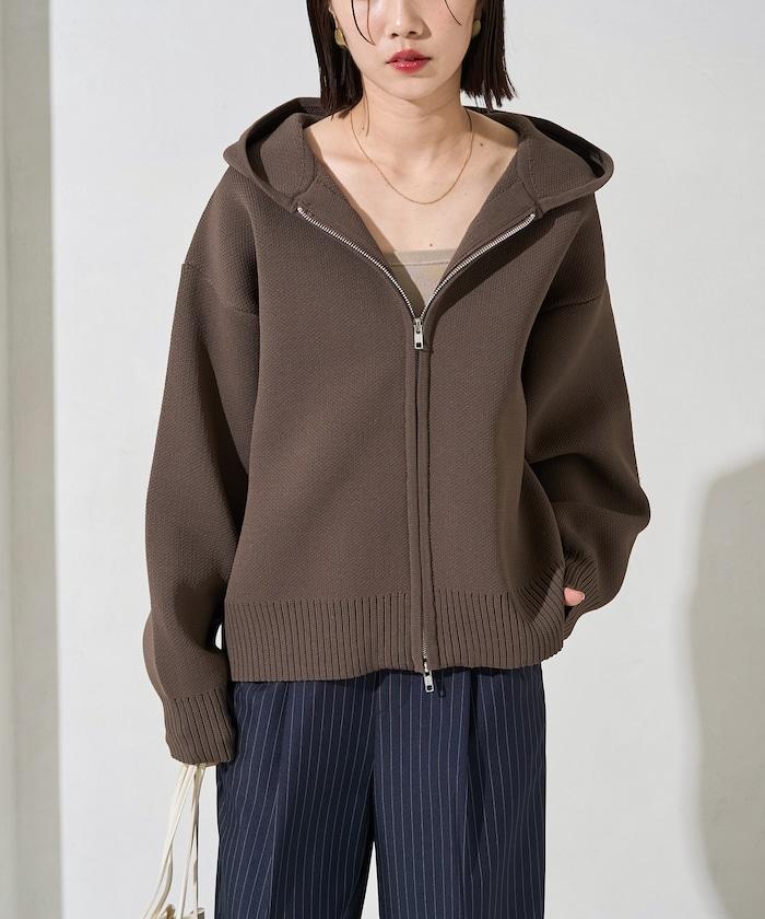 全拉鍊連帽外套,採用輕便優質的針織面料,不會過於隨意。