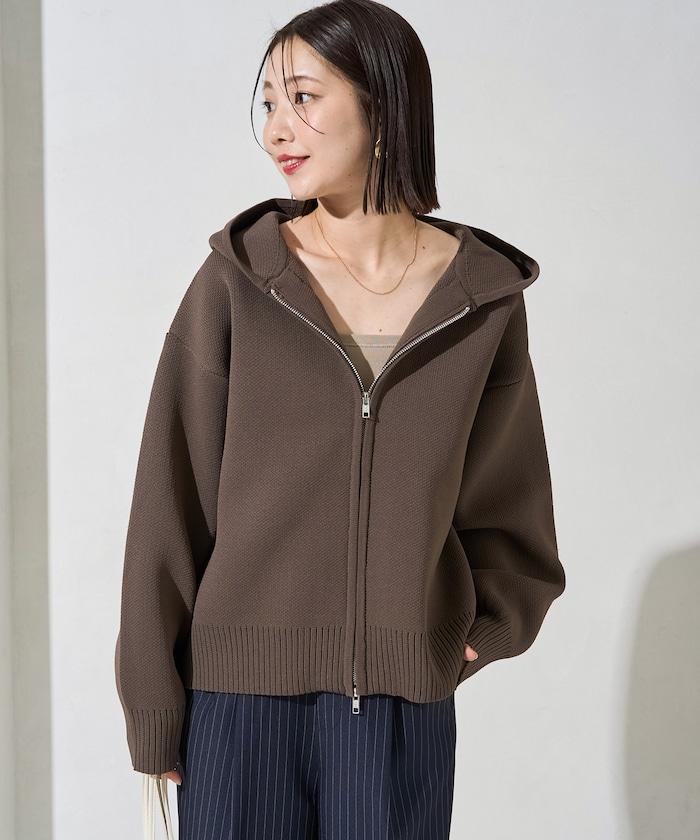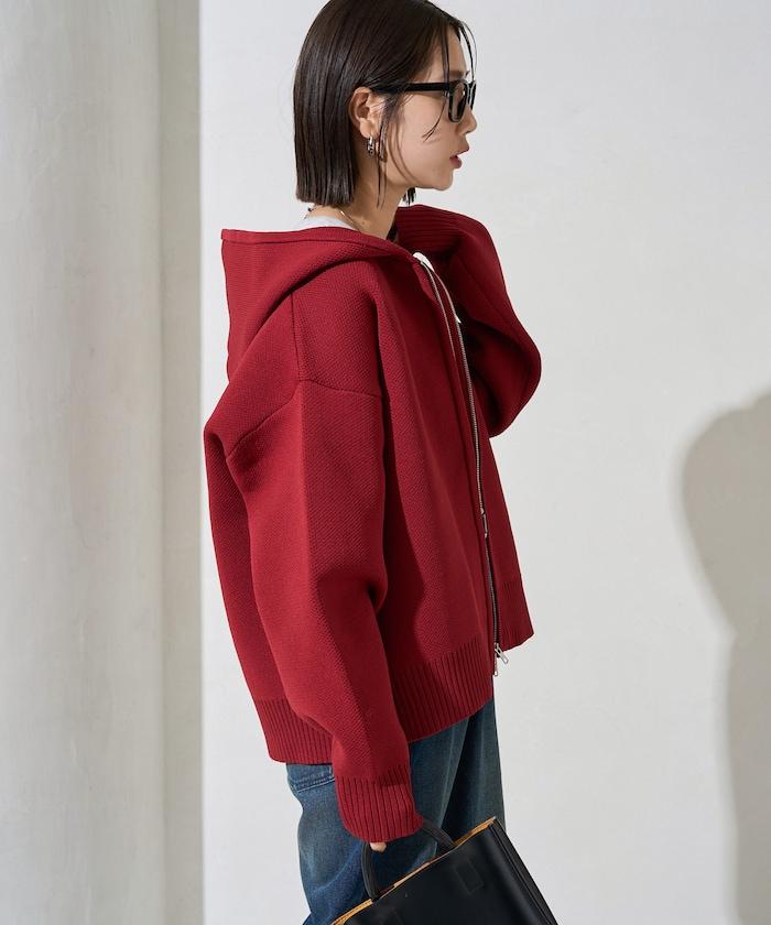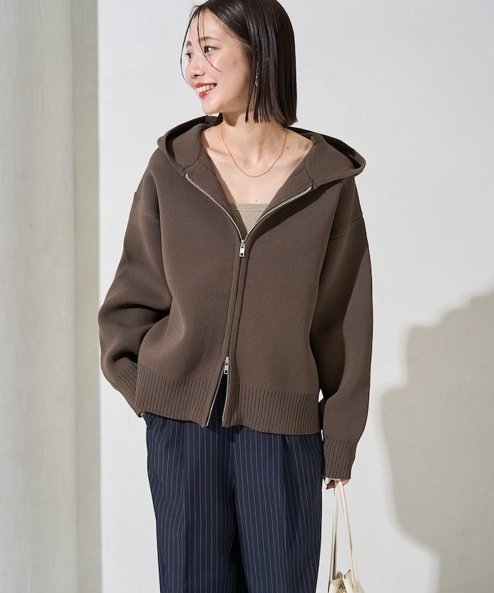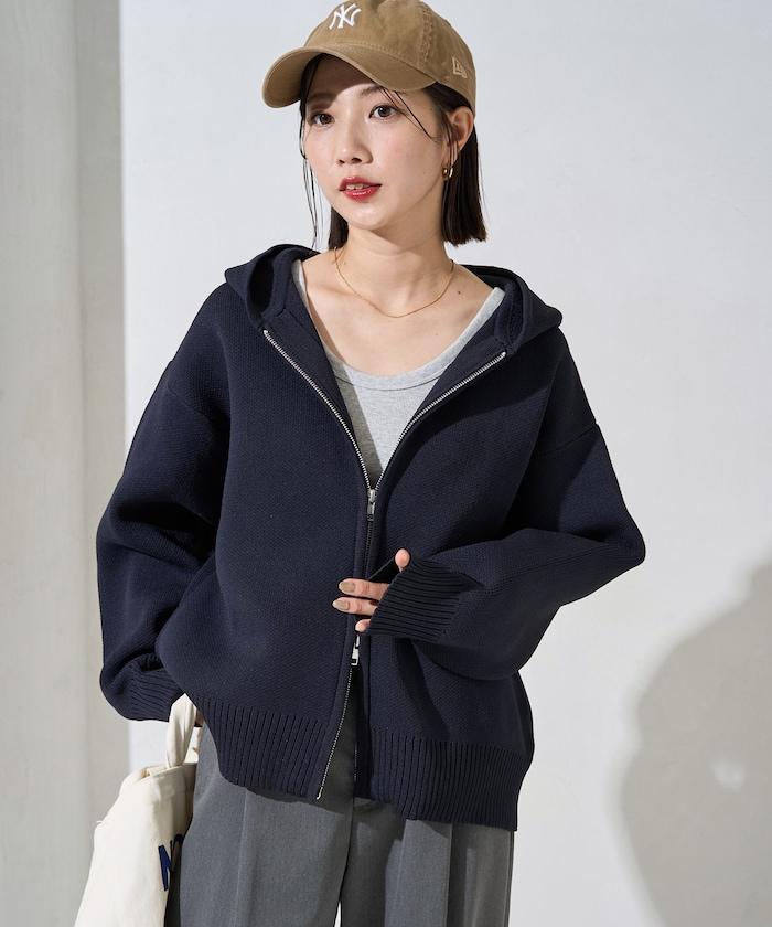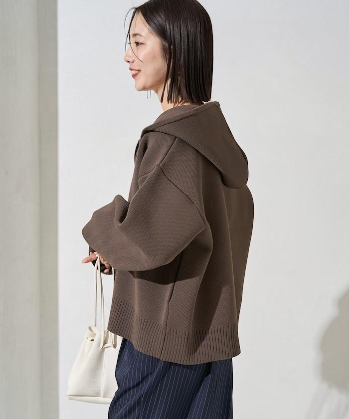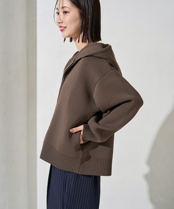 全拉鍊連帽外套,採用輕便優質的針織面料,不會過於隨意。