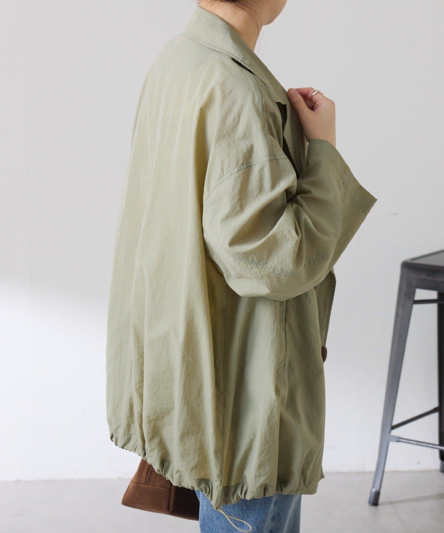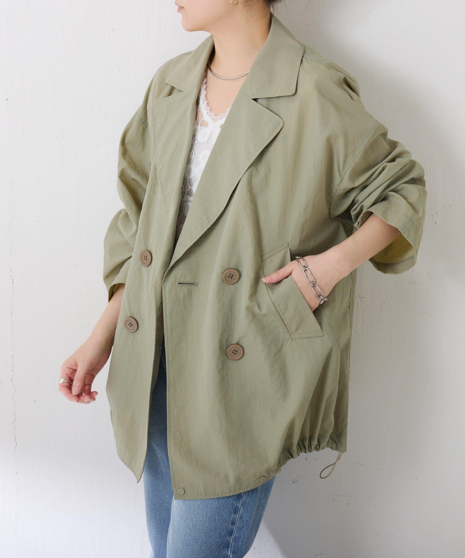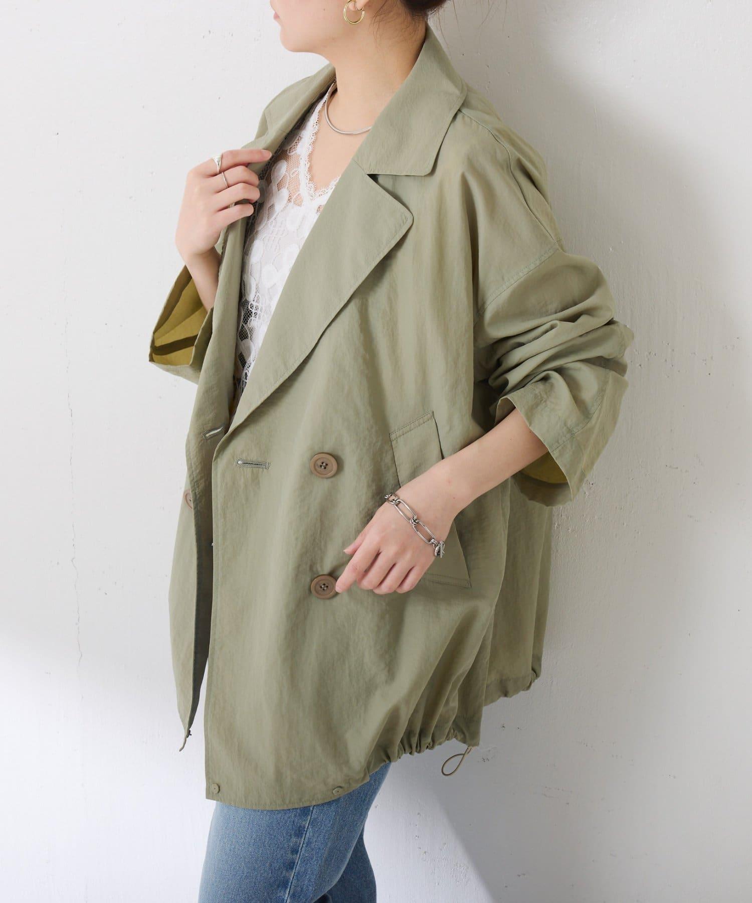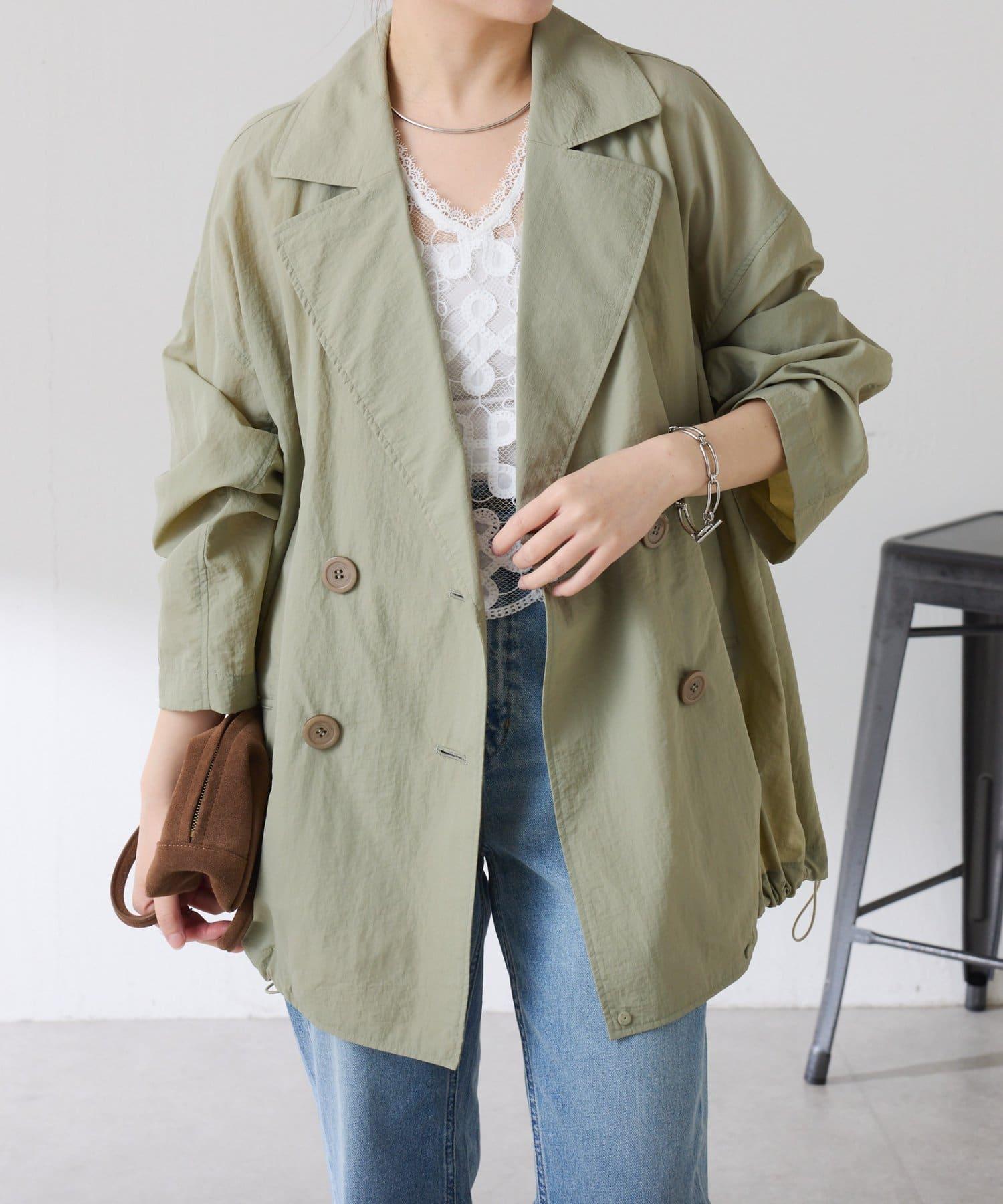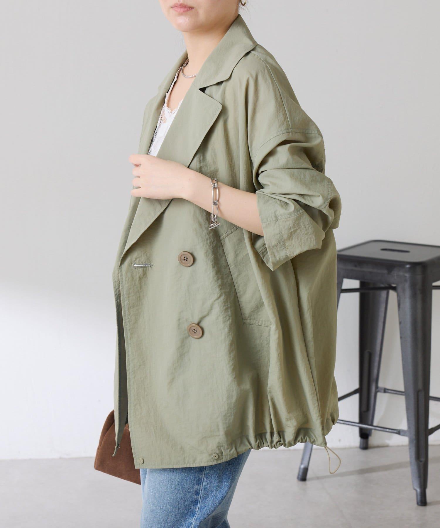 風衣的設計看起來很整潔,但如果擠壓下襬的抽繩繩帶,也可以像罩衫一樣穿著。