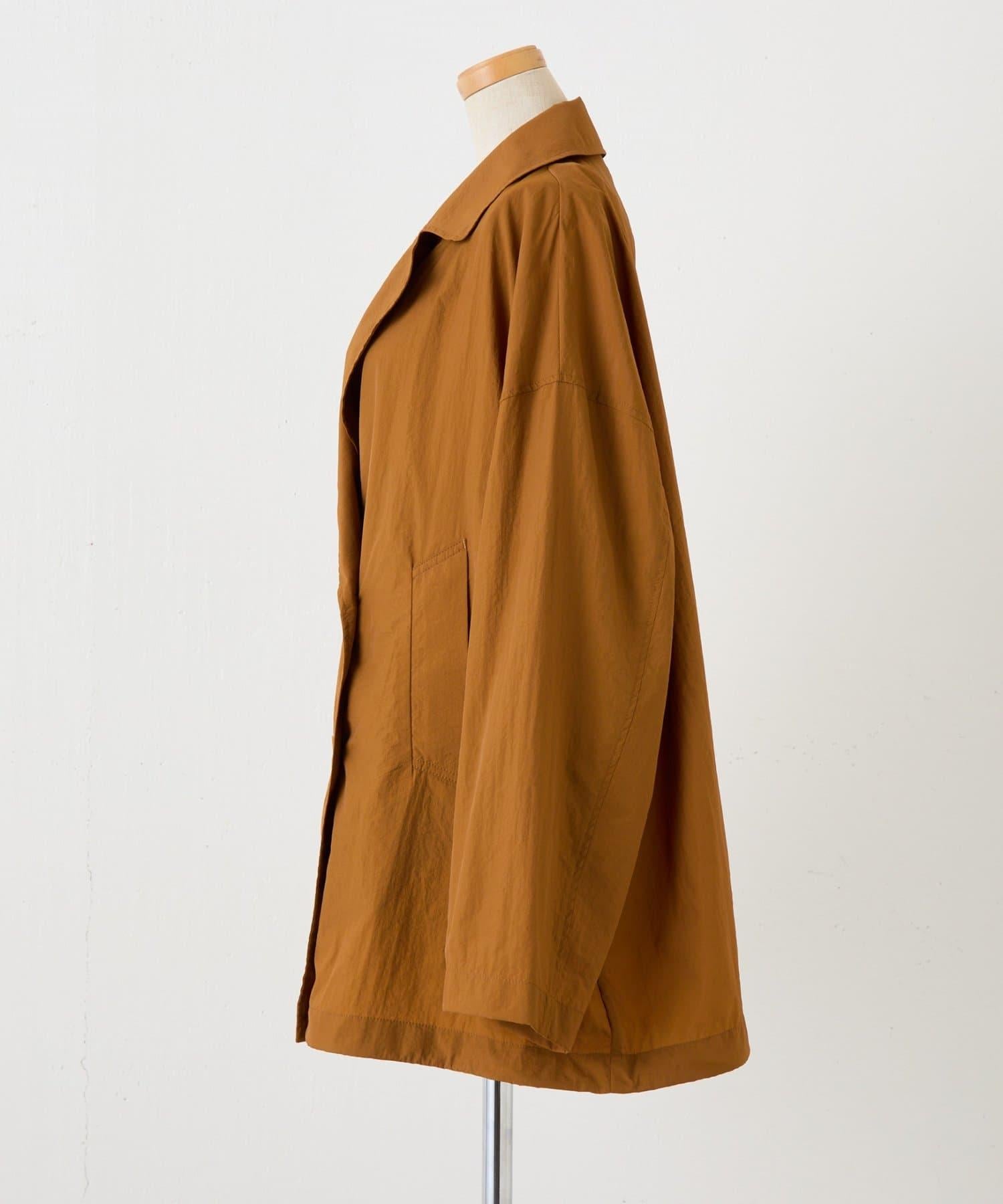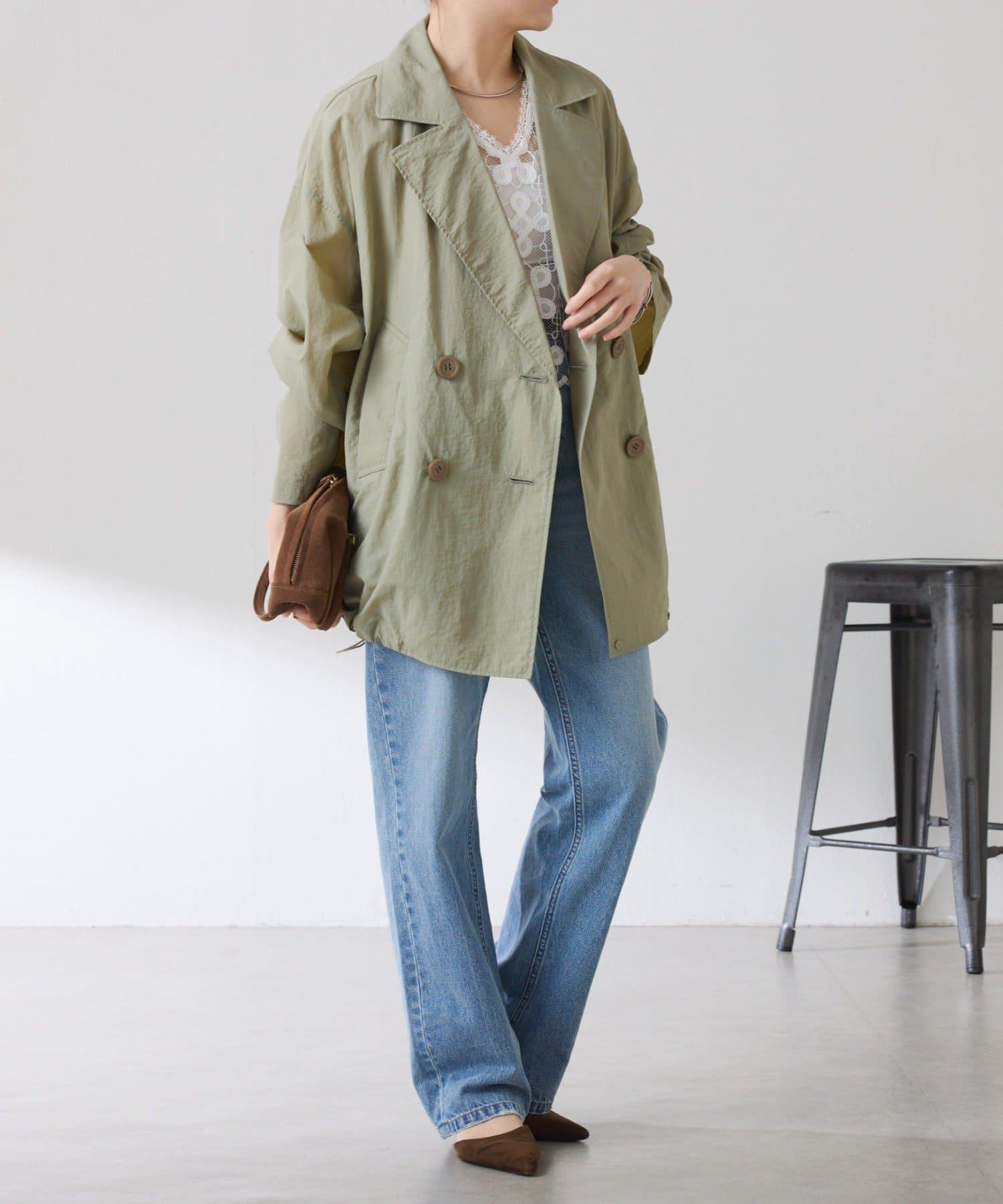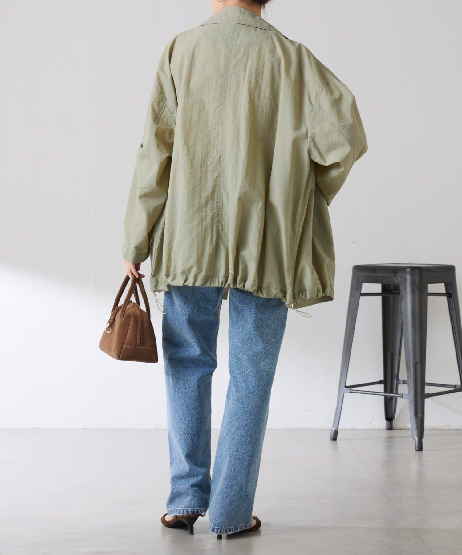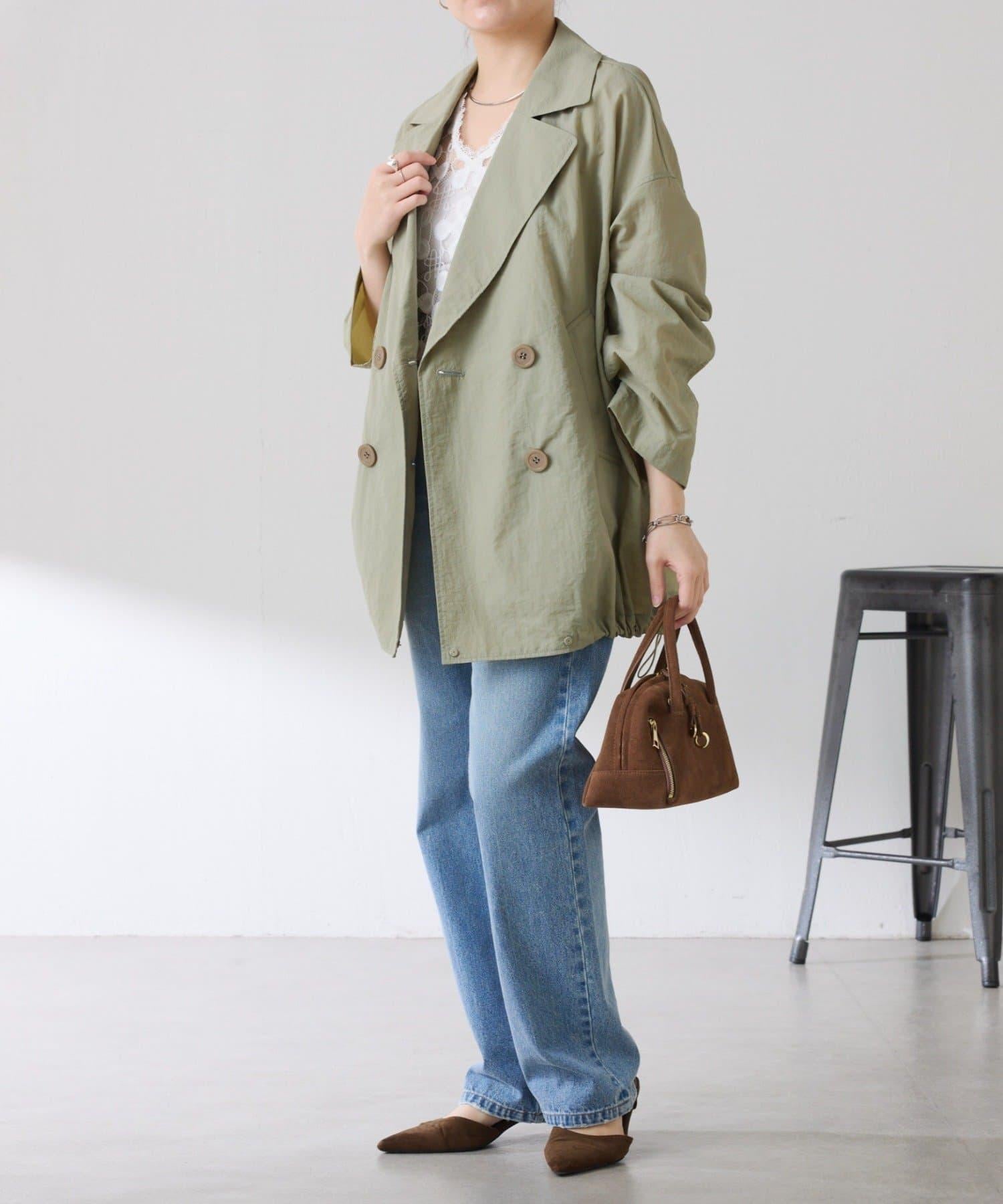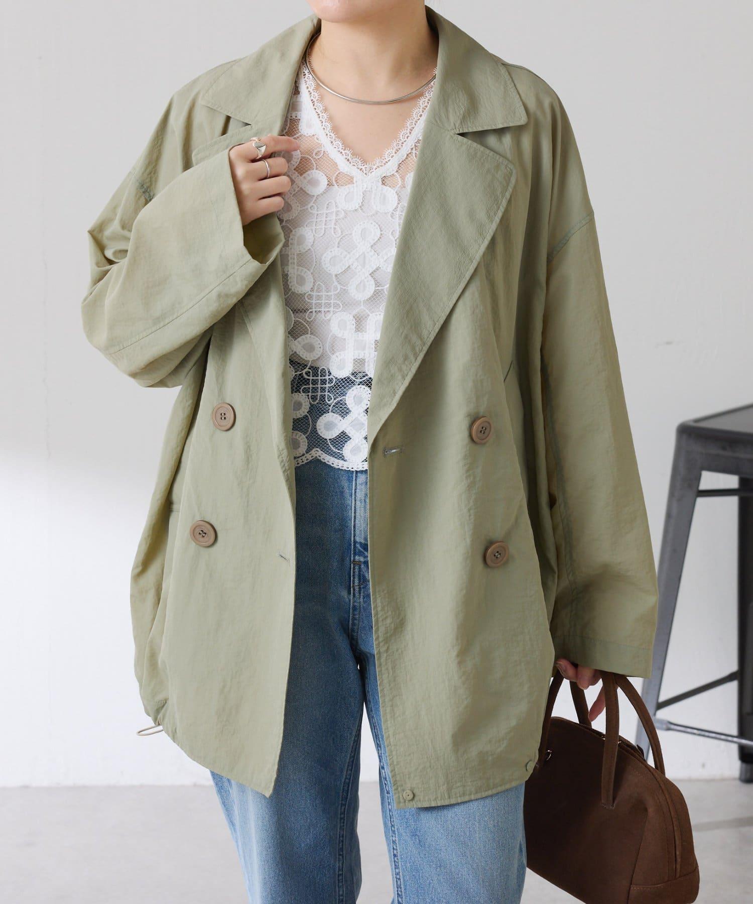風衣的設計看起來很整潔,但如果擠壓下襬的抽繩繩帶,也可以像罩衫一樣穿著。