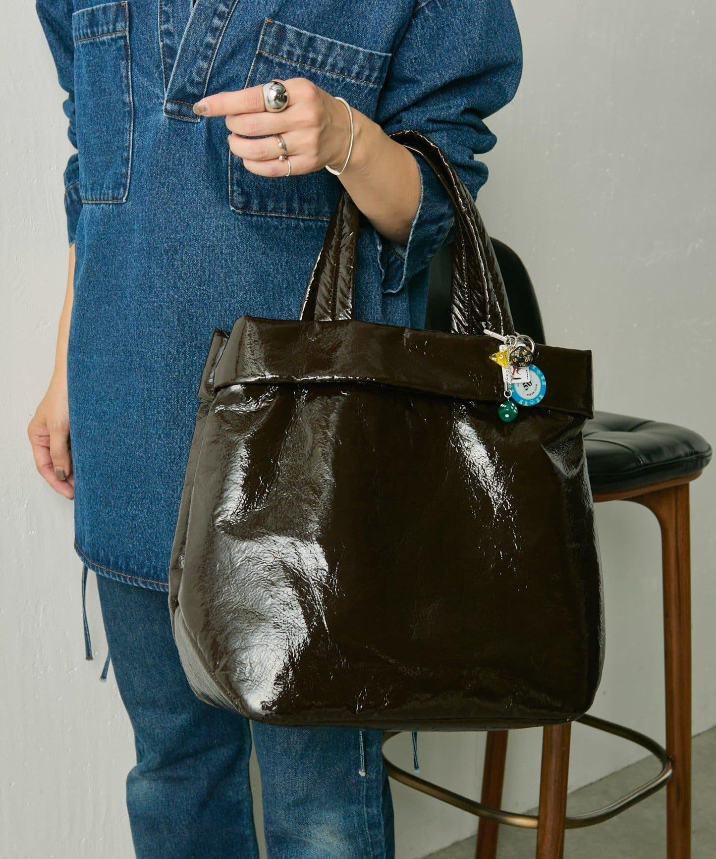 閃耀著光澤的手提包,增添了都市氣息。
