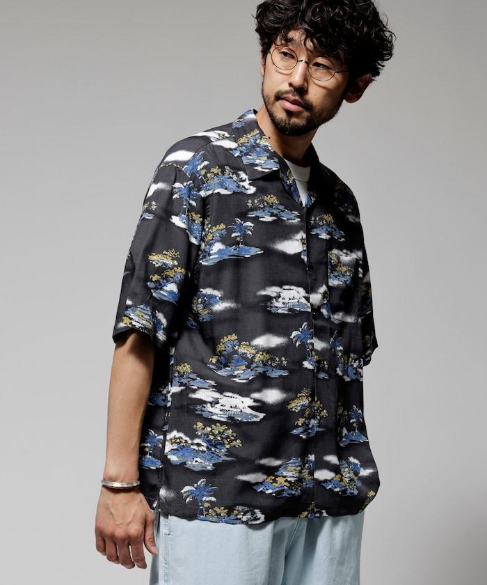 寬鬆版型 可水洗人造絲開領阿羅哈短袖襯衫