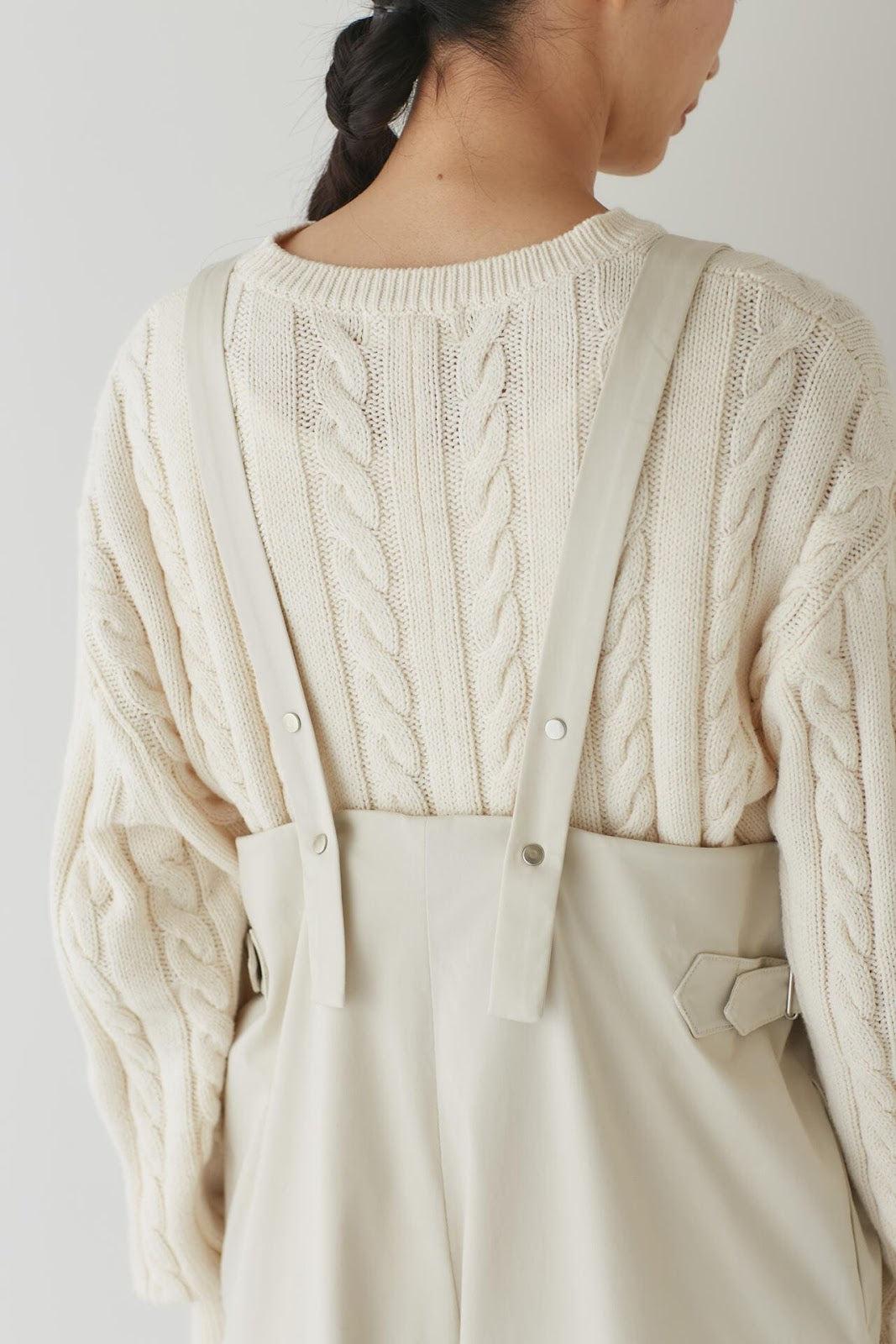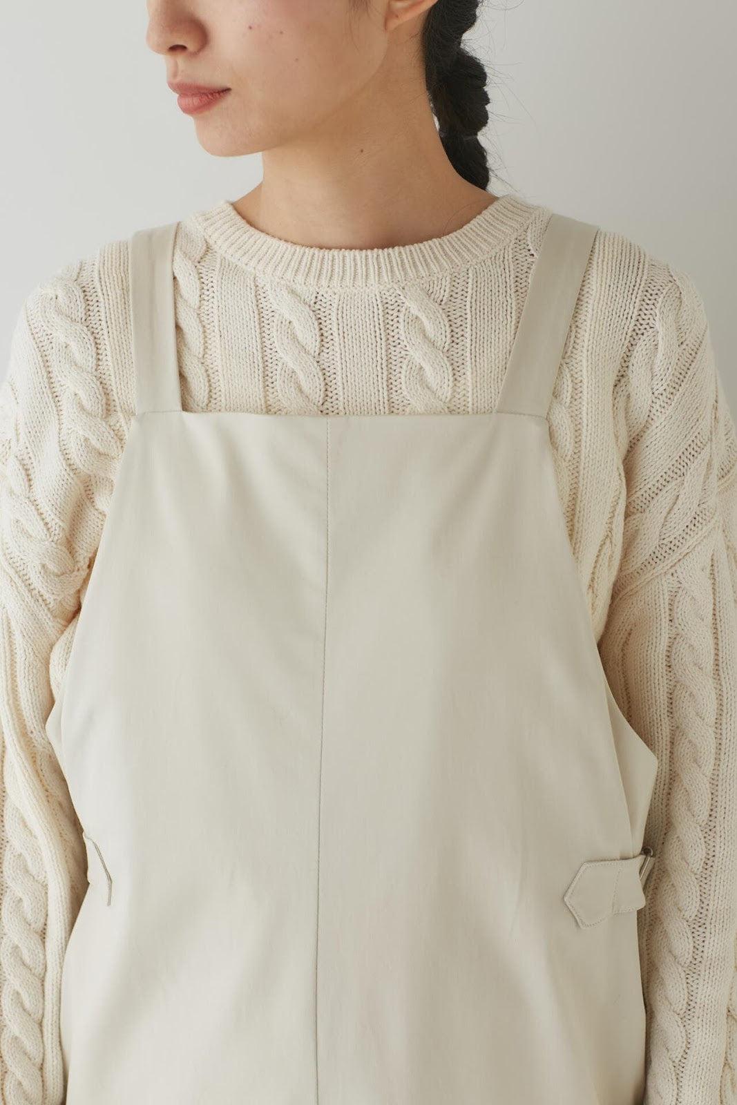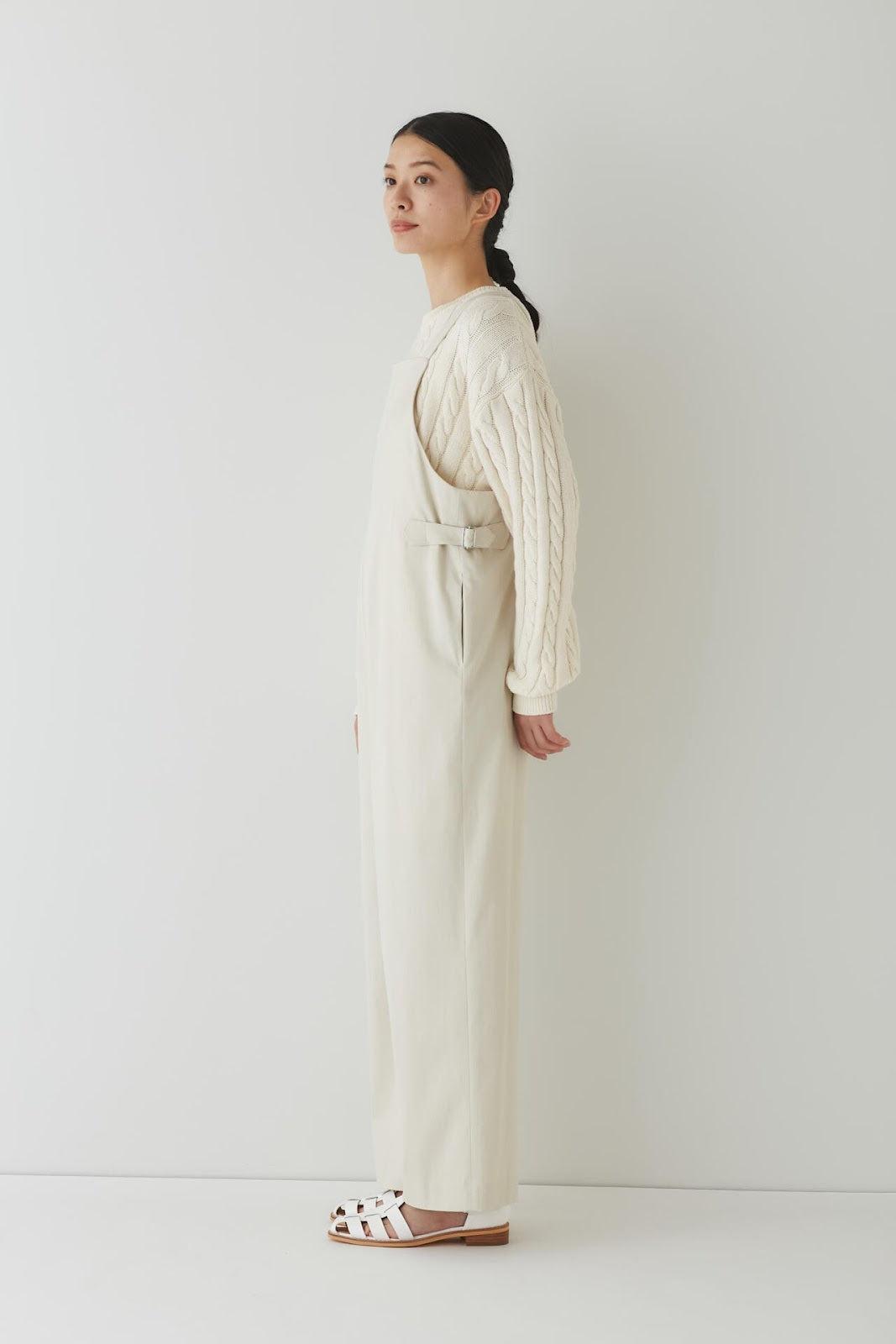 輕鬆打造成人風格的組合 [設計要點] 這款設計簡潔、略帶光澤的組合優雅大方,可通過肩帶背面的圓點紐扣調節長度。迷你腰帶系在側面,您可以寬鬆地穿著,也可以收緊腰帶,讓您看起來更豐滿、更嫵媚。棉質斜紋布面料與 Cupro 混紡面料使其呈現出優雅而略帶光澤的效果。推薦搭配】由於這是一款休閒單品,建議與小巧的針織衫、夾克和其他精美單品搭配。