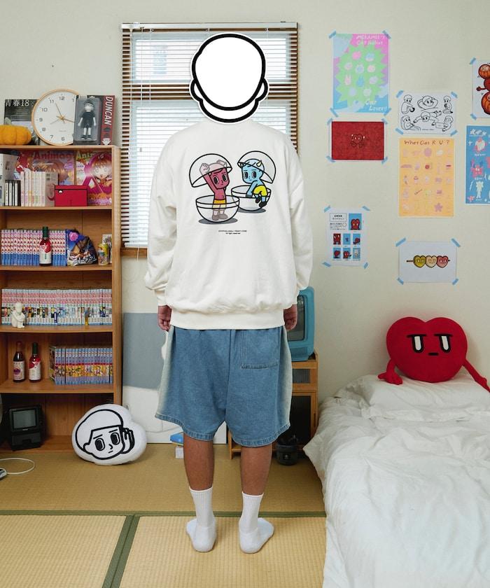 印有臺灣藝術家 Shikyoku Otoko 插畫的運動衫。