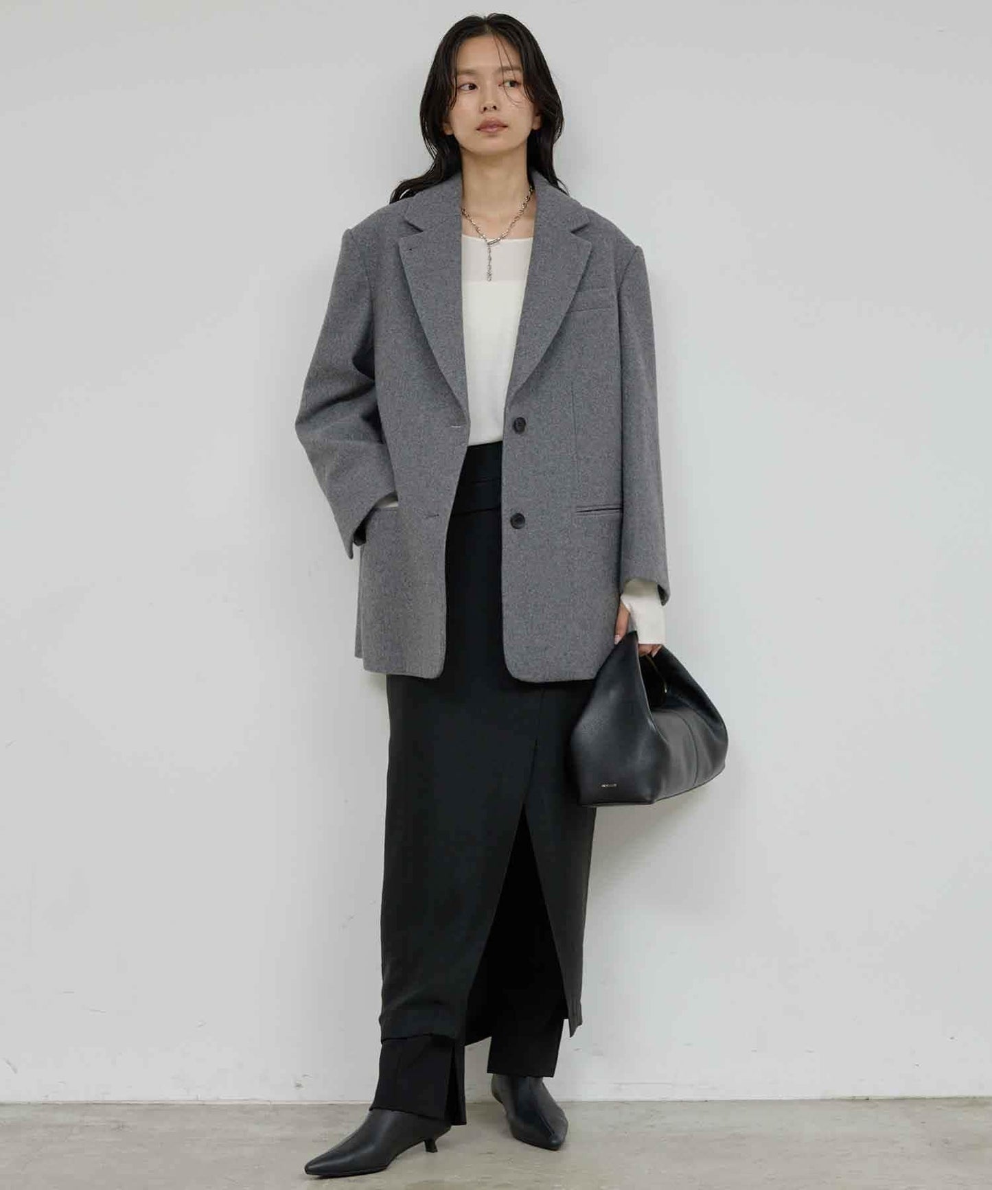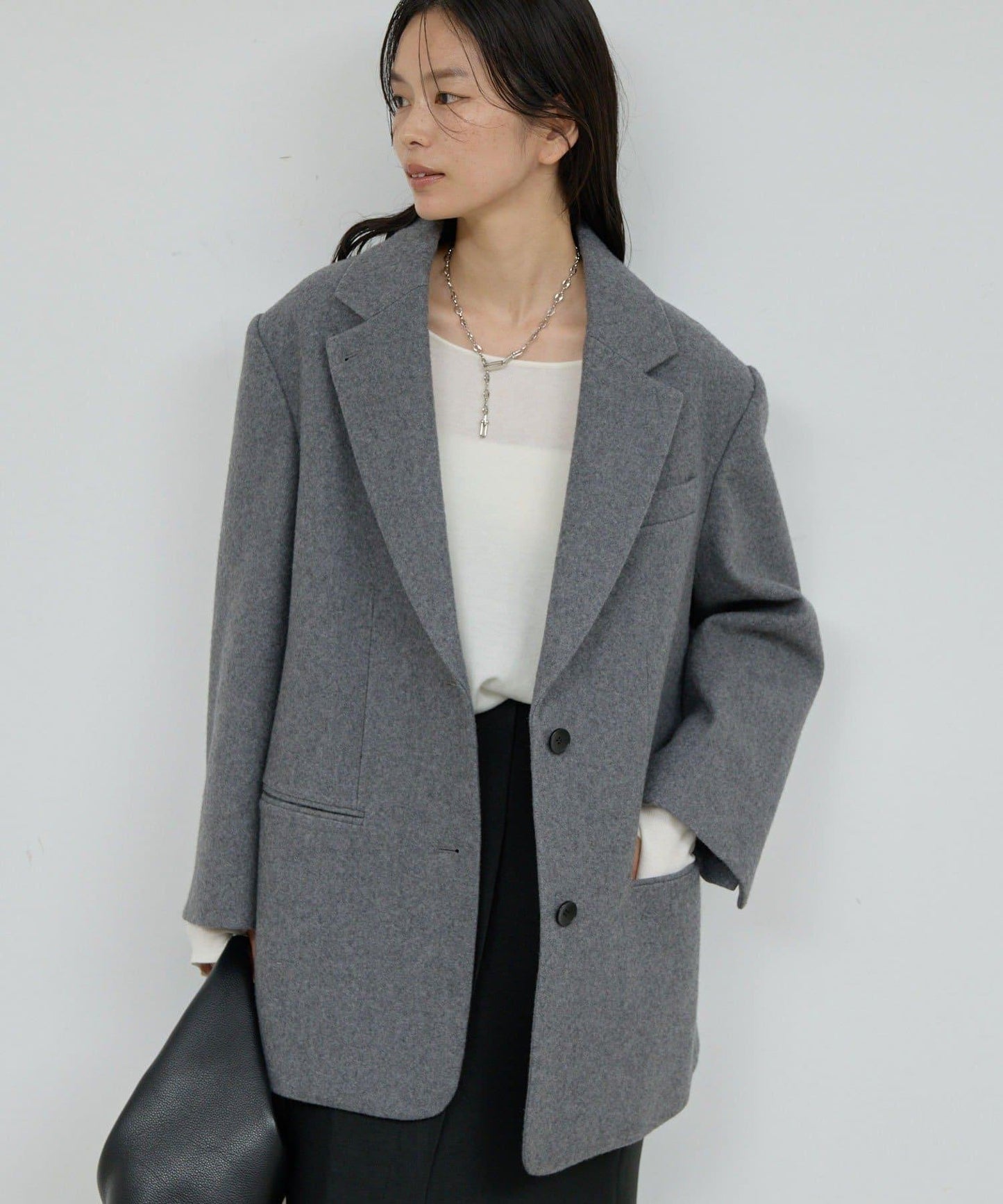 超大輪廓的時尚羊毛外套。