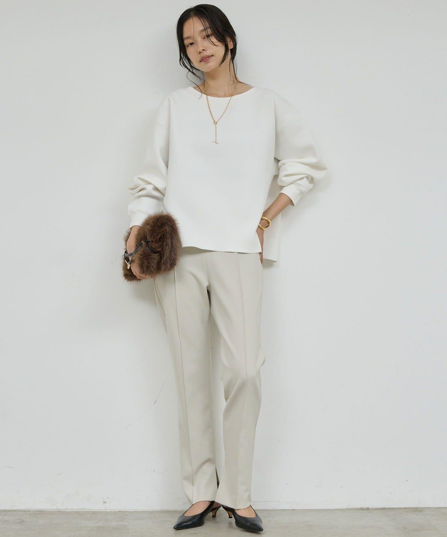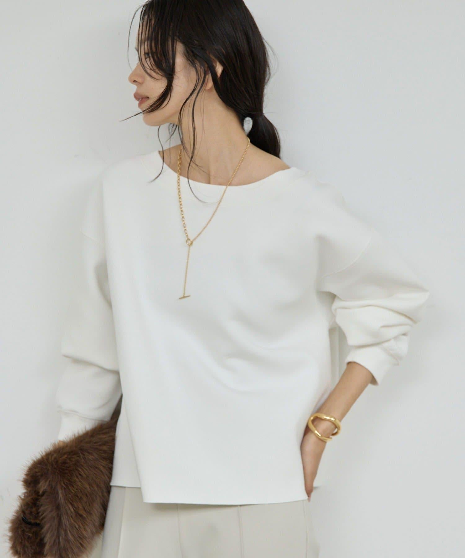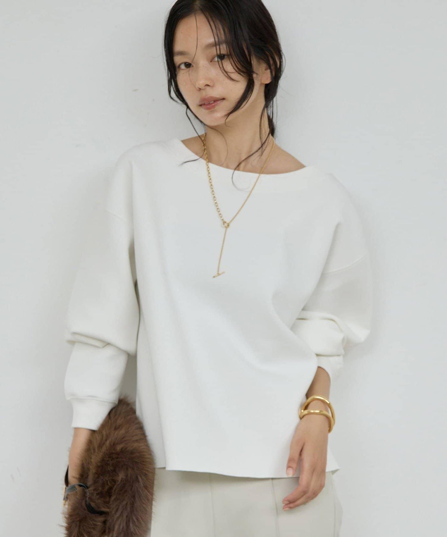 船形領口將肩部曲線展現得淋漓盡致,盡顯女性魅力。