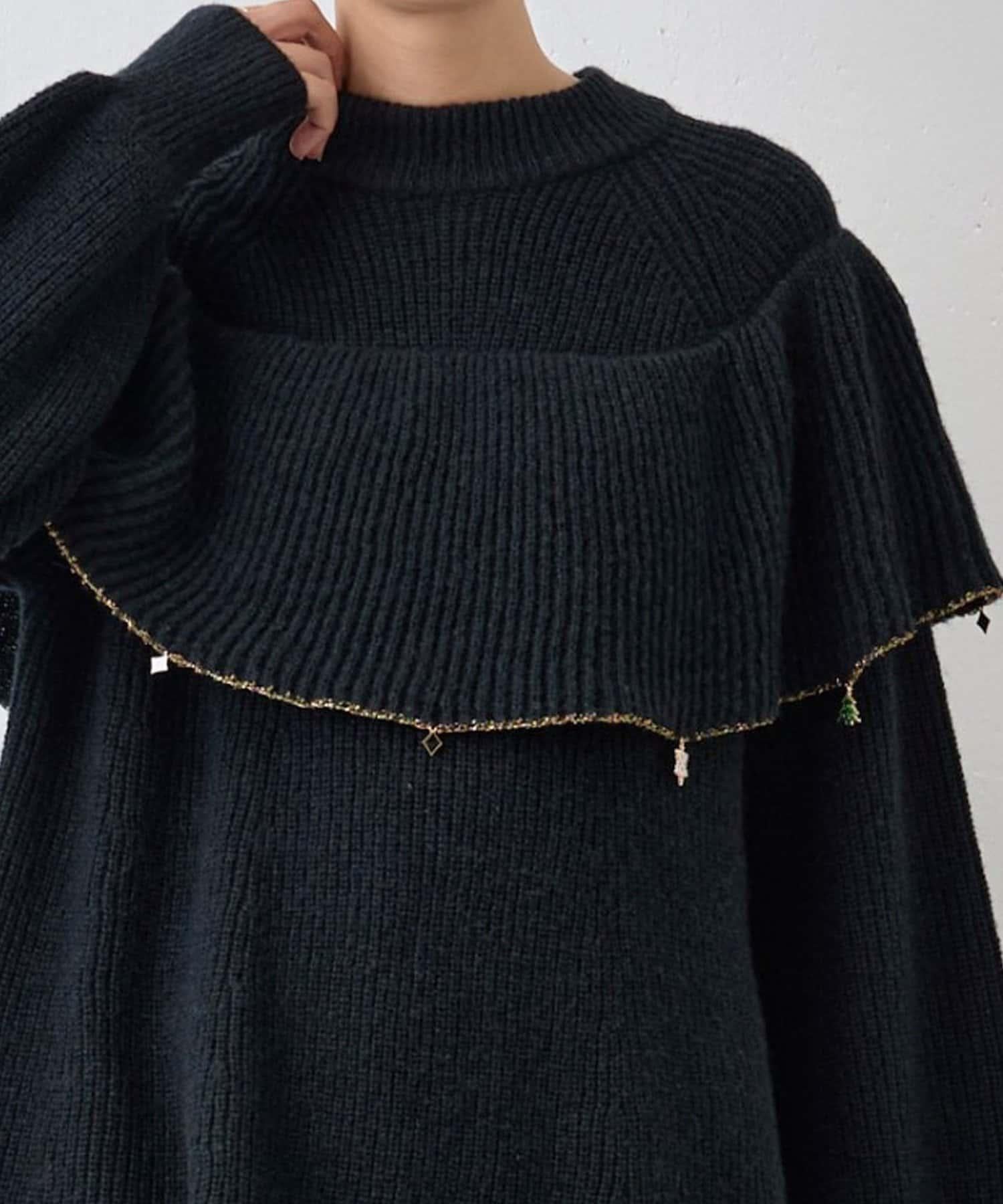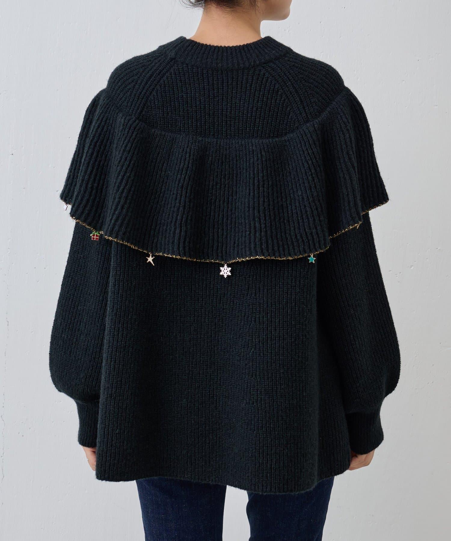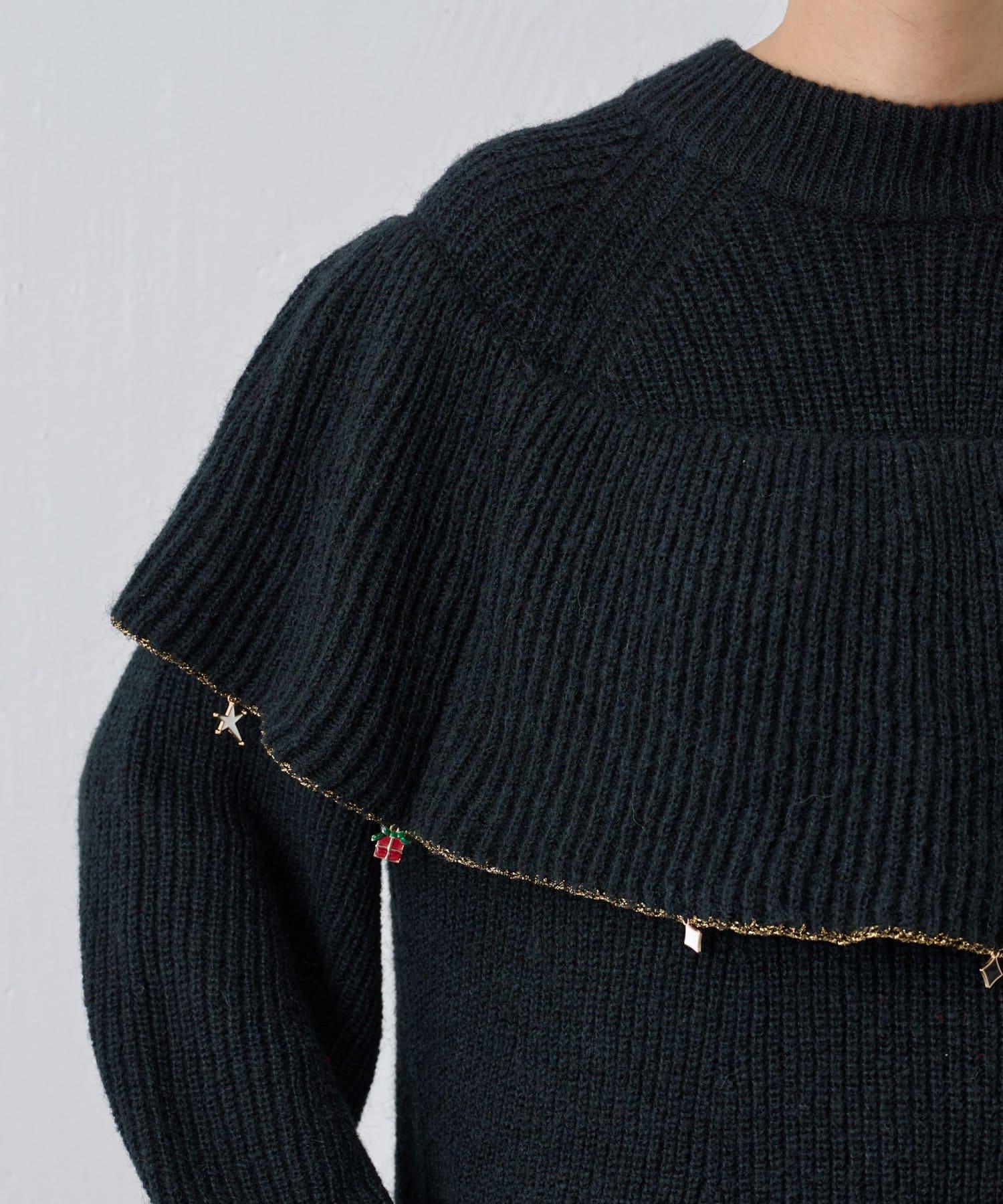 可愛的針織衫,帶有聖誕飾品形狀的吊飾。