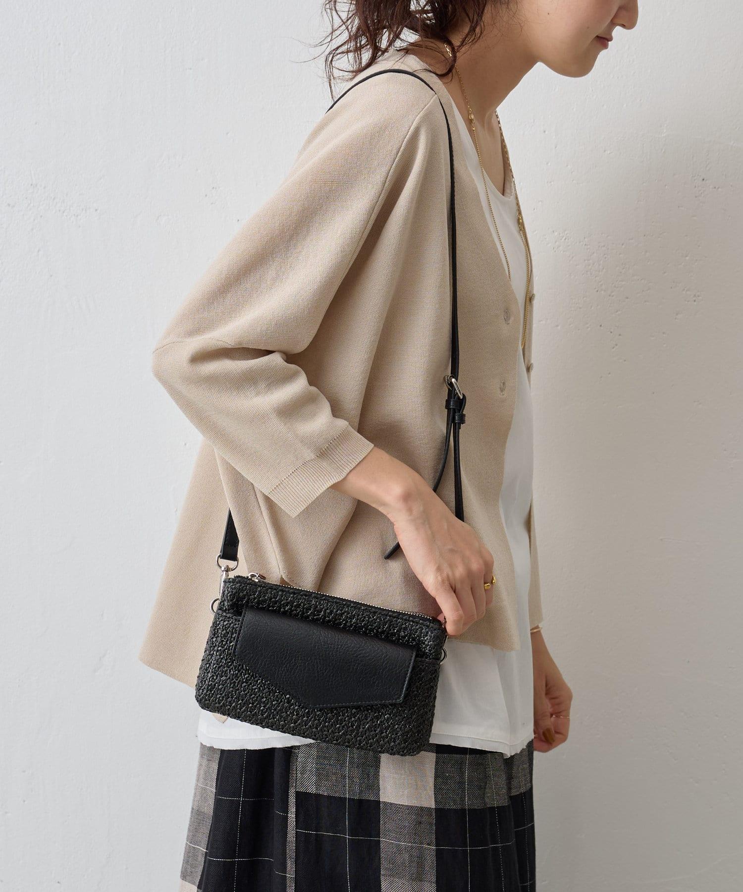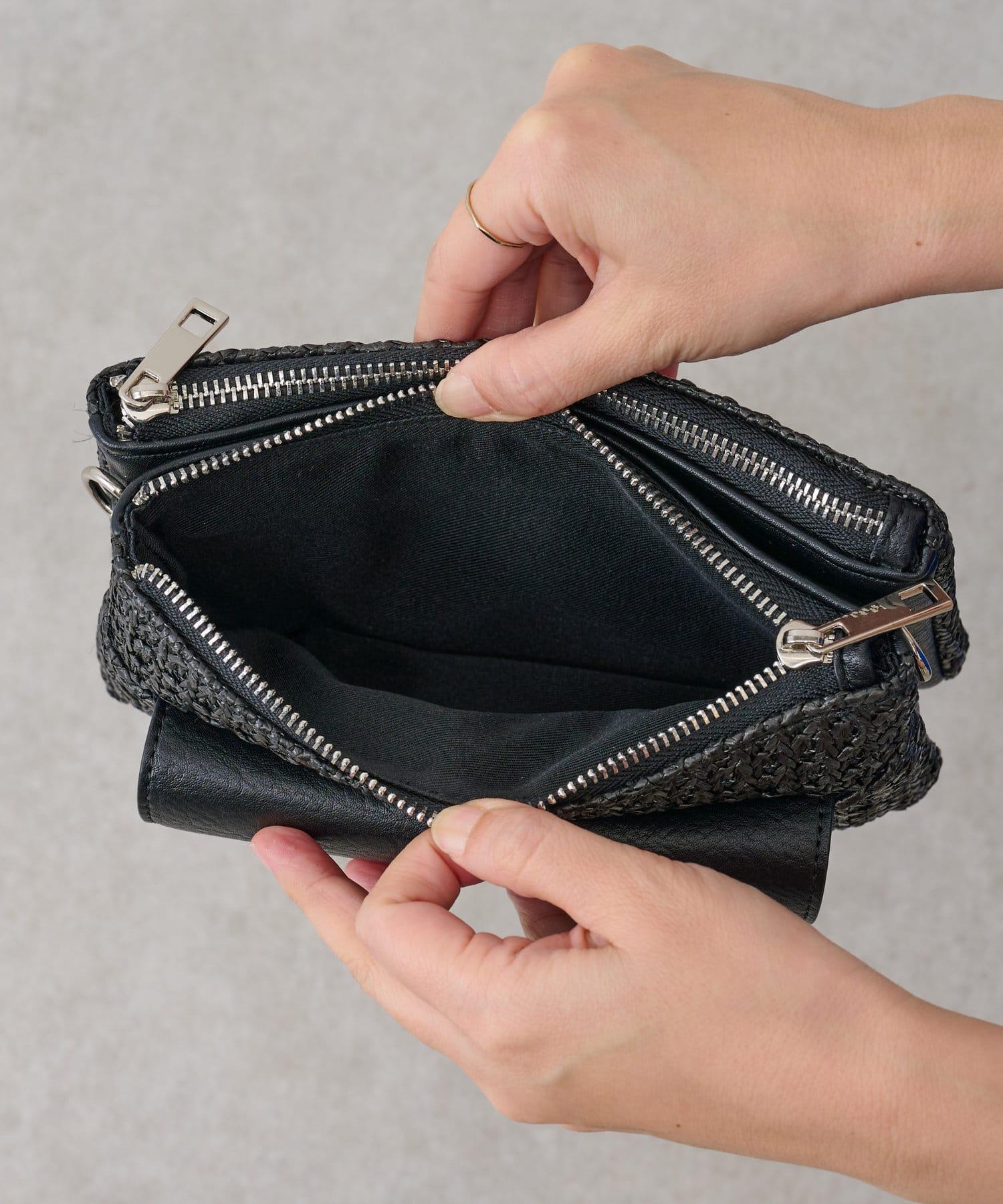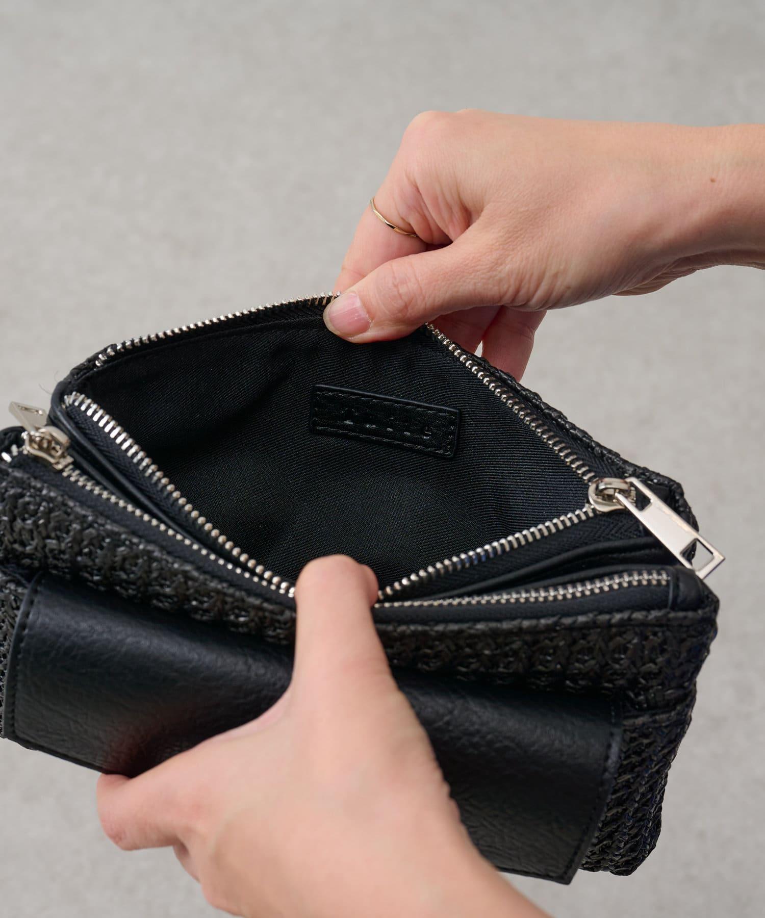 它的設計就像兩個拉鍊小包連在一起,外部有一個帶皮質翻蓋的口袋,可額外收納物品。