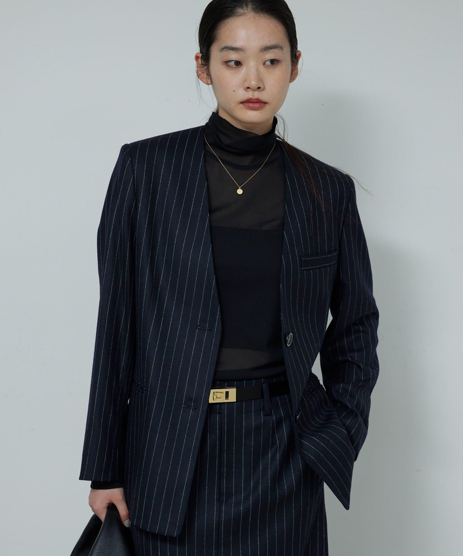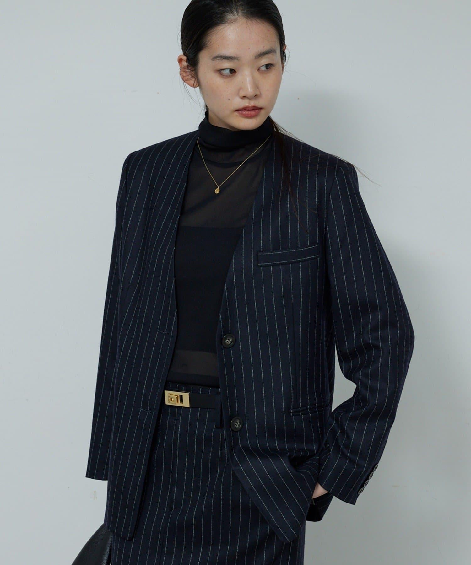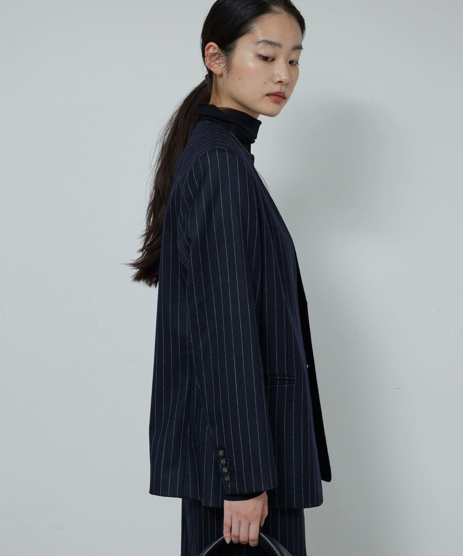 預約商品【近期開始】【可搭配套裝】條紋無領夾克