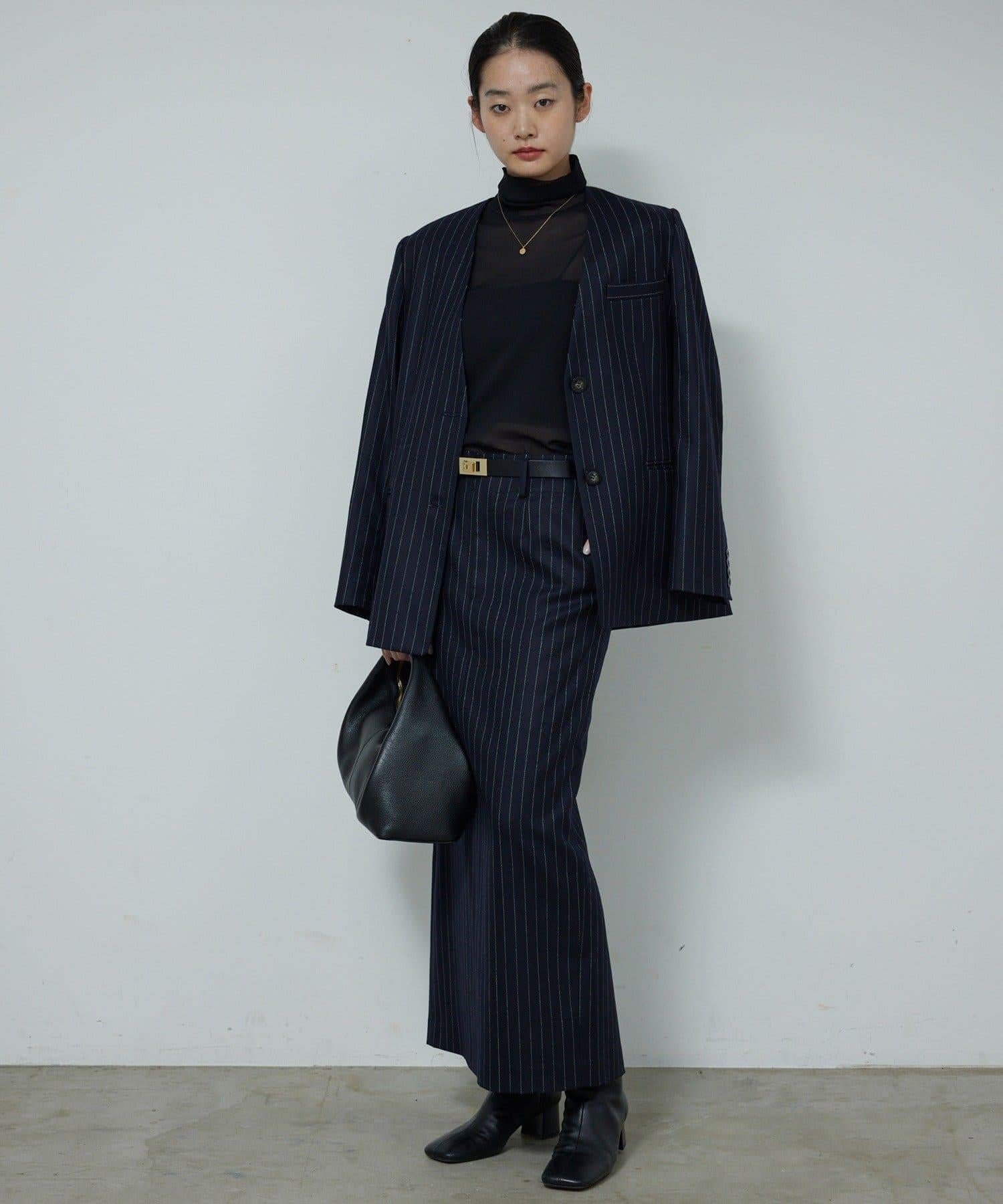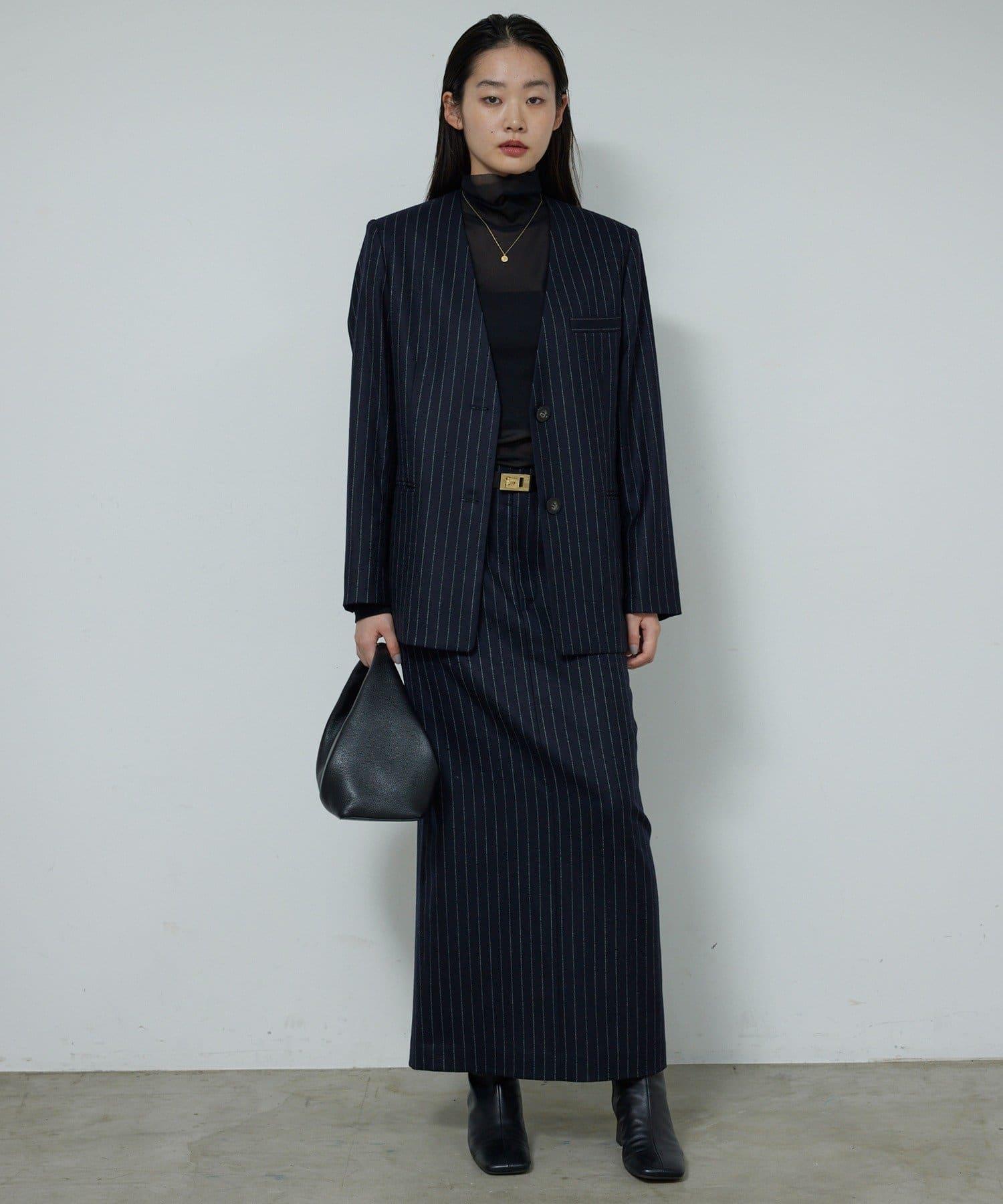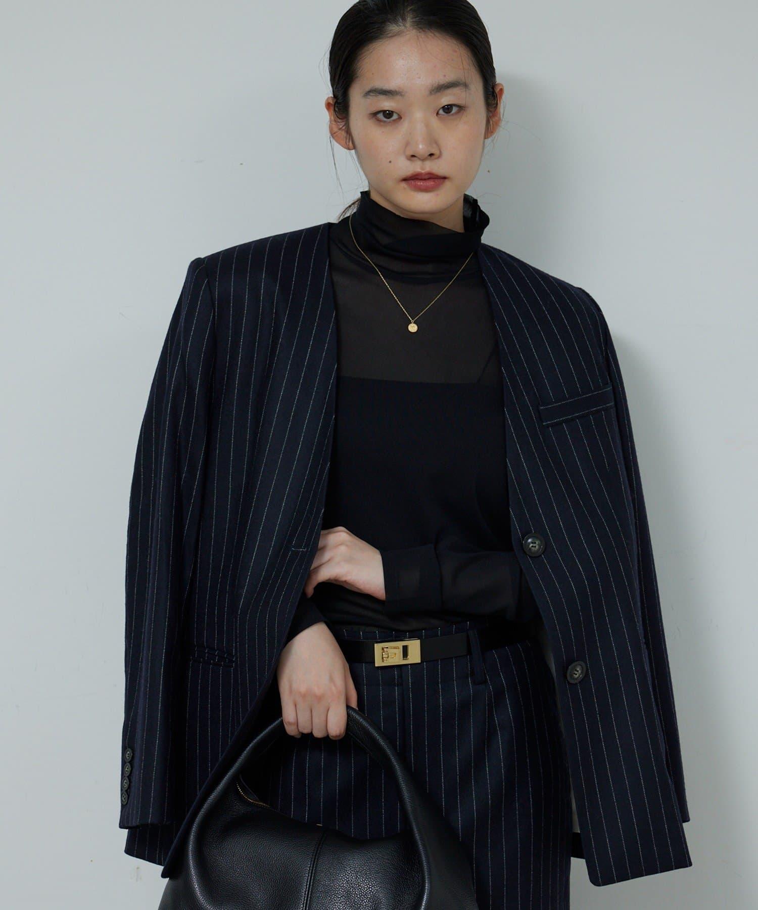 預約商品【近期開始】【可搭配套裝】條紋無領夾克