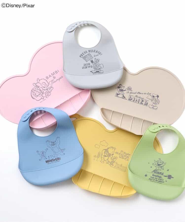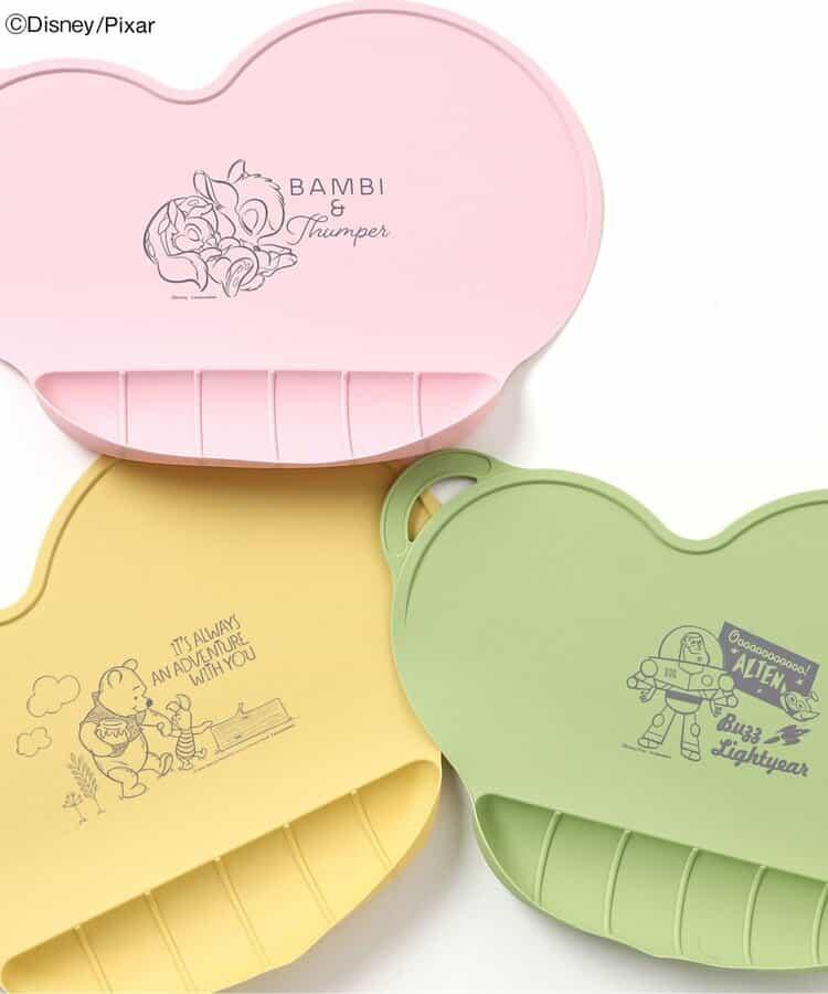 以各種迪斯尼卡通人物為特色的嬰兒硅膠日用品。各種顏色和不同的卡通人物讓人難以選擇!硅膠餐墊髒了很容易清洗,而且防滑,非常適合正在練習用餐的寶寶。