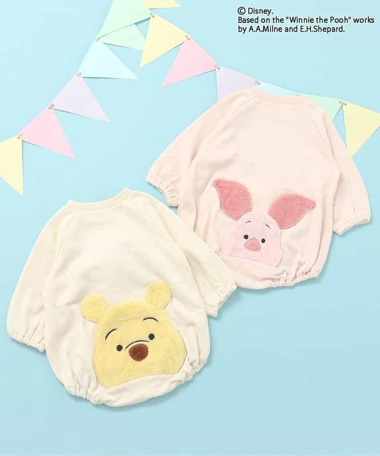 長袖連體服上印有維尼和小豬的可愛圖案!