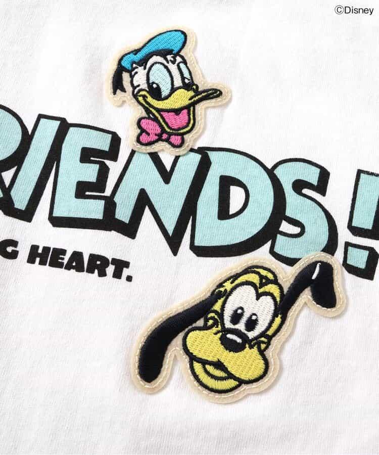 T 恤背面是米老鼠、唐老鴨和冥王星的華麗圖案。