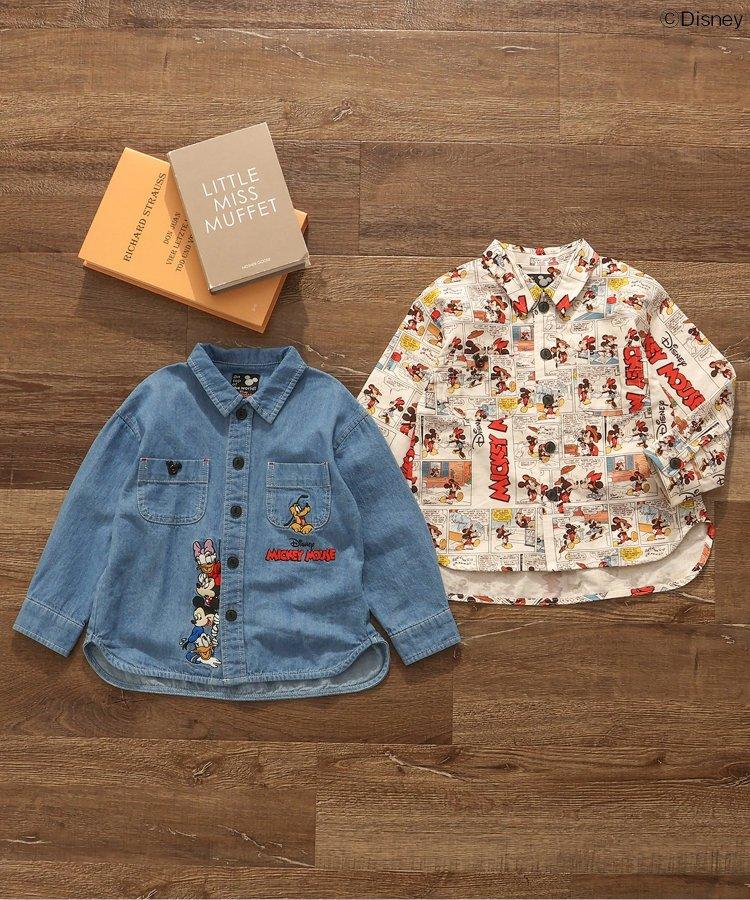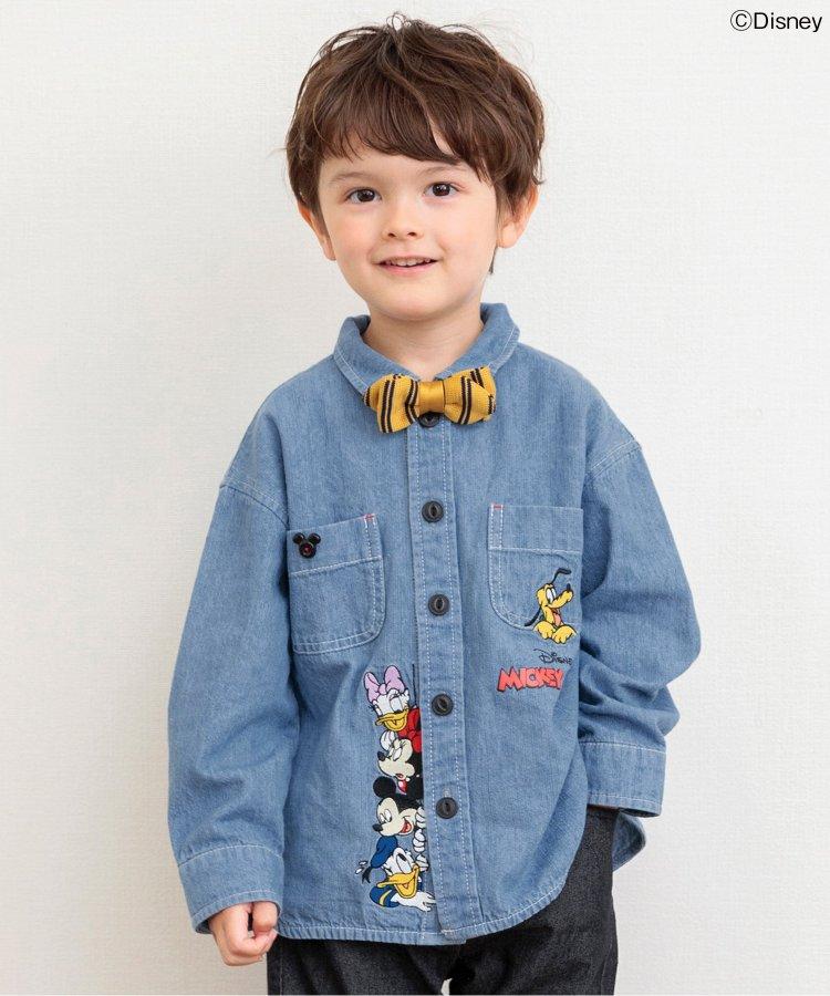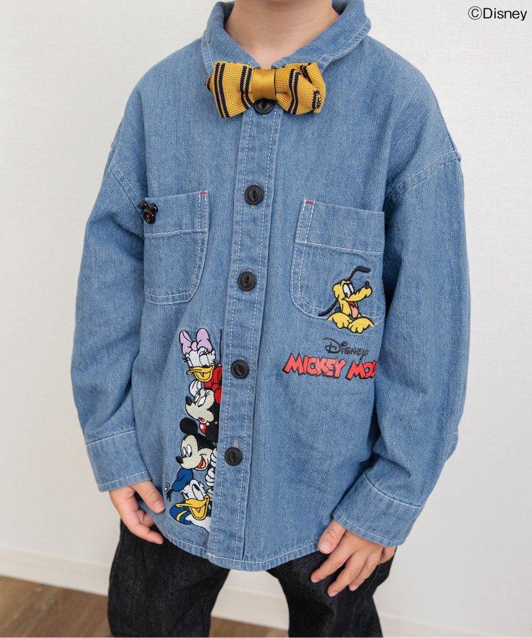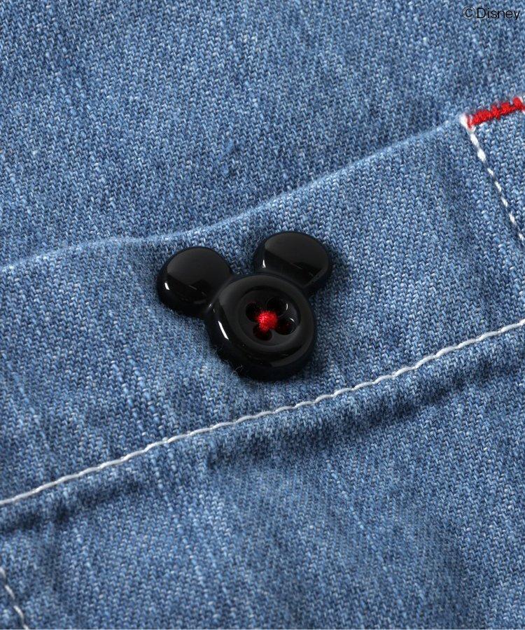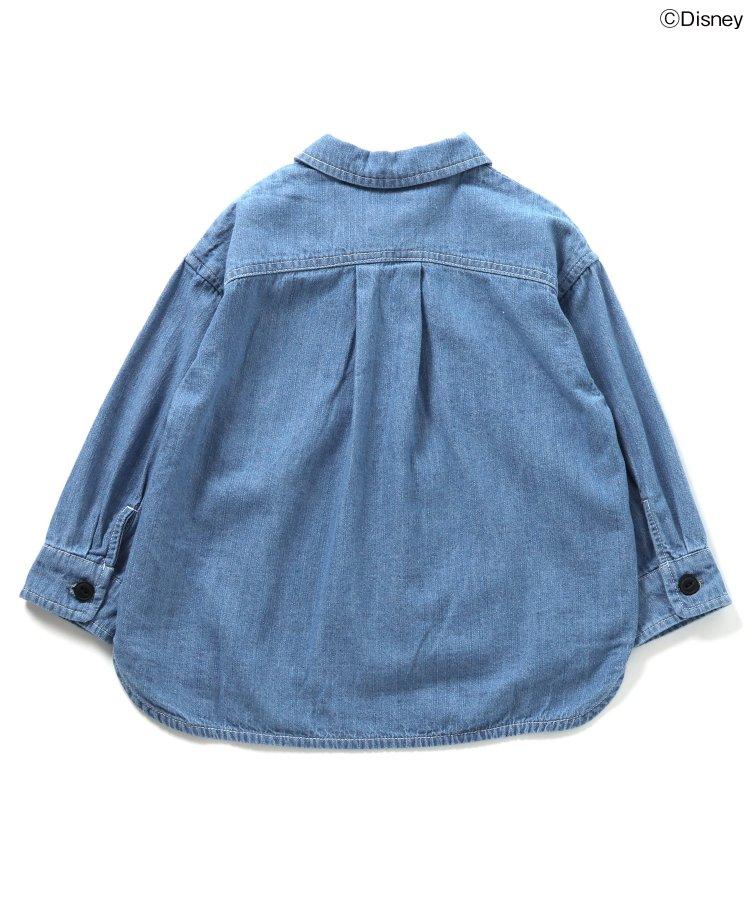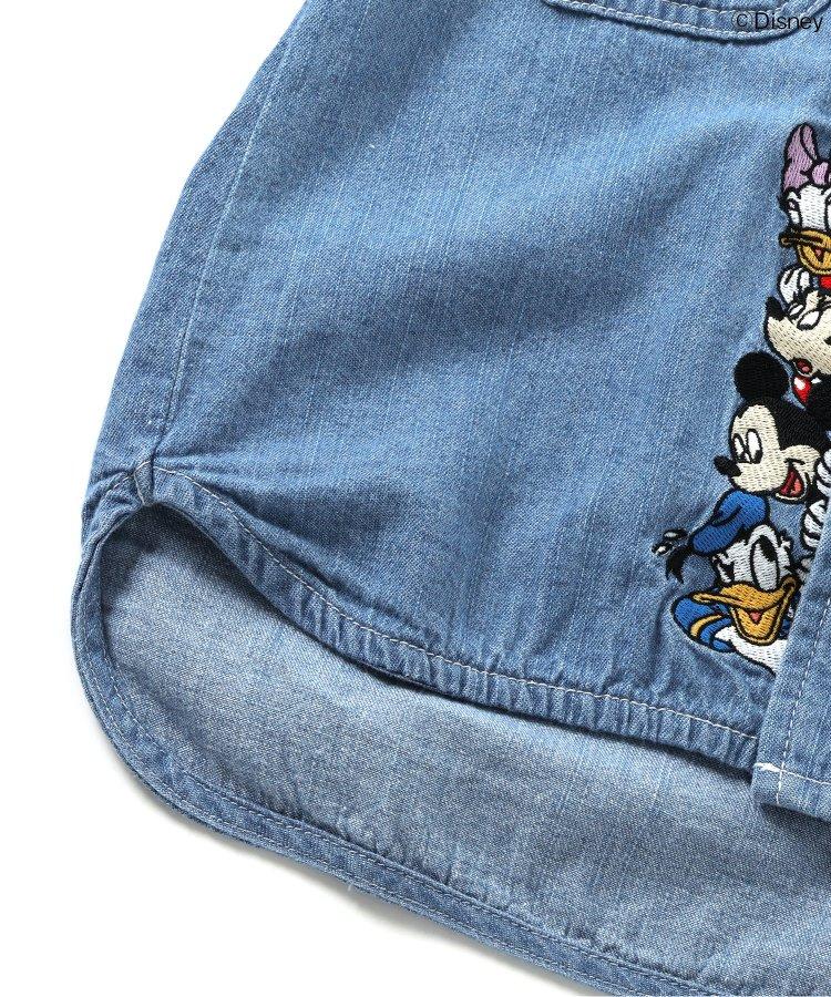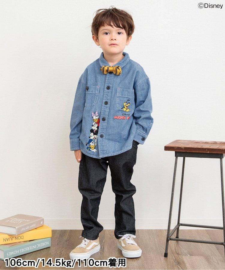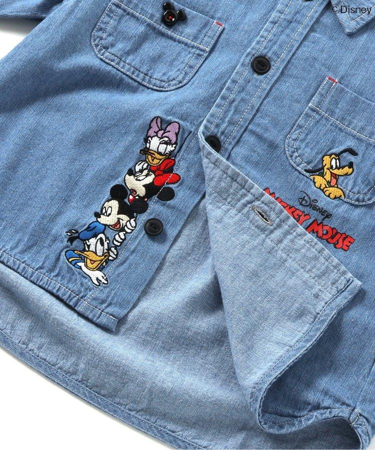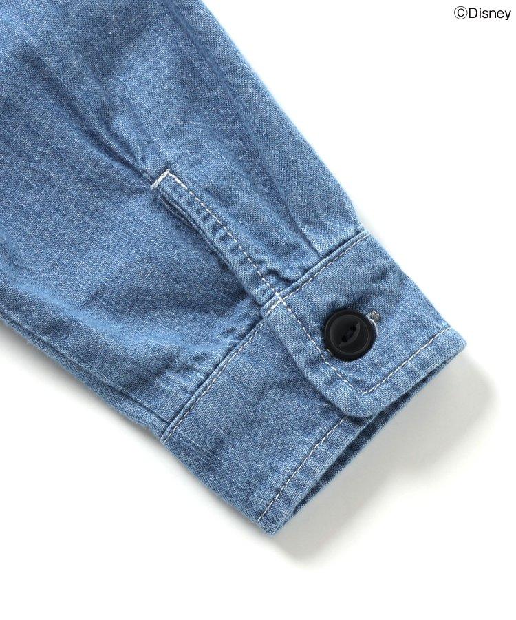 看看正面的紐扣!迪士尼卡通人物並排站立!牛仔布色。
