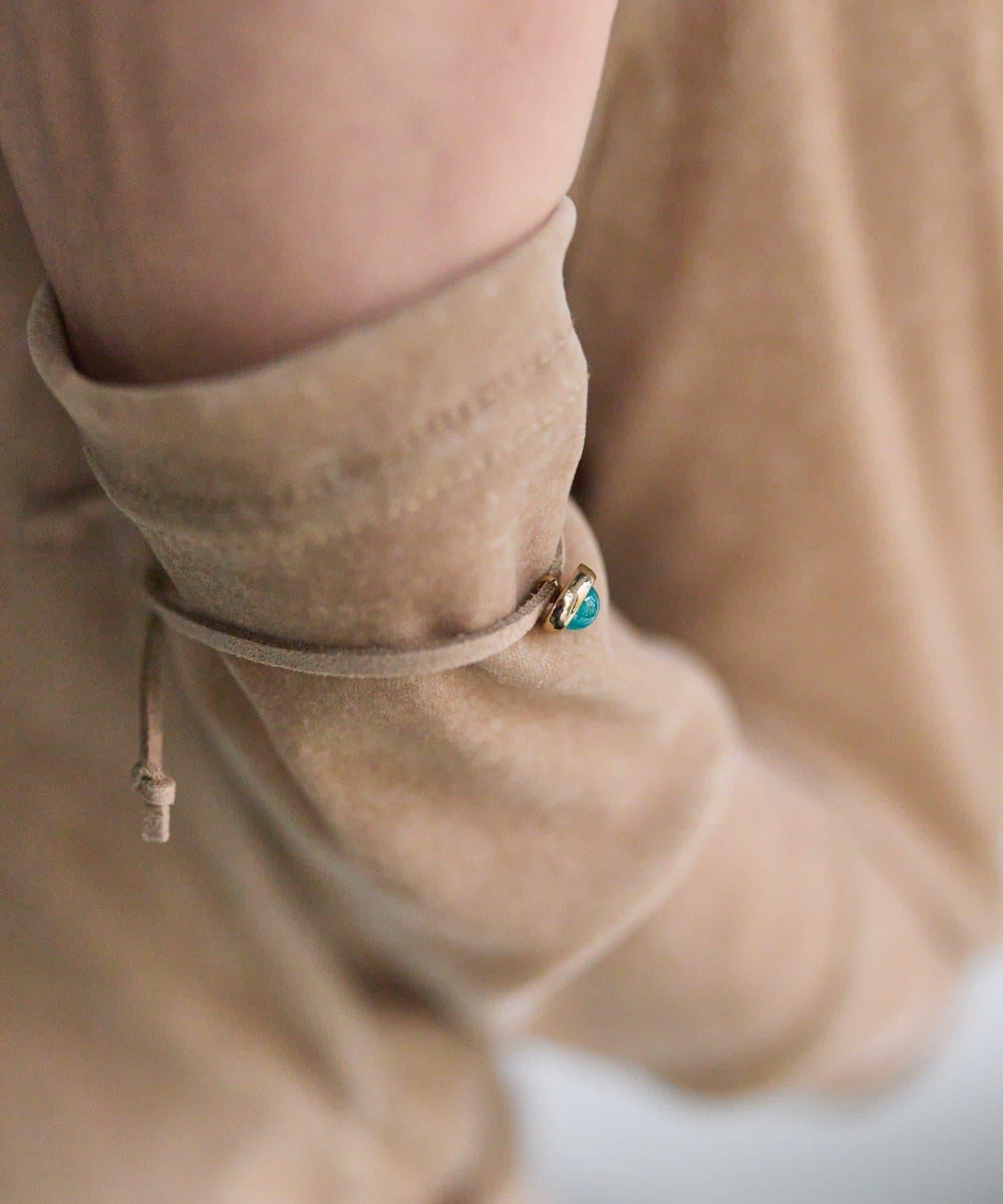 休閒麂皮帶上的單顆寶石是一款引人注目的手鍊。