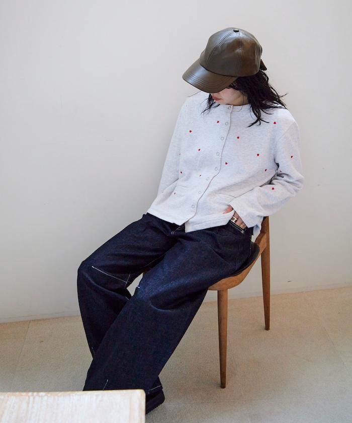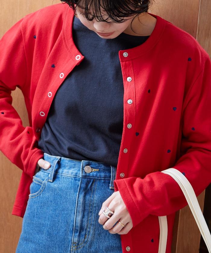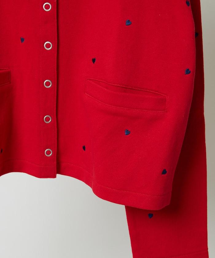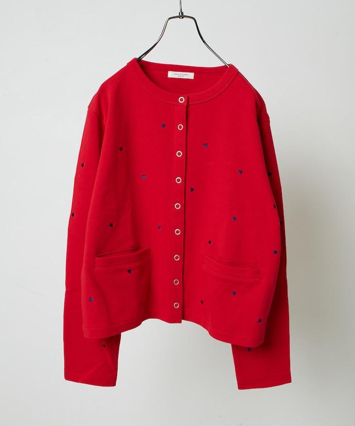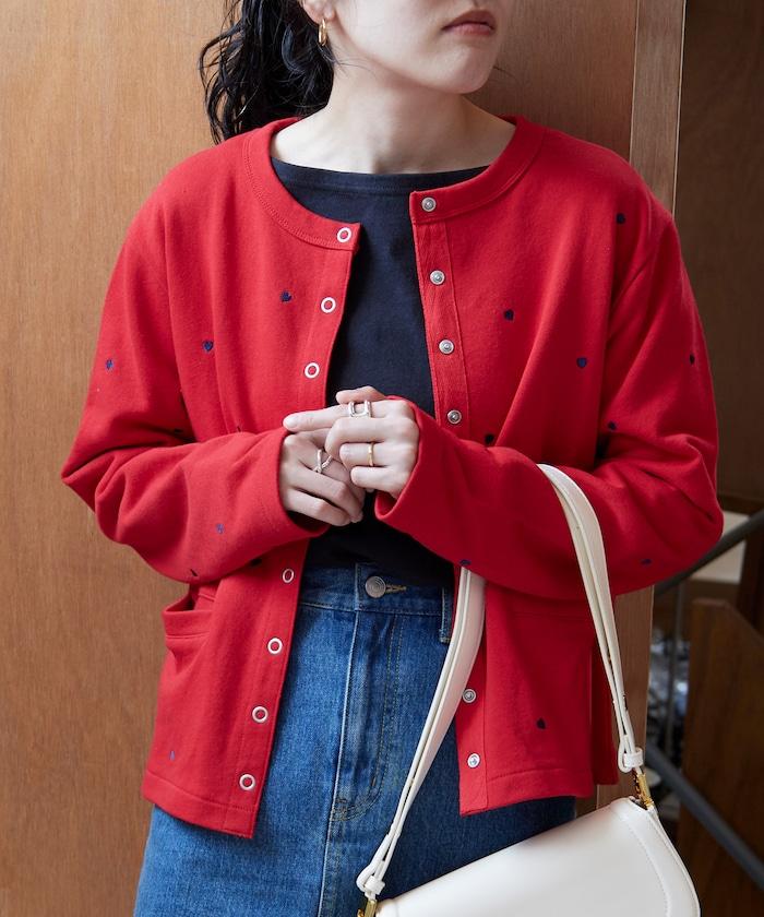 棉質開衫,繡有可愛的心形刺繡。