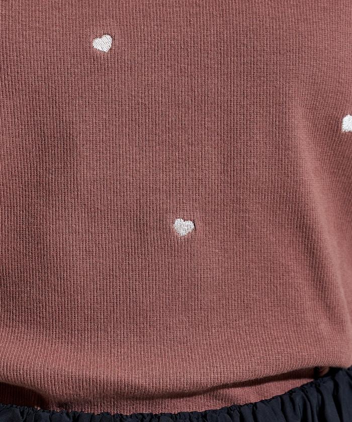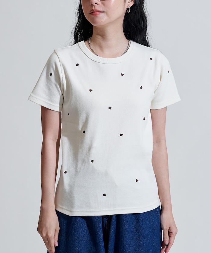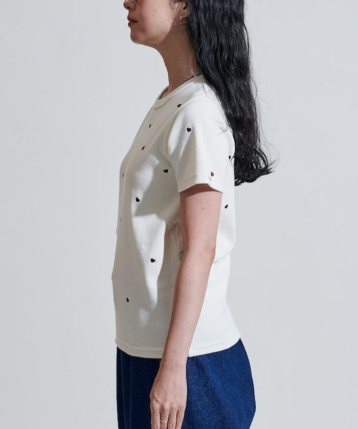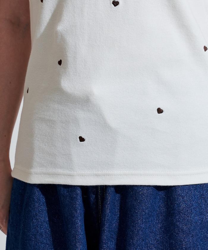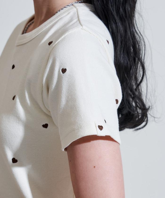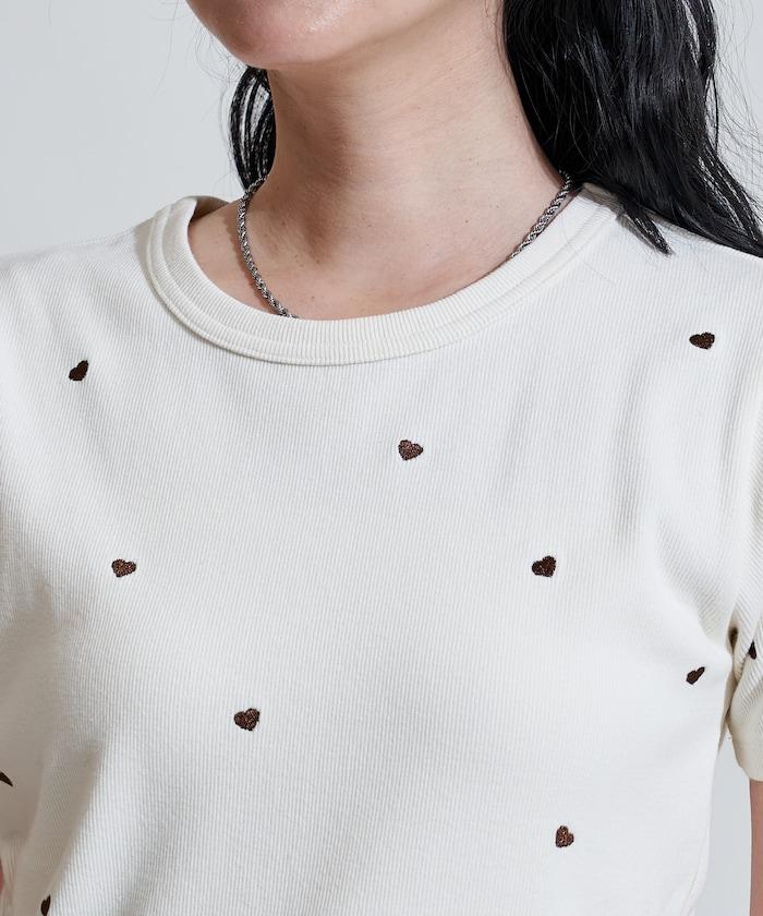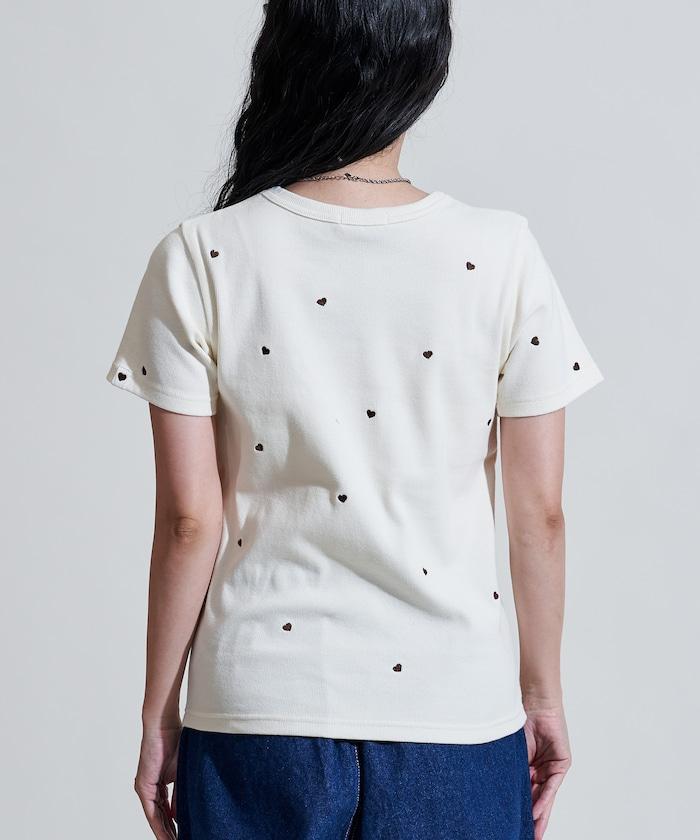 可愛的 T 恤上散佈著小巧的心形刺繡。