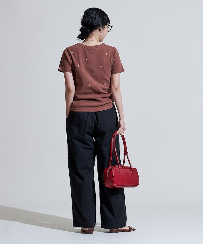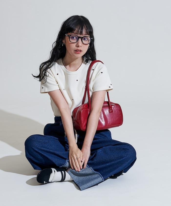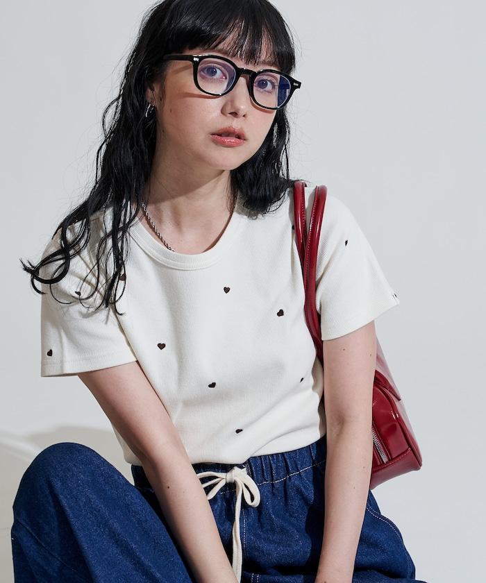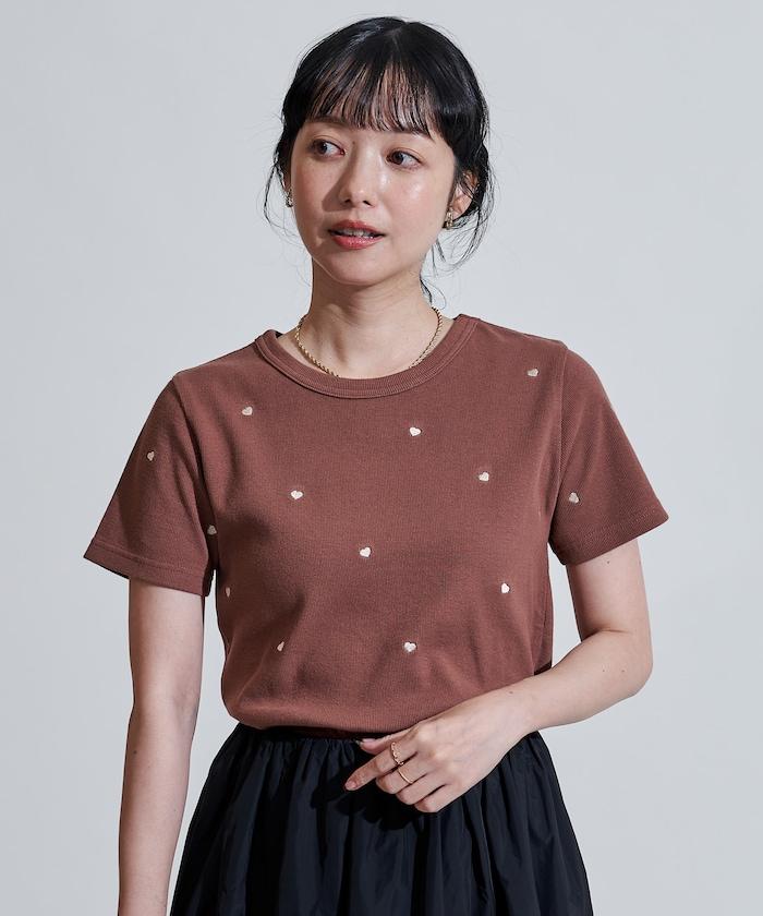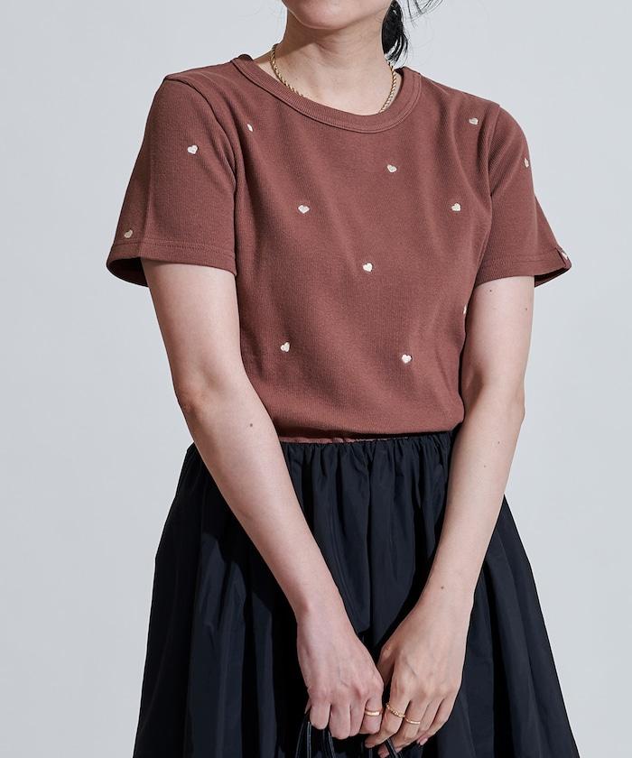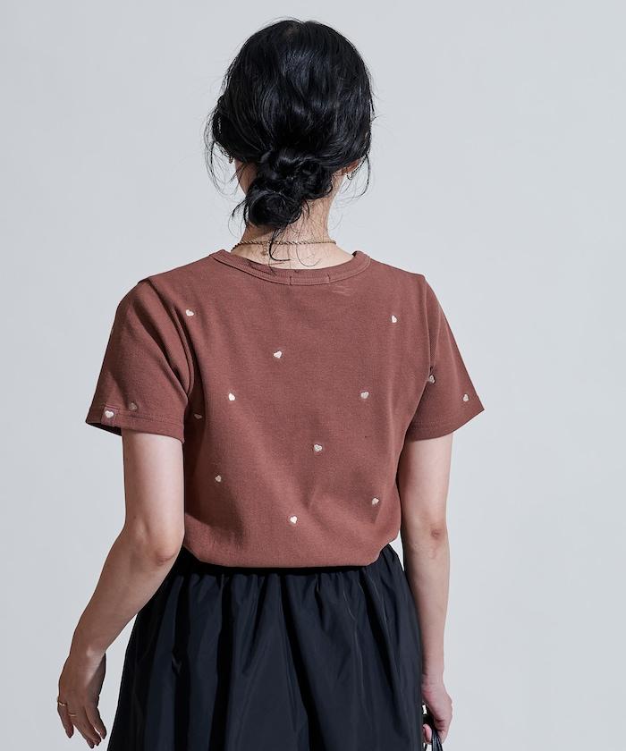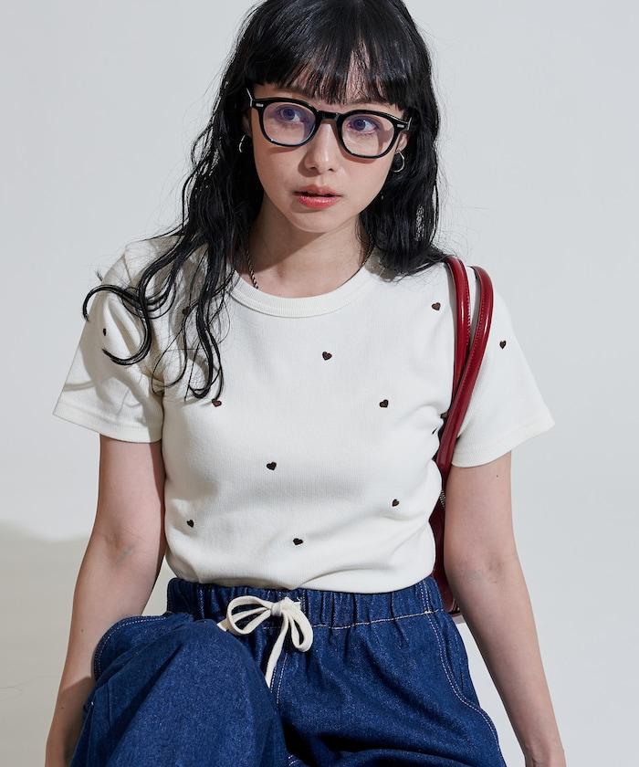 可愛的 T 恤上散佈著小巧的心形刺繡。