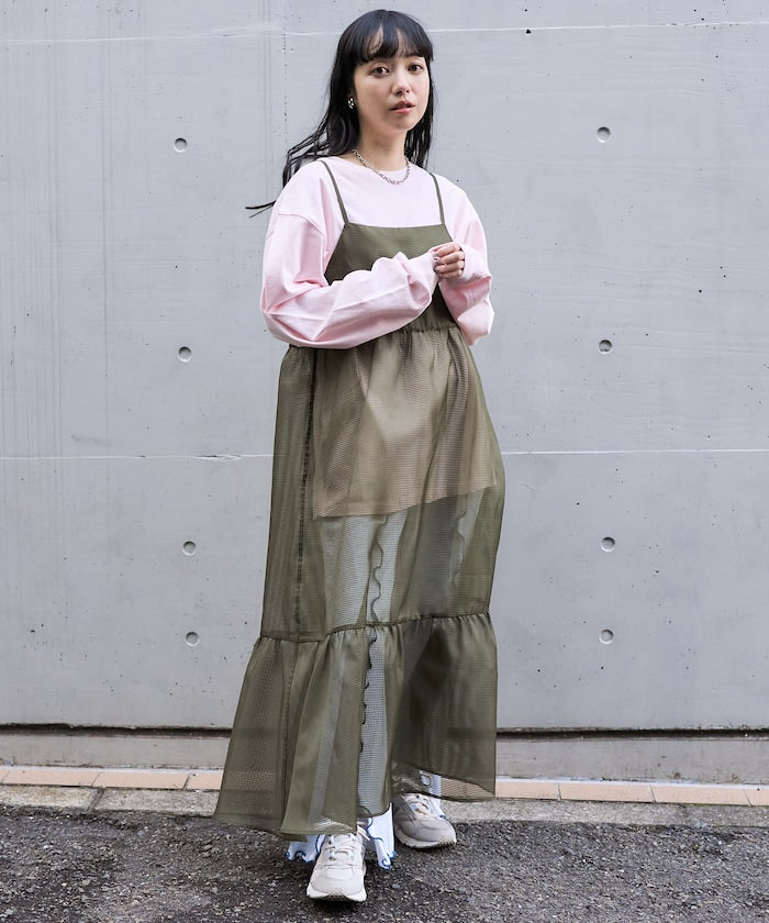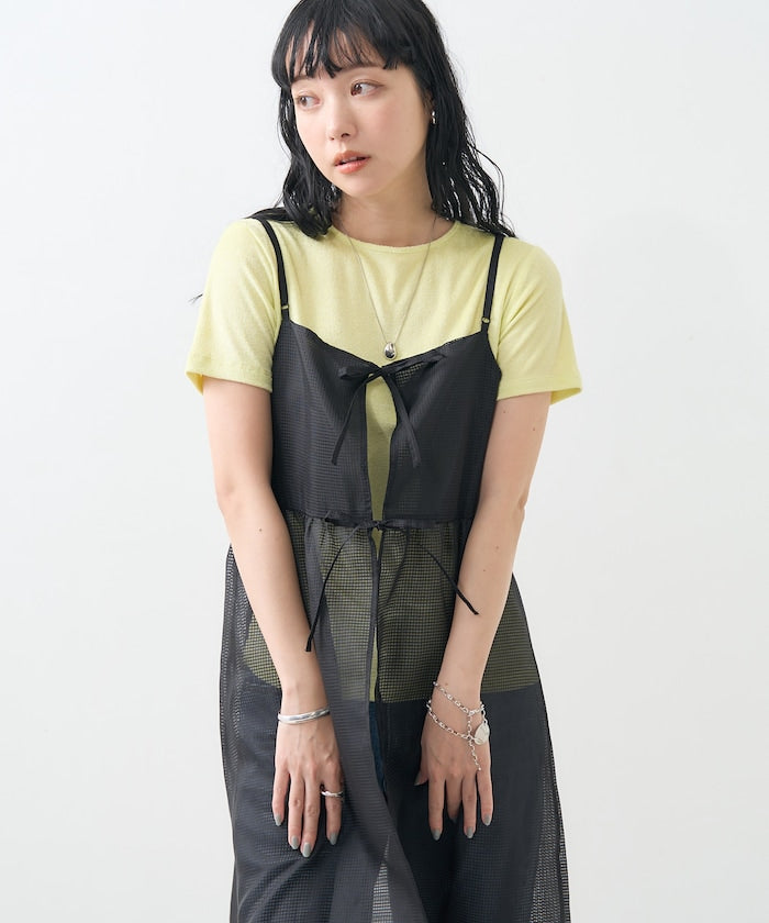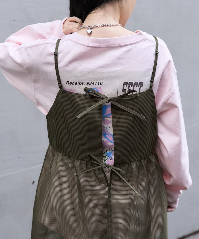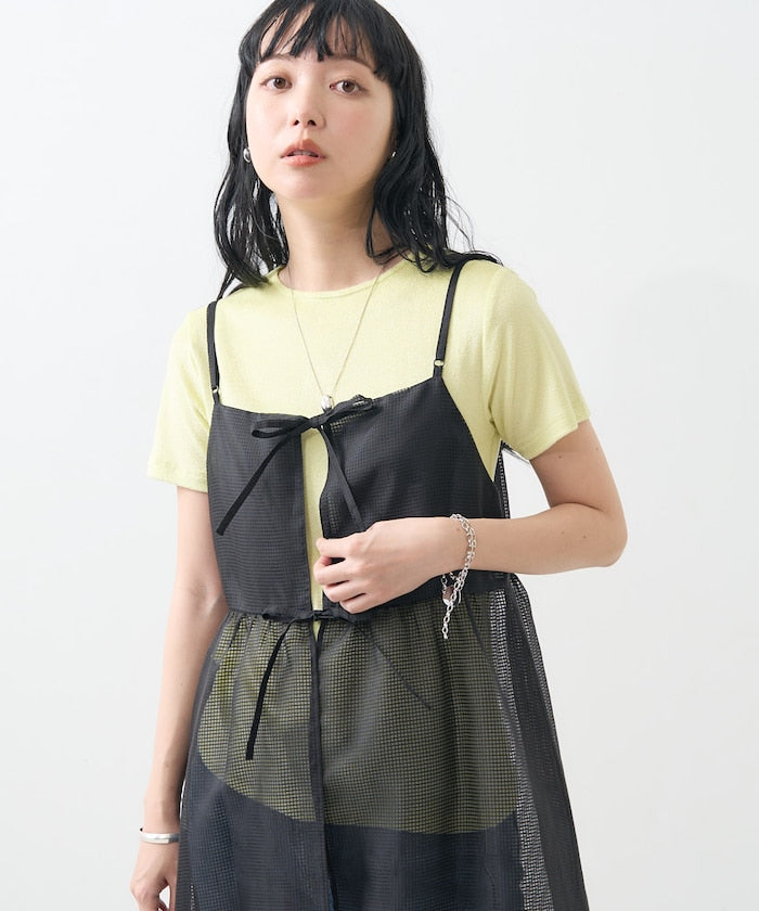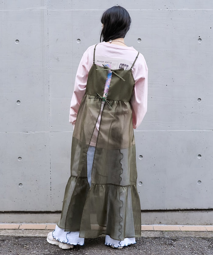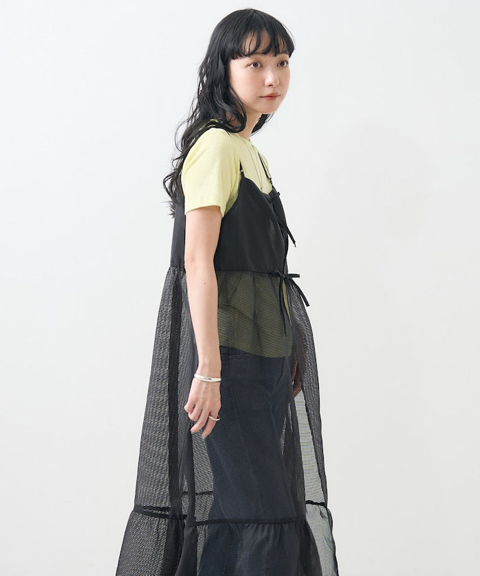 這款連衣裙的穿法多種多樣,可以疊穿在裁剪好的布料或吊帶裙上,非常有趣。