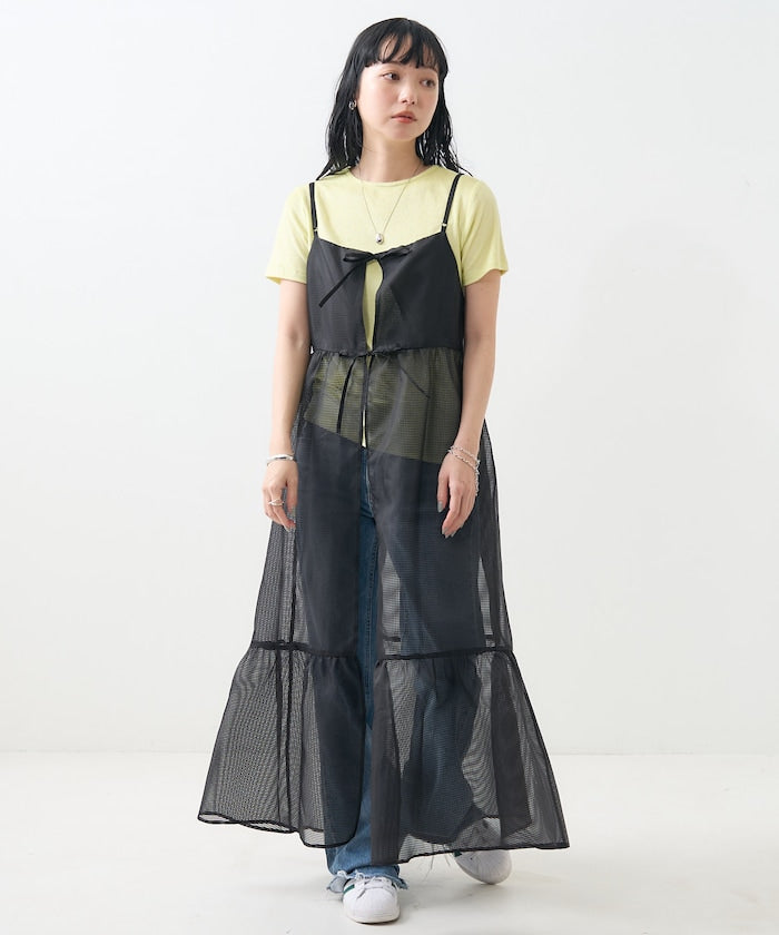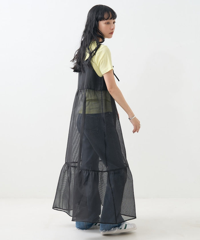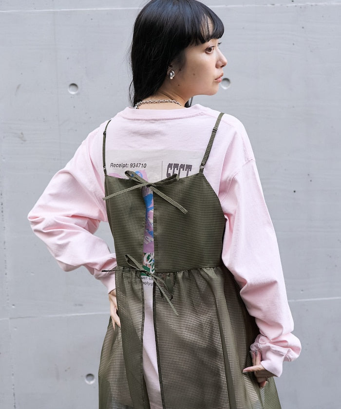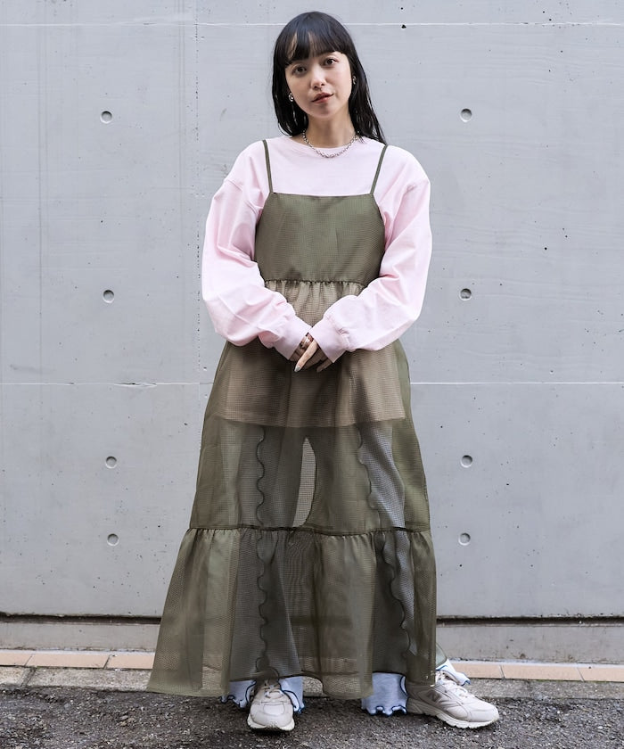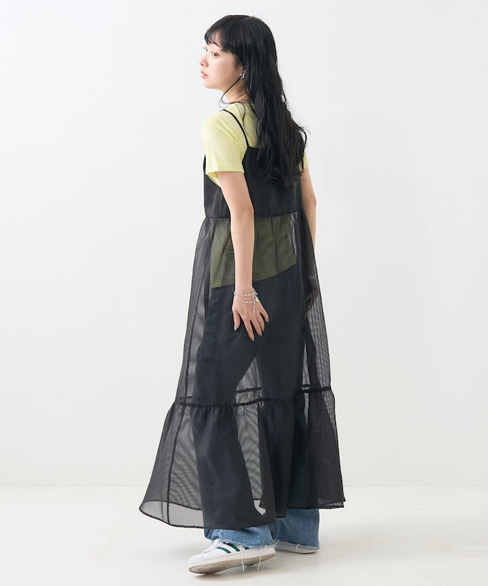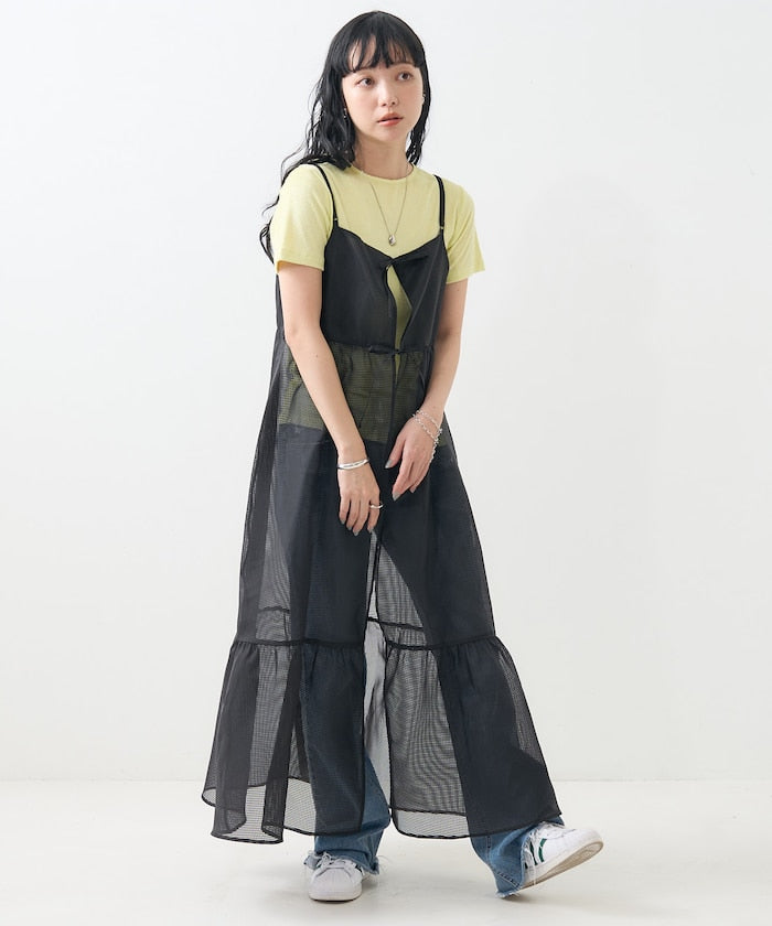 這款連衣裙的穿法多種多樣,可以疊穿在裁剪好的布料或吊帶裙上,非常有趣。