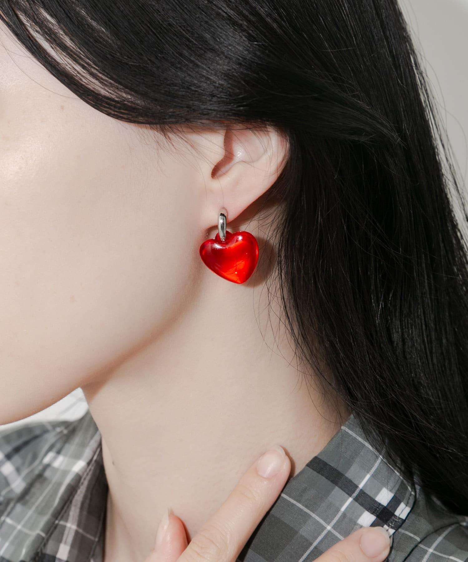 這款豐滿的心形圖案耳環閃亮的紅色非常迷人。