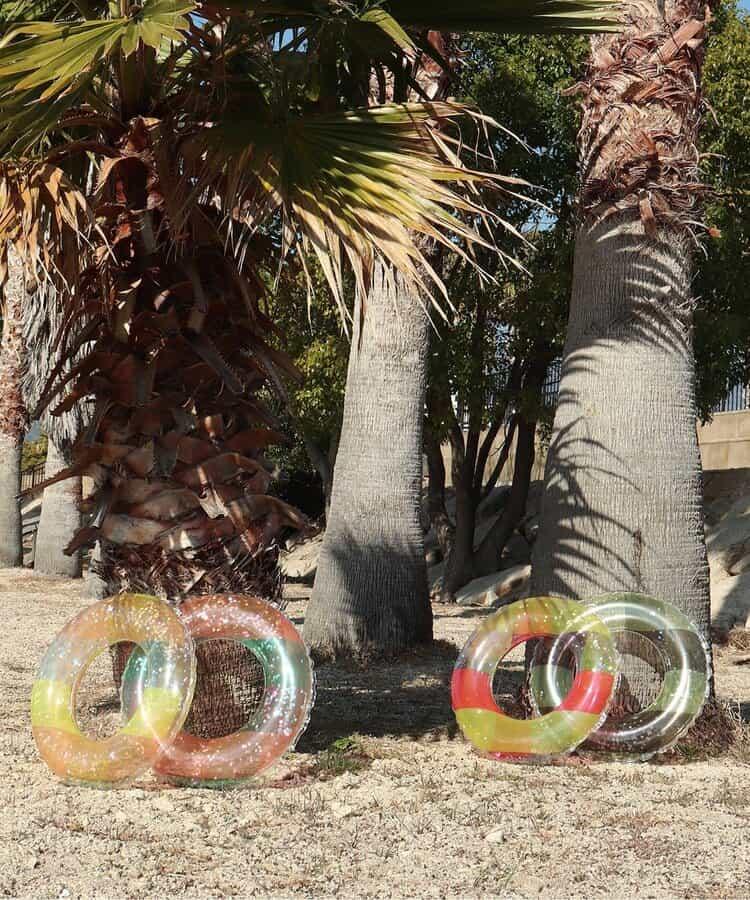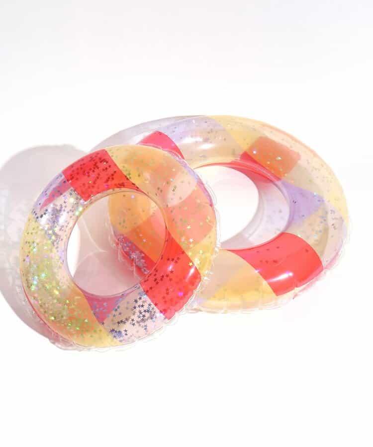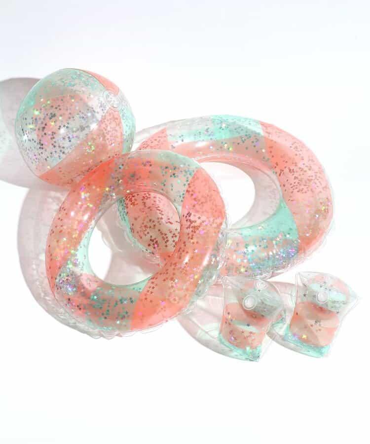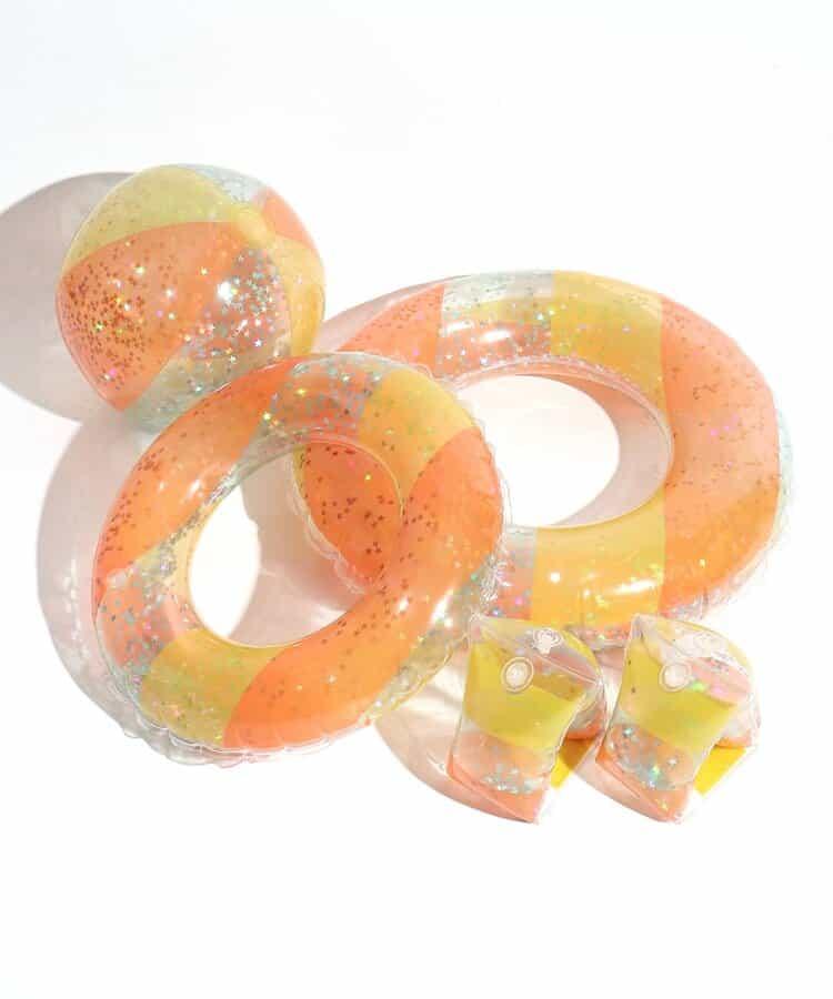 粉色和黃色是沙灘球/手臂漂浮的配色。