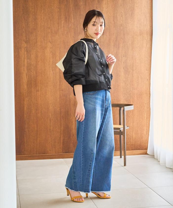 短款設計與時髦的寬下裝搭配得恰到好處。