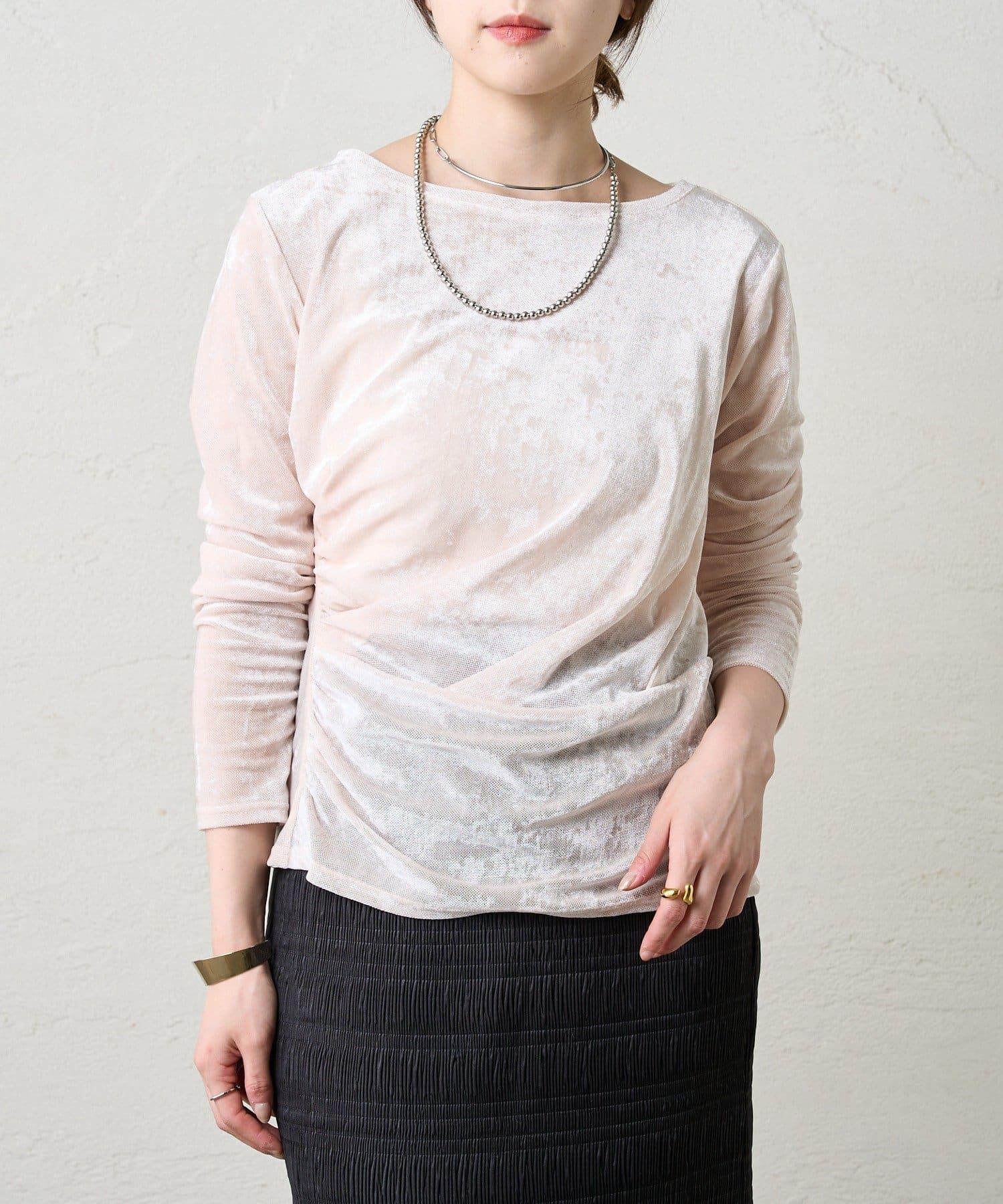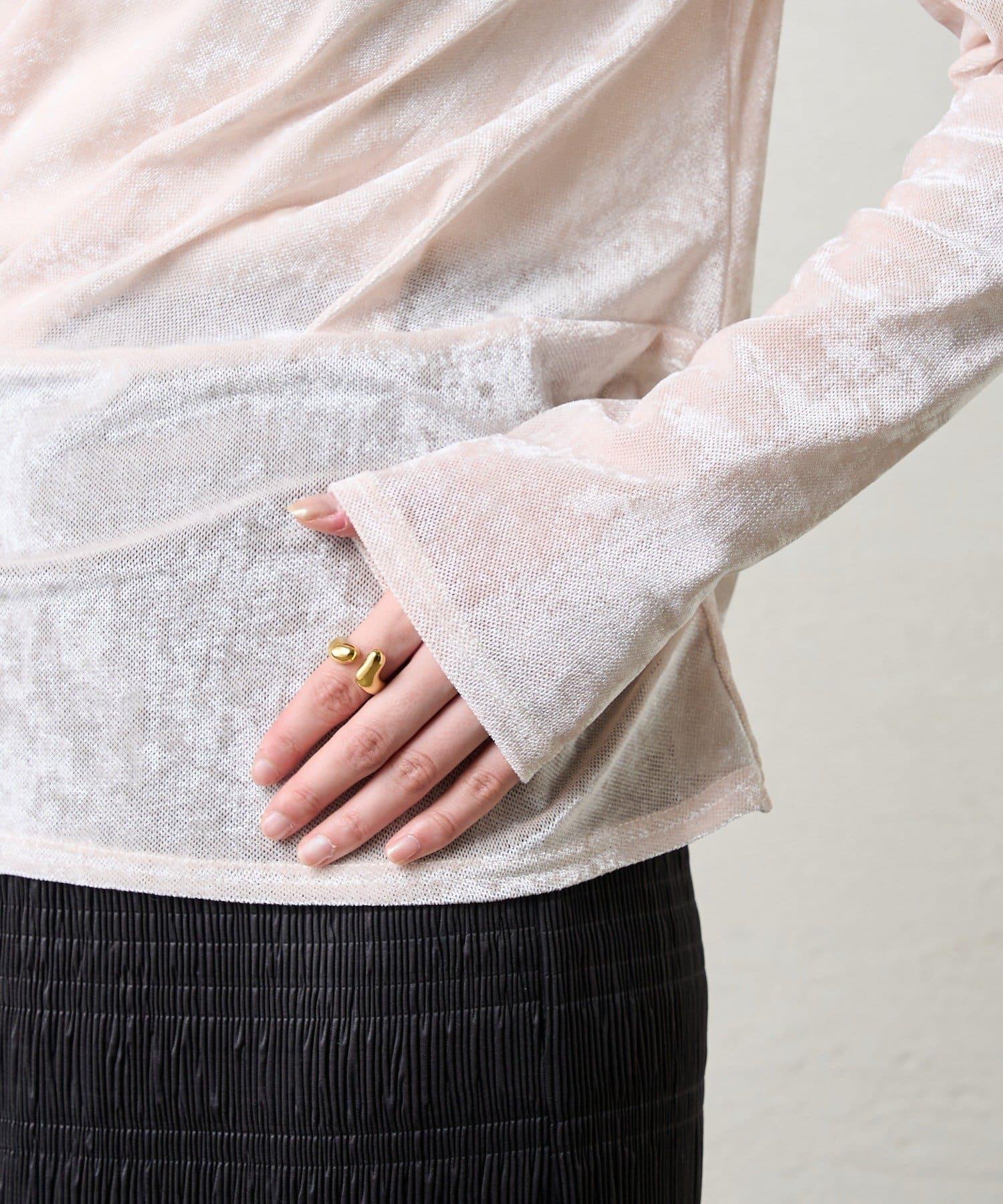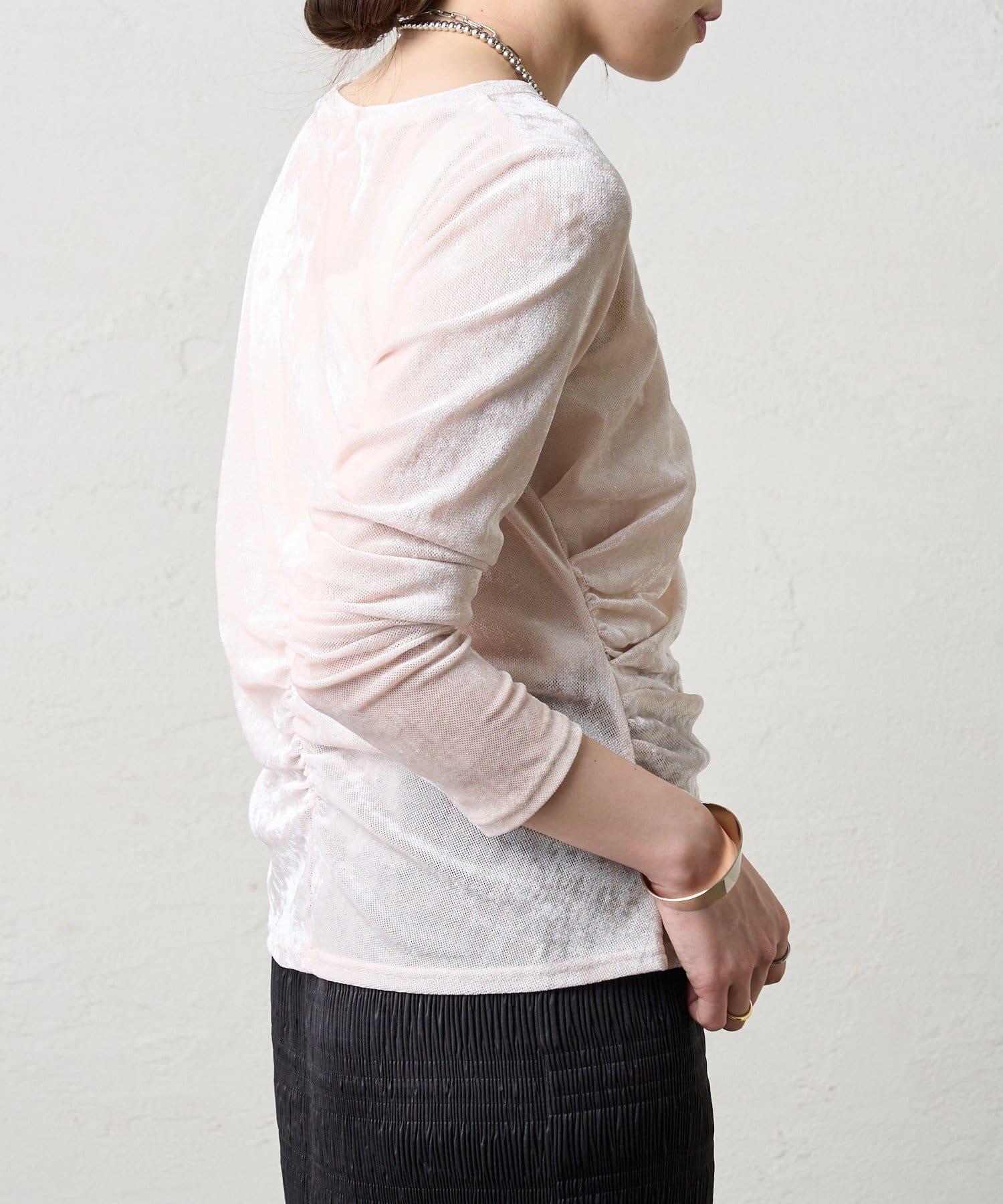 這是一款採用適度透視面料和時尚天鵝絨面料的上衣。