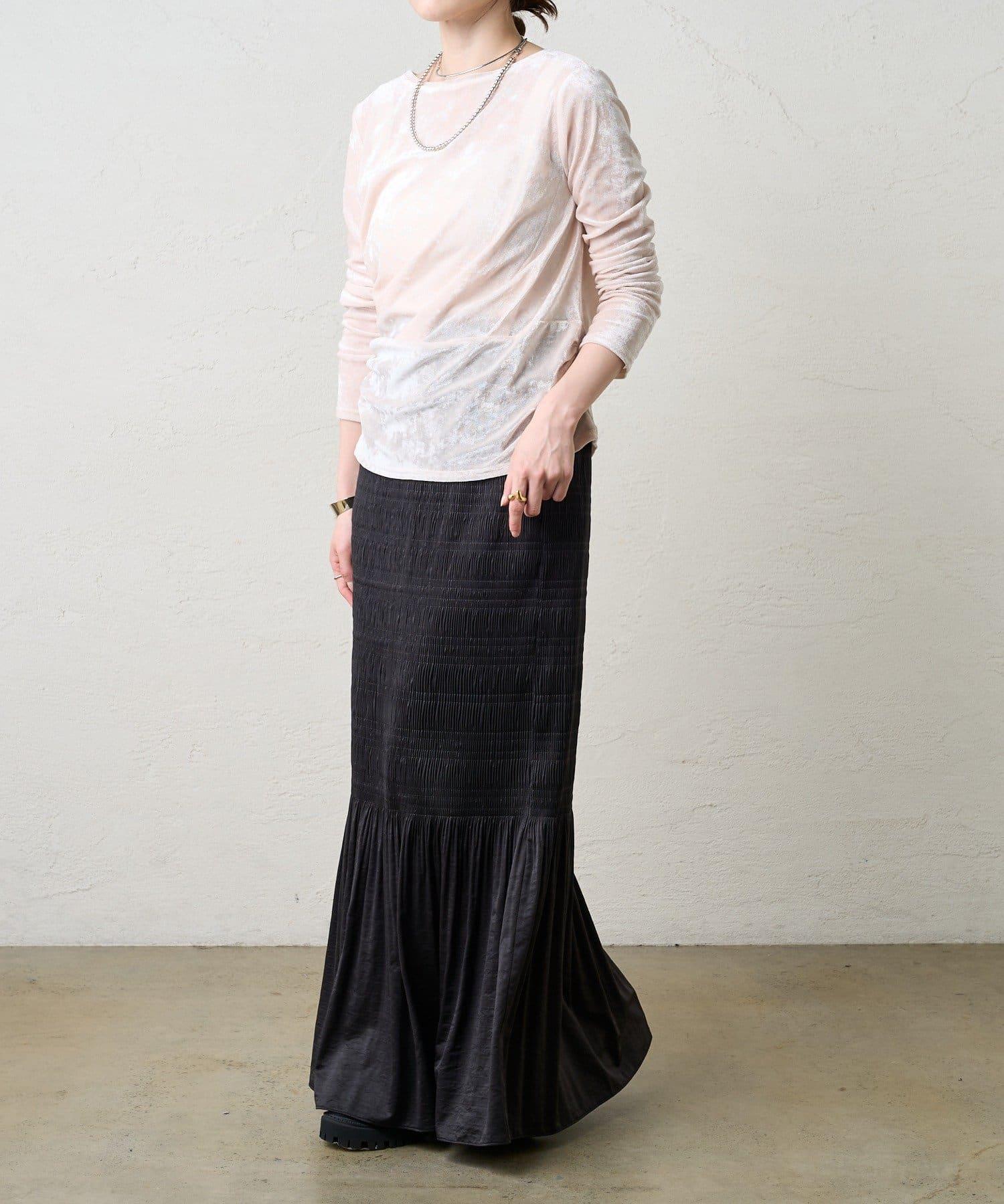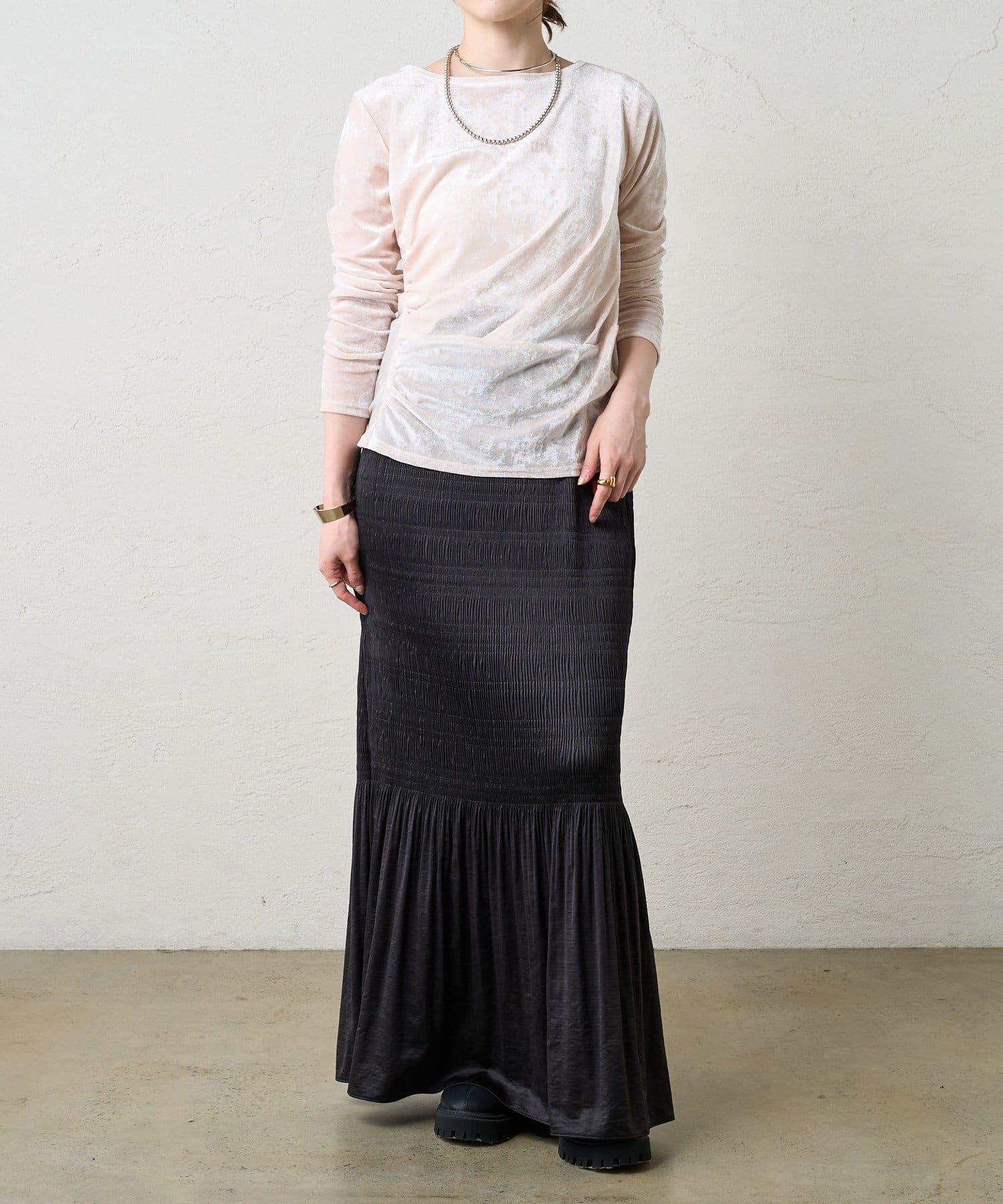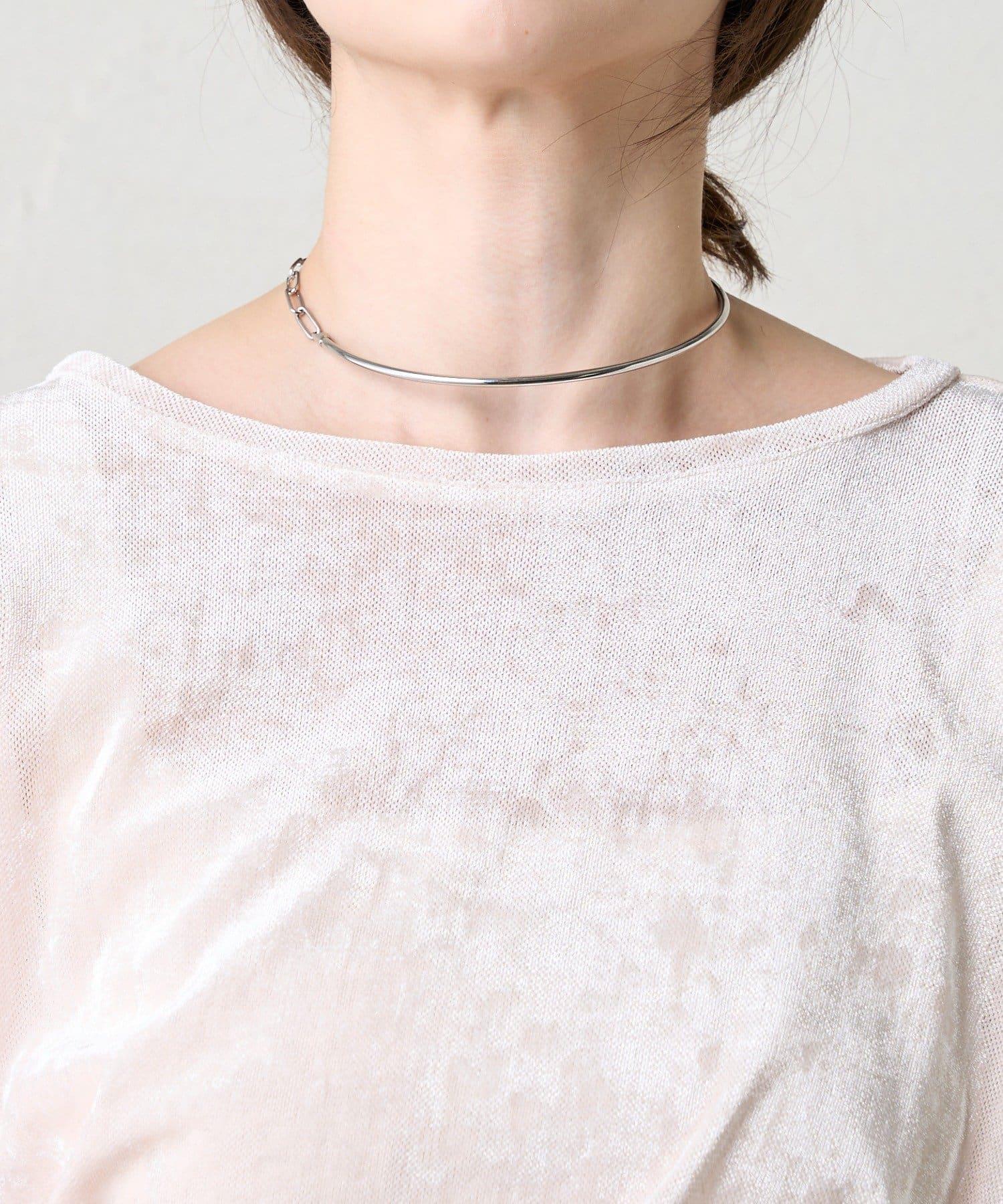 這是一款採用適度透視面料和時尚天鵝絨面料的上衣。