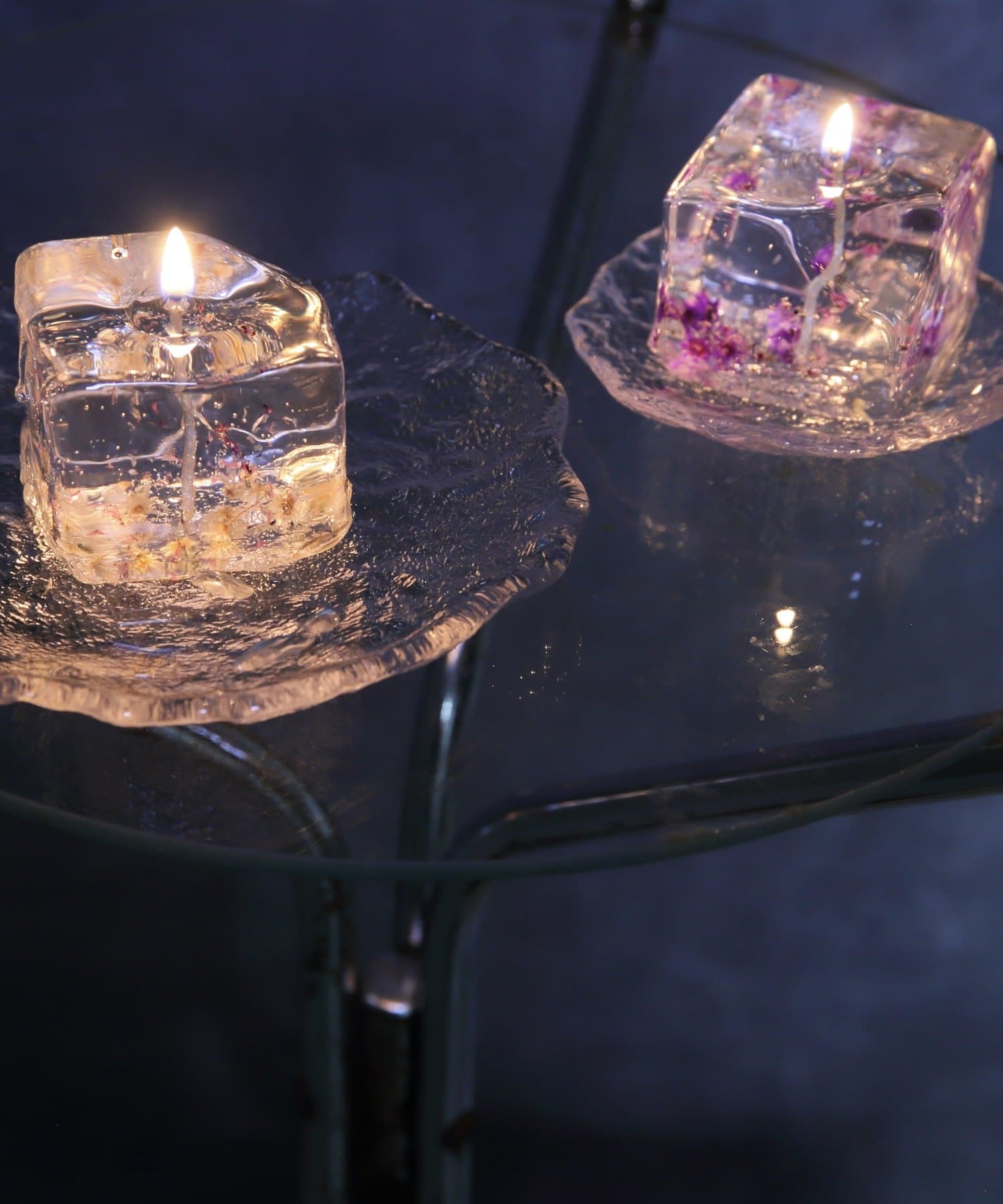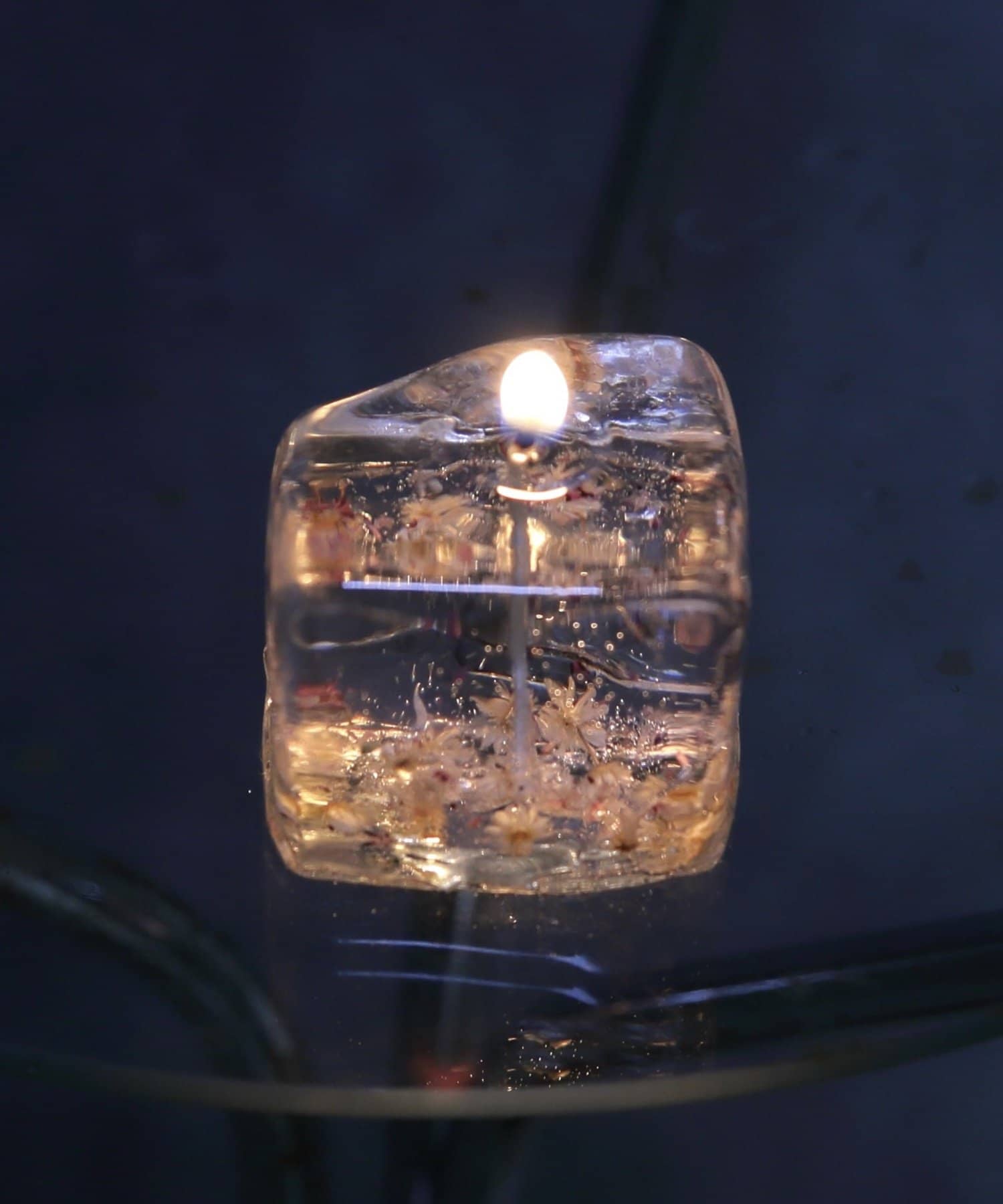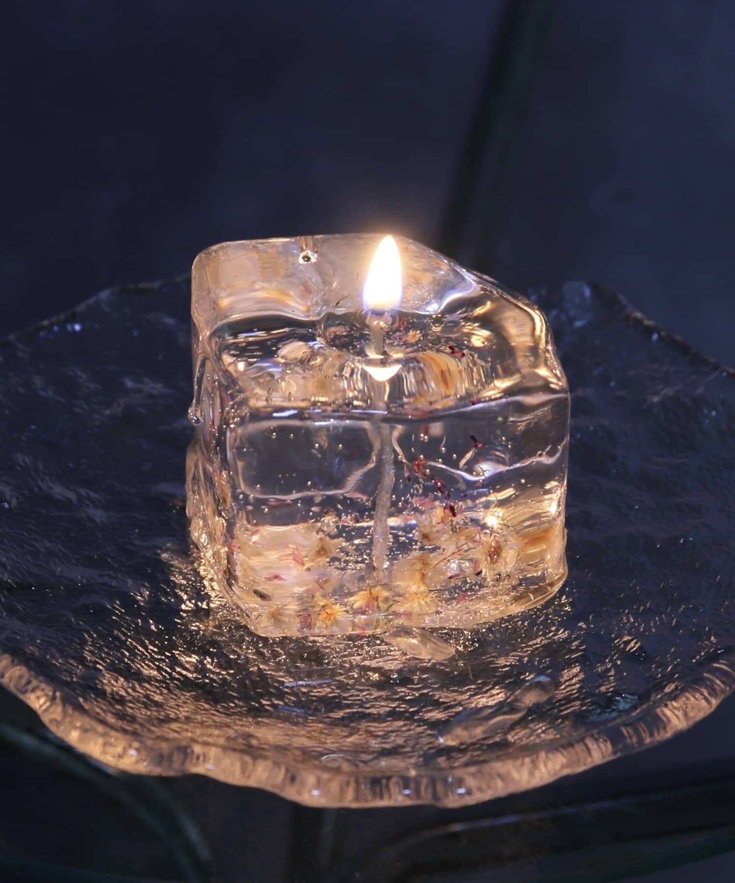 全新系列的透明蠟燭,裝飾著花朵,從透明蠟燭看起來就像冰一樣。