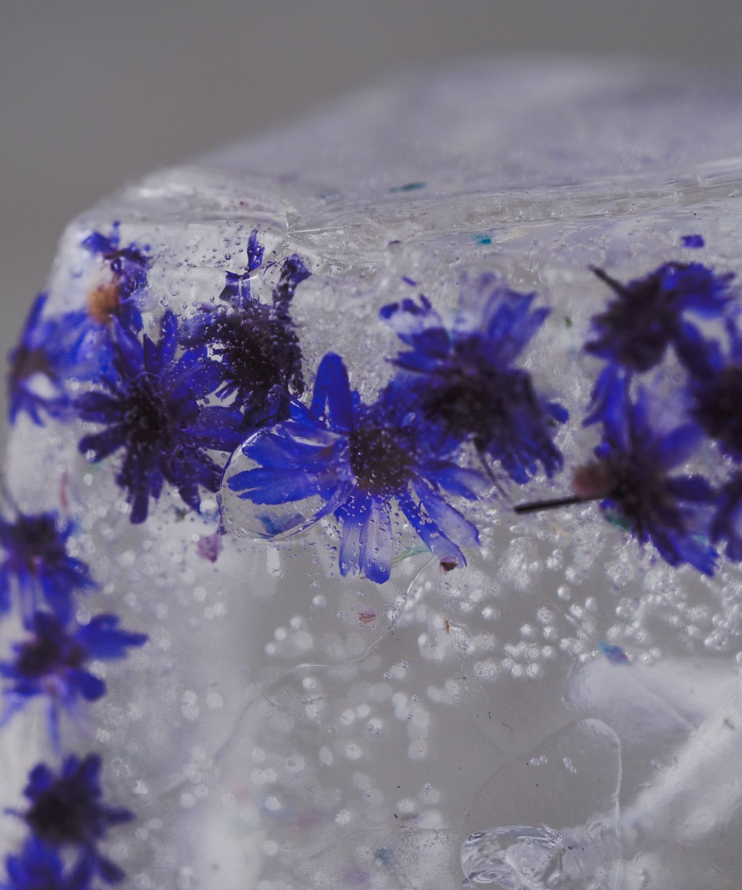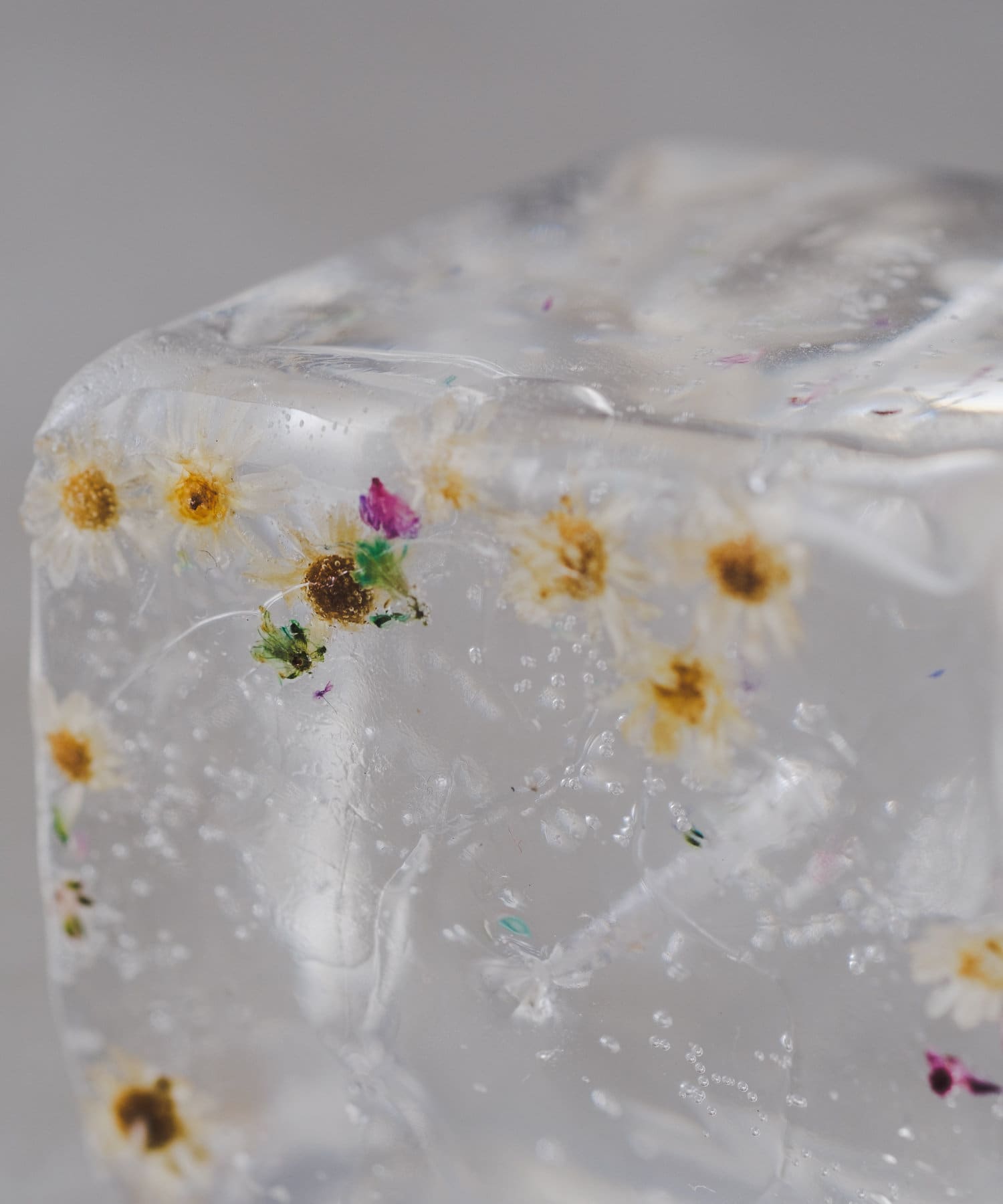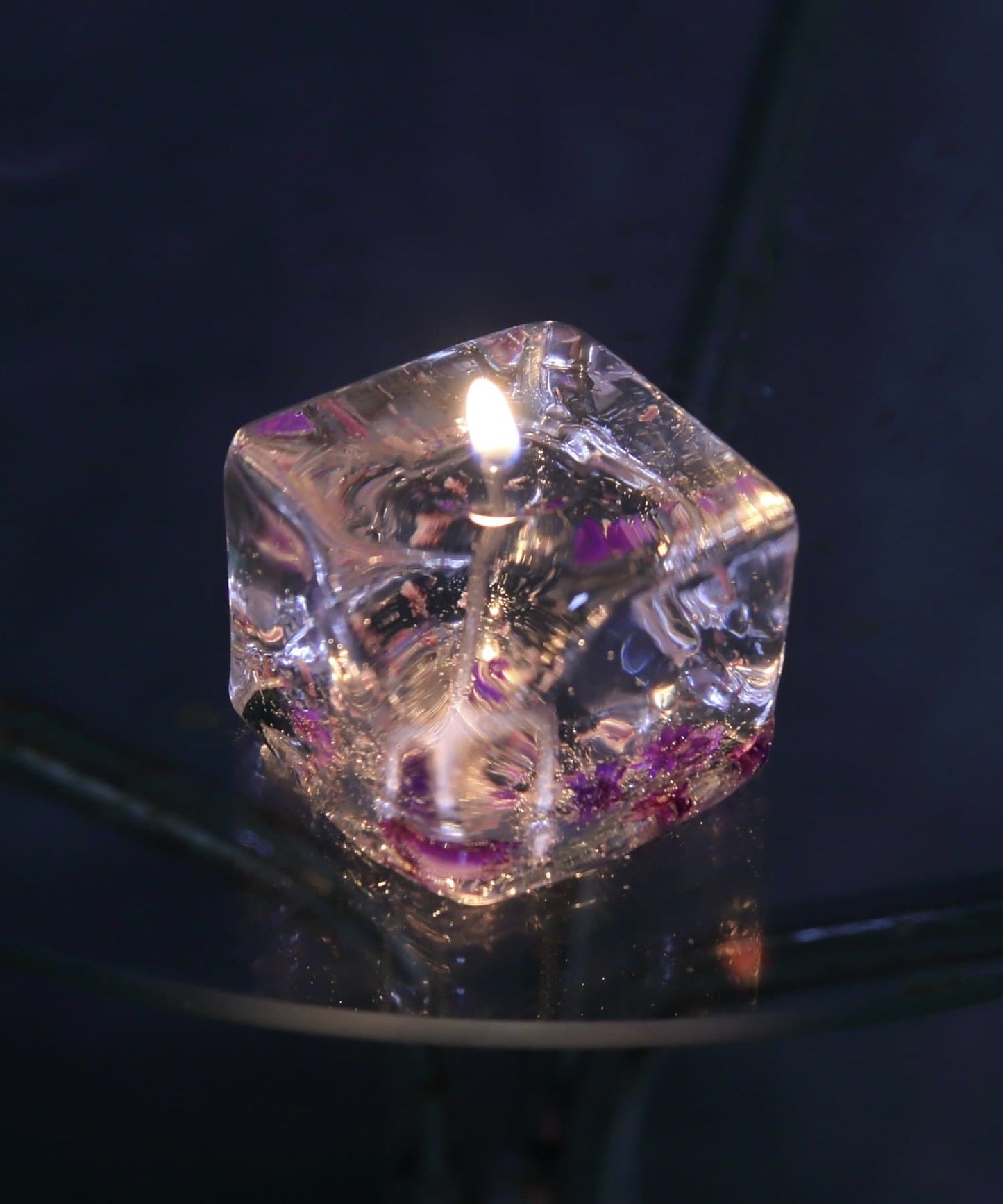 全新系列的透明蠟燭,裝飾著花朵,從透明蠟燭看起來就像冰一樣。