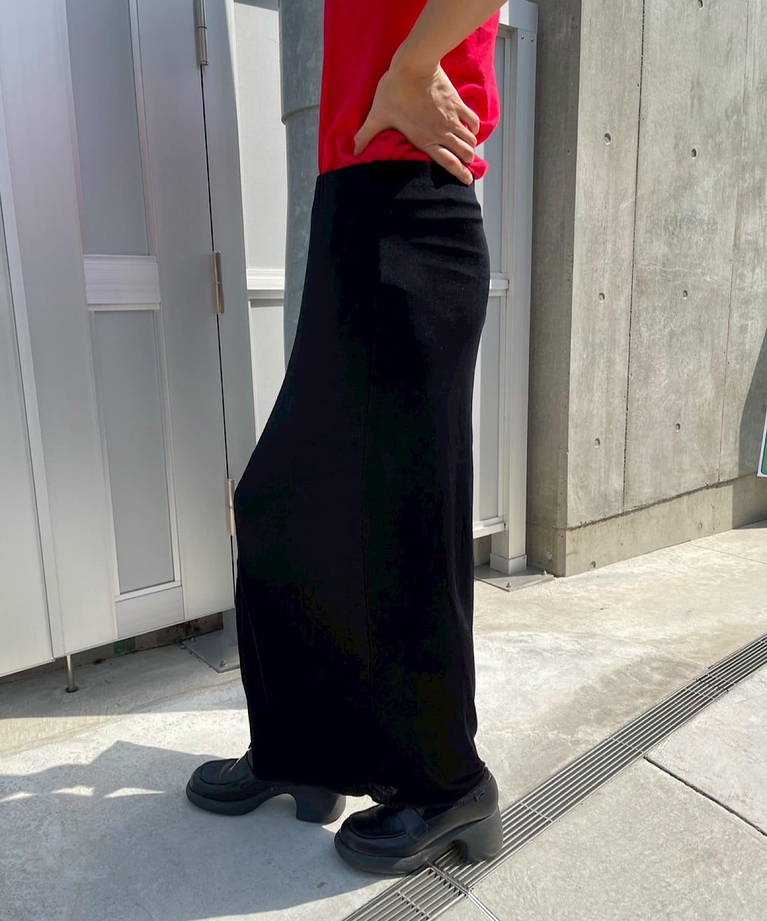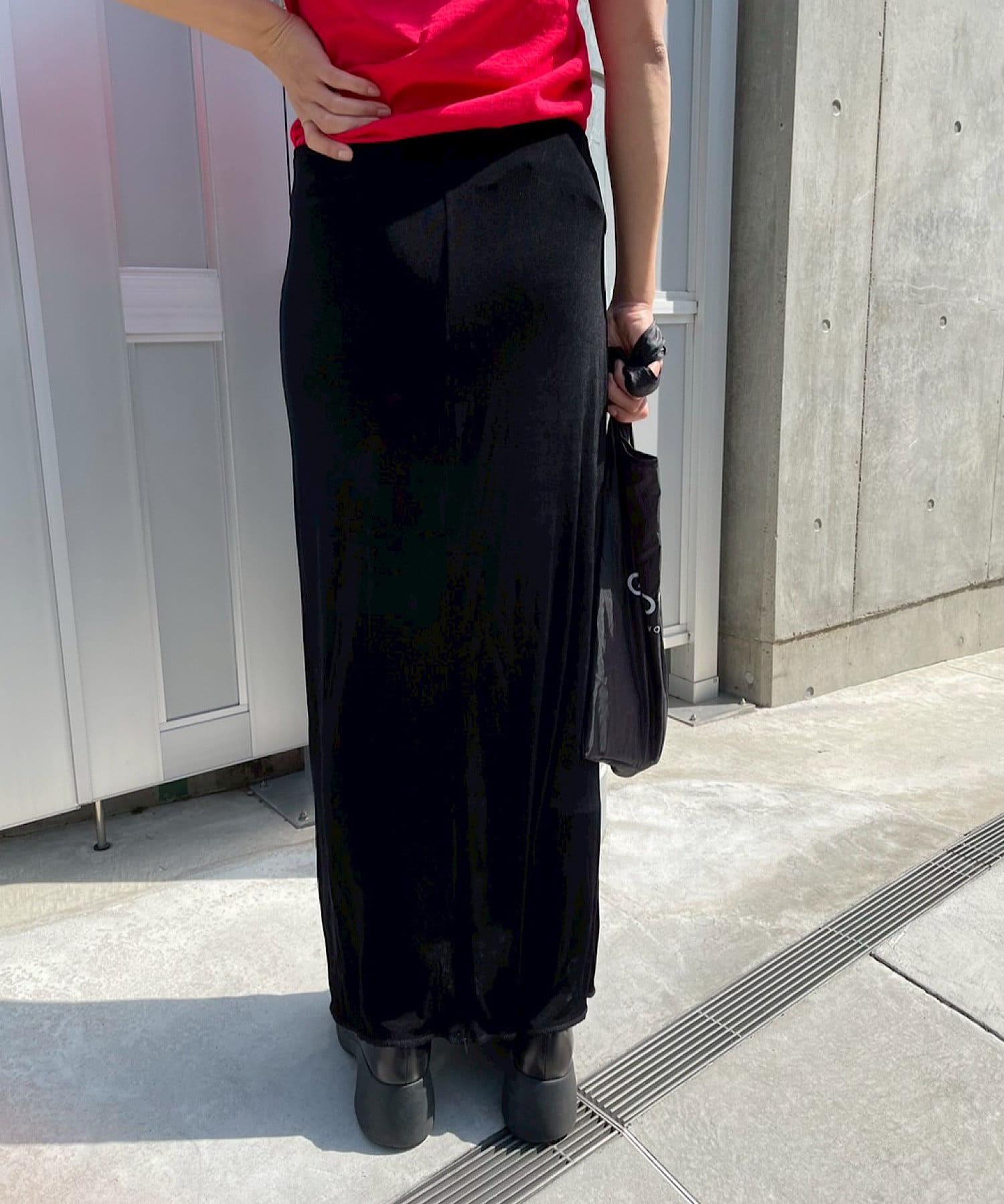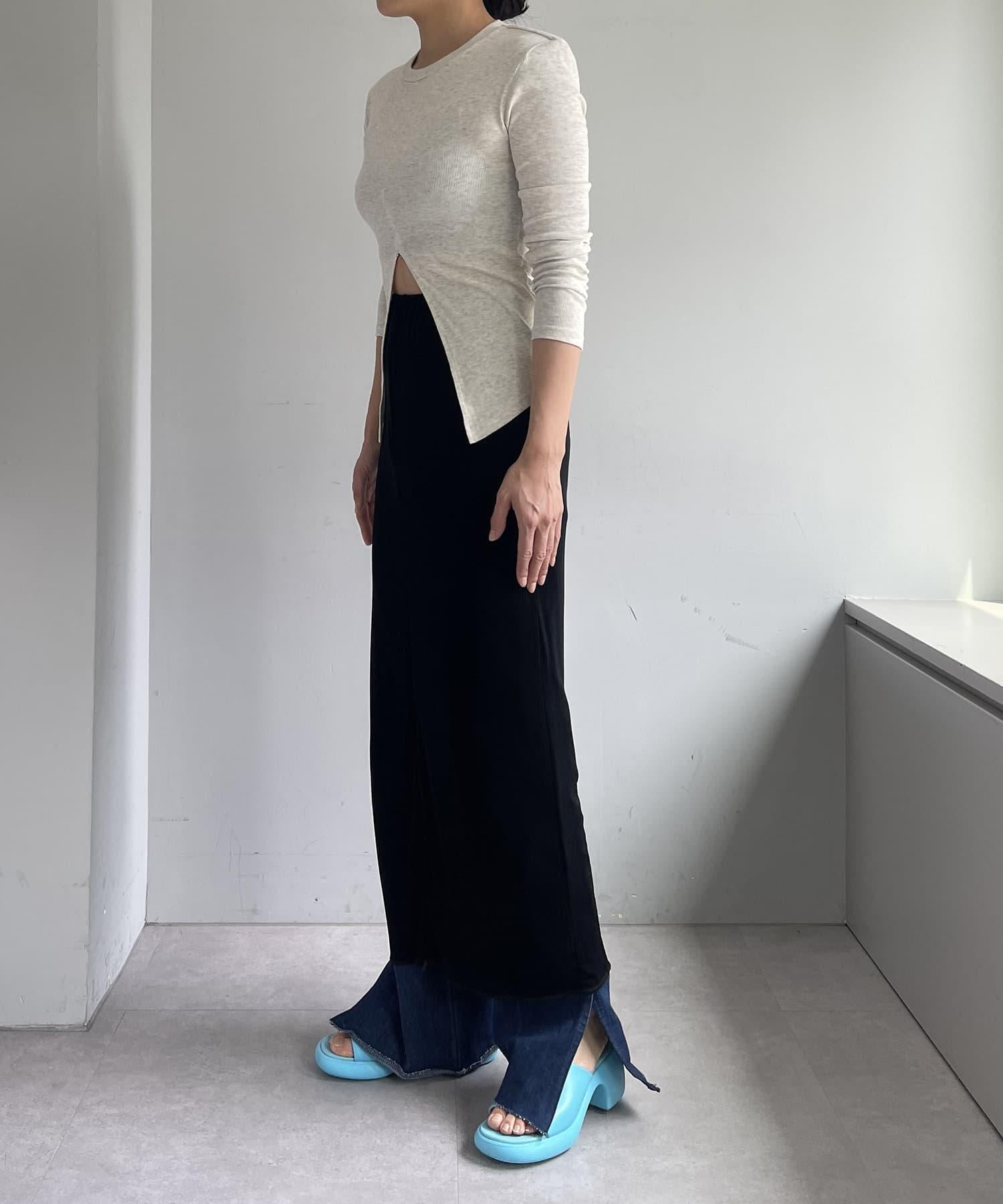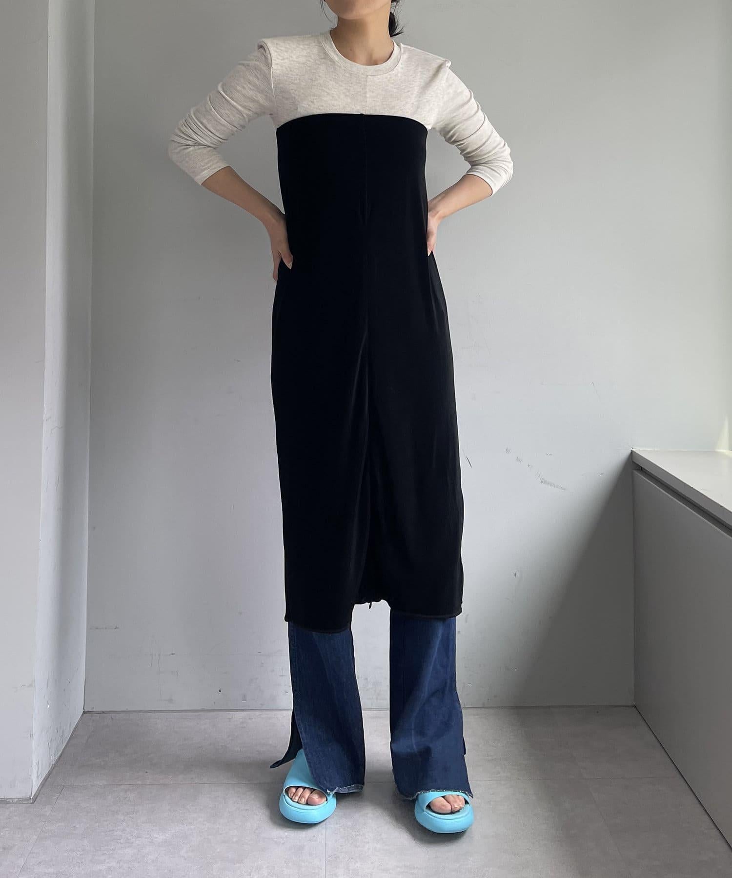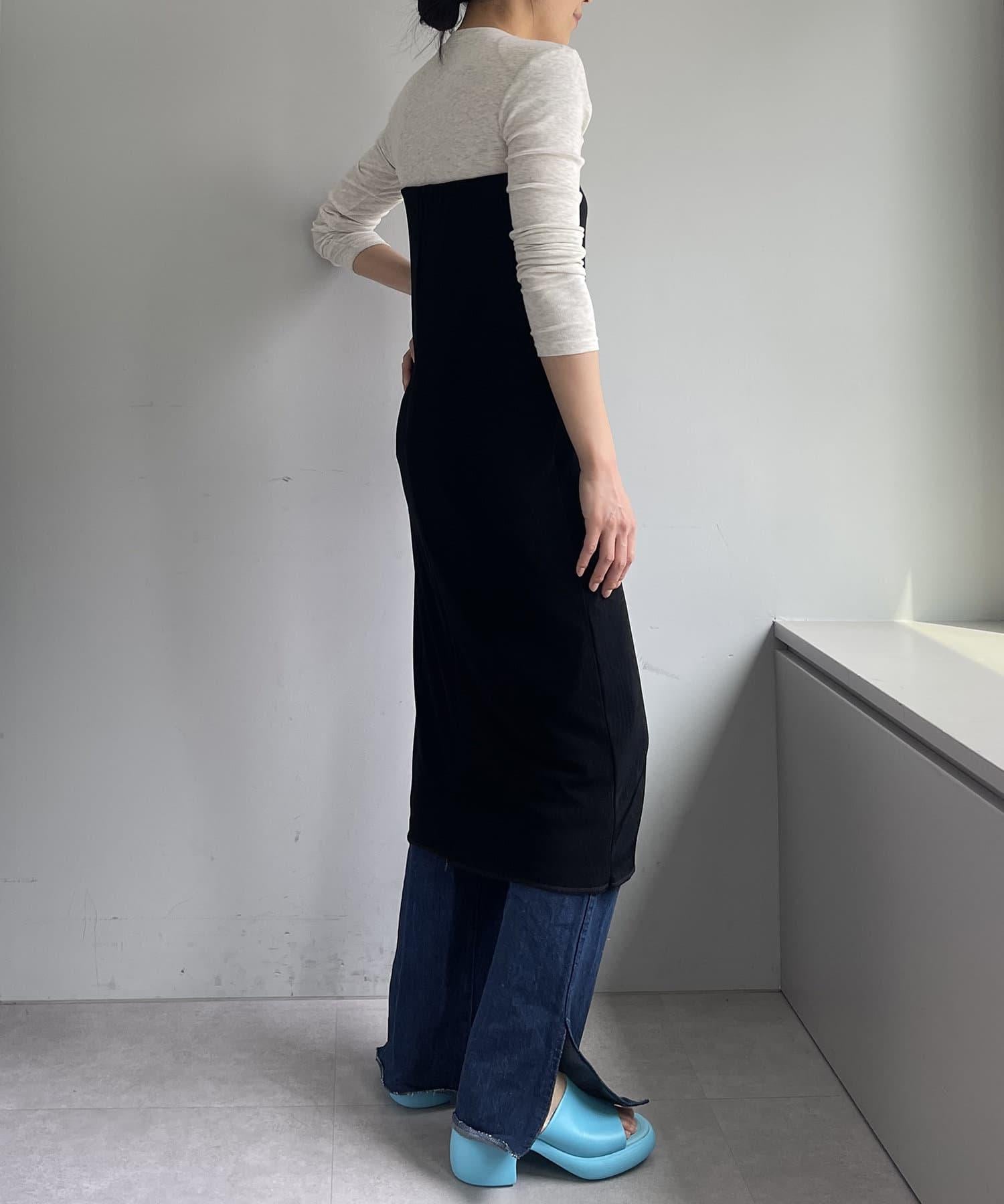 腰部的鬆緊帶可以提至胸前,作為裸上衣穿著;在 STYLE LOOK 中,它被設計成迷你長款外衣裸裙。同樣面料的透視羅紋喇叭褲也可供選擇。(長褲有黑色、棕色和紅色可供選擇)。此外,強烈建議與赤裸外衣搭配作為套裝穿著。