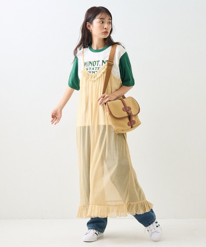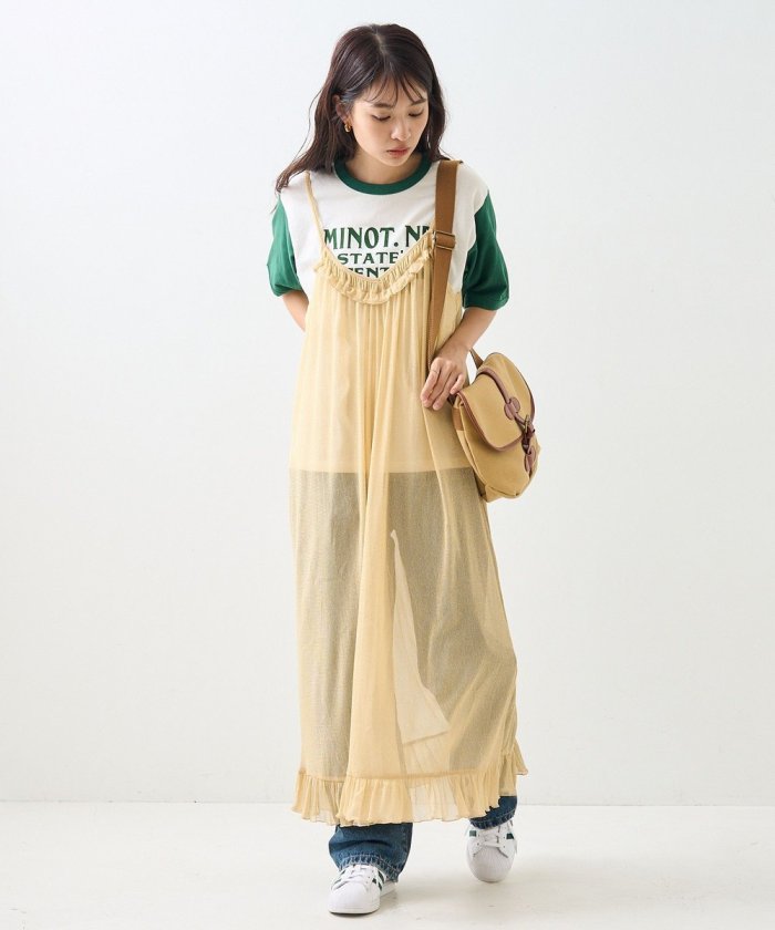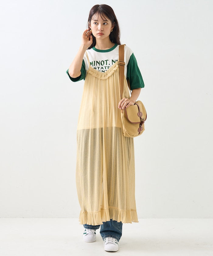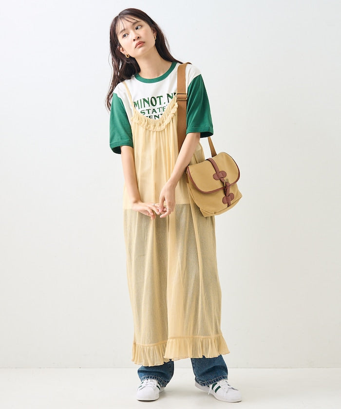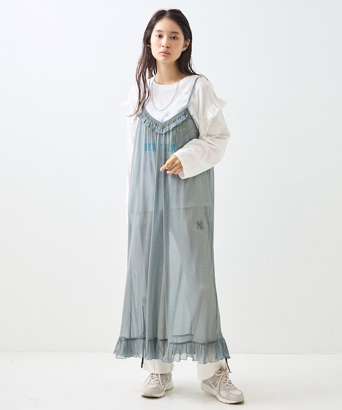 這款吊帶連衣裙的胸部和下襬均飾有荷葉邊。