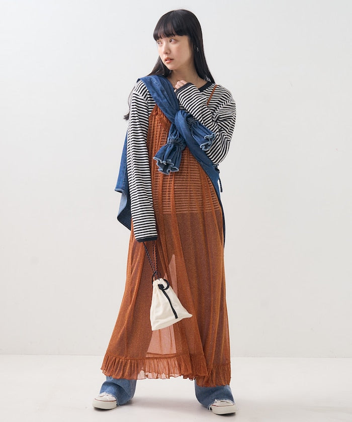 透明閃光吊帶連衣裙