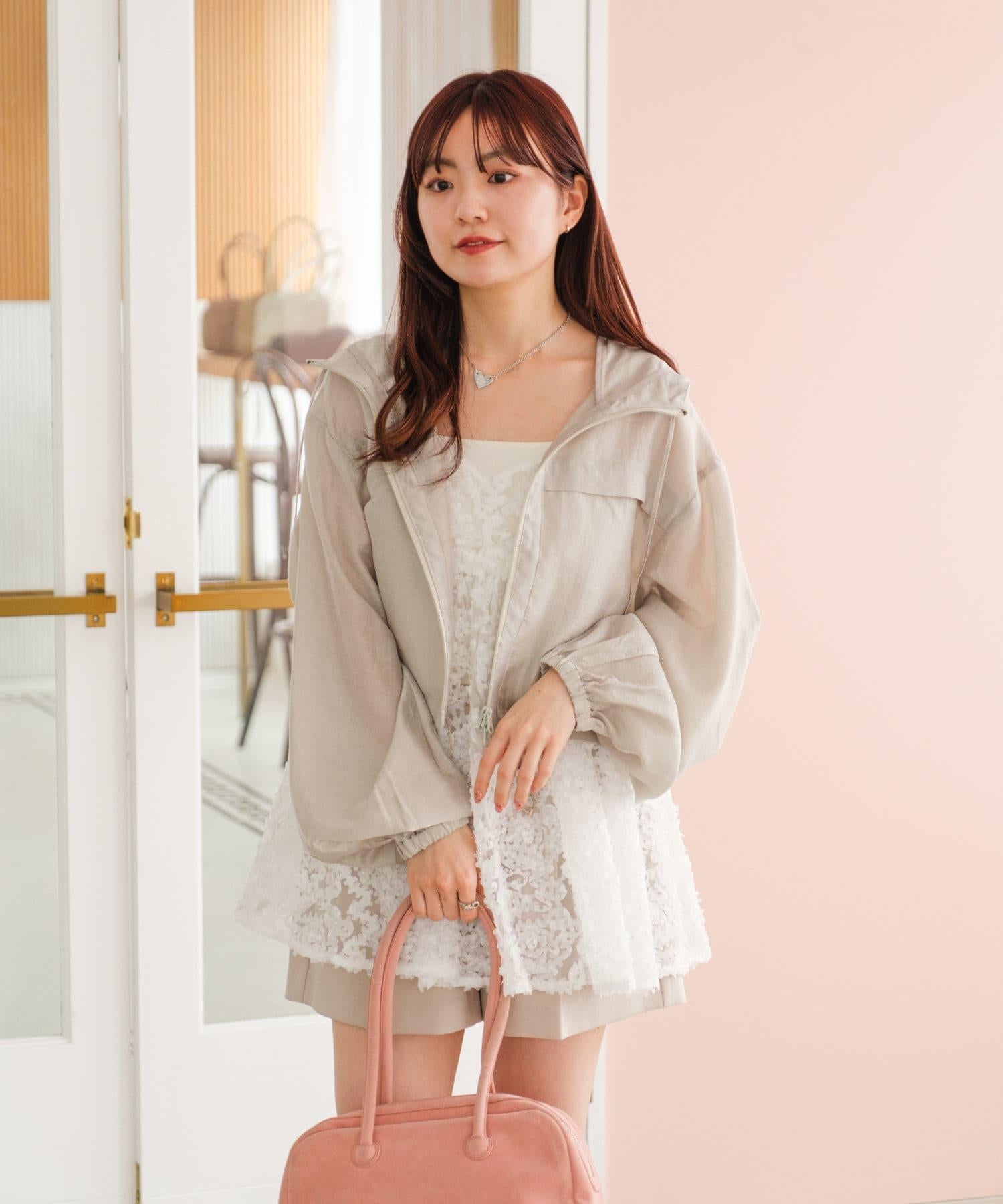 這款連帽衫採用透明薄紗設計,層次分明,極具吸引力。
