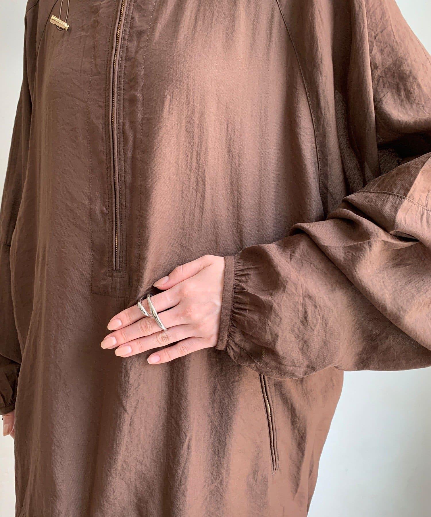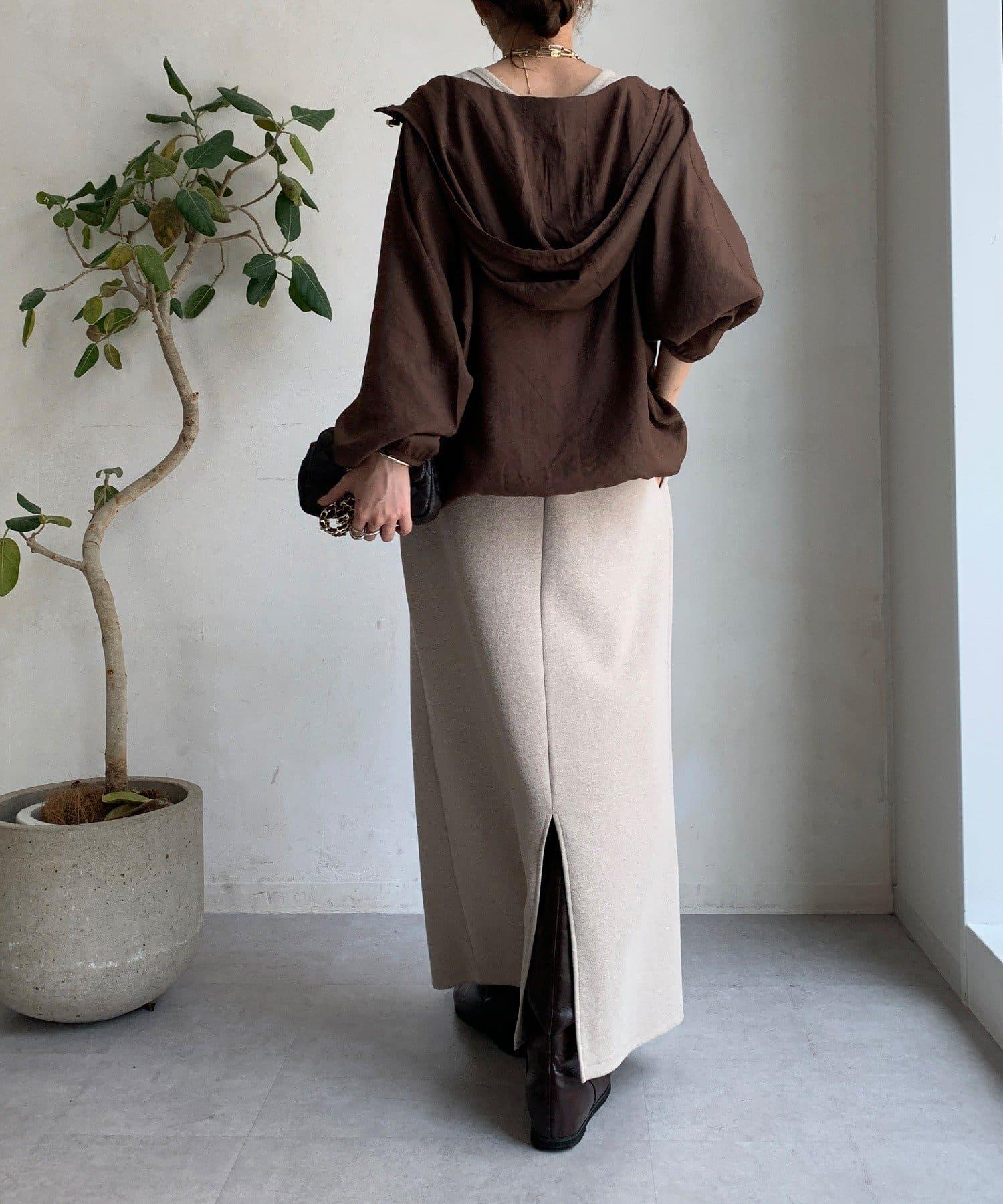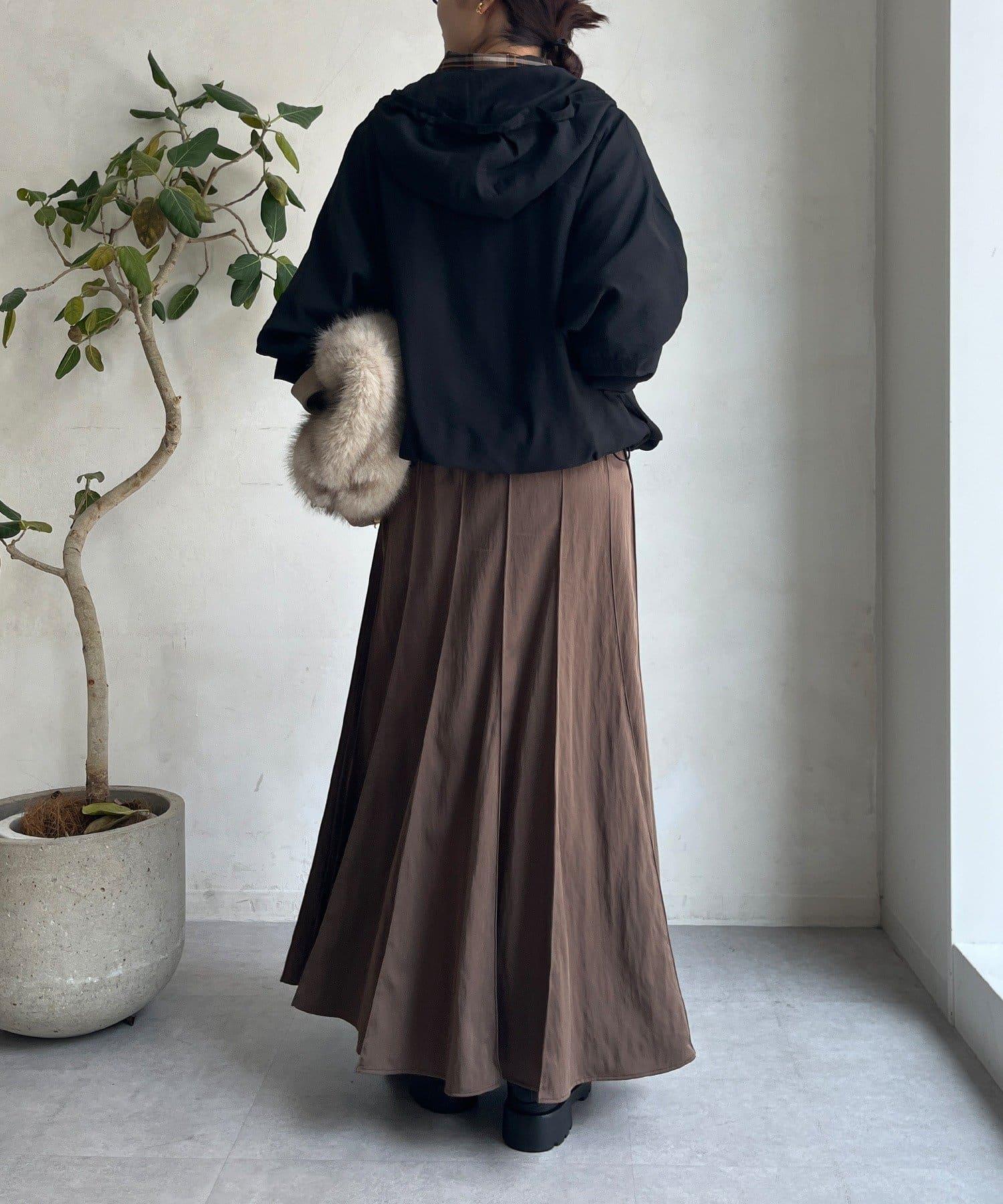下襬有抽繩規格,可以收緊,變為圓形輪廓。