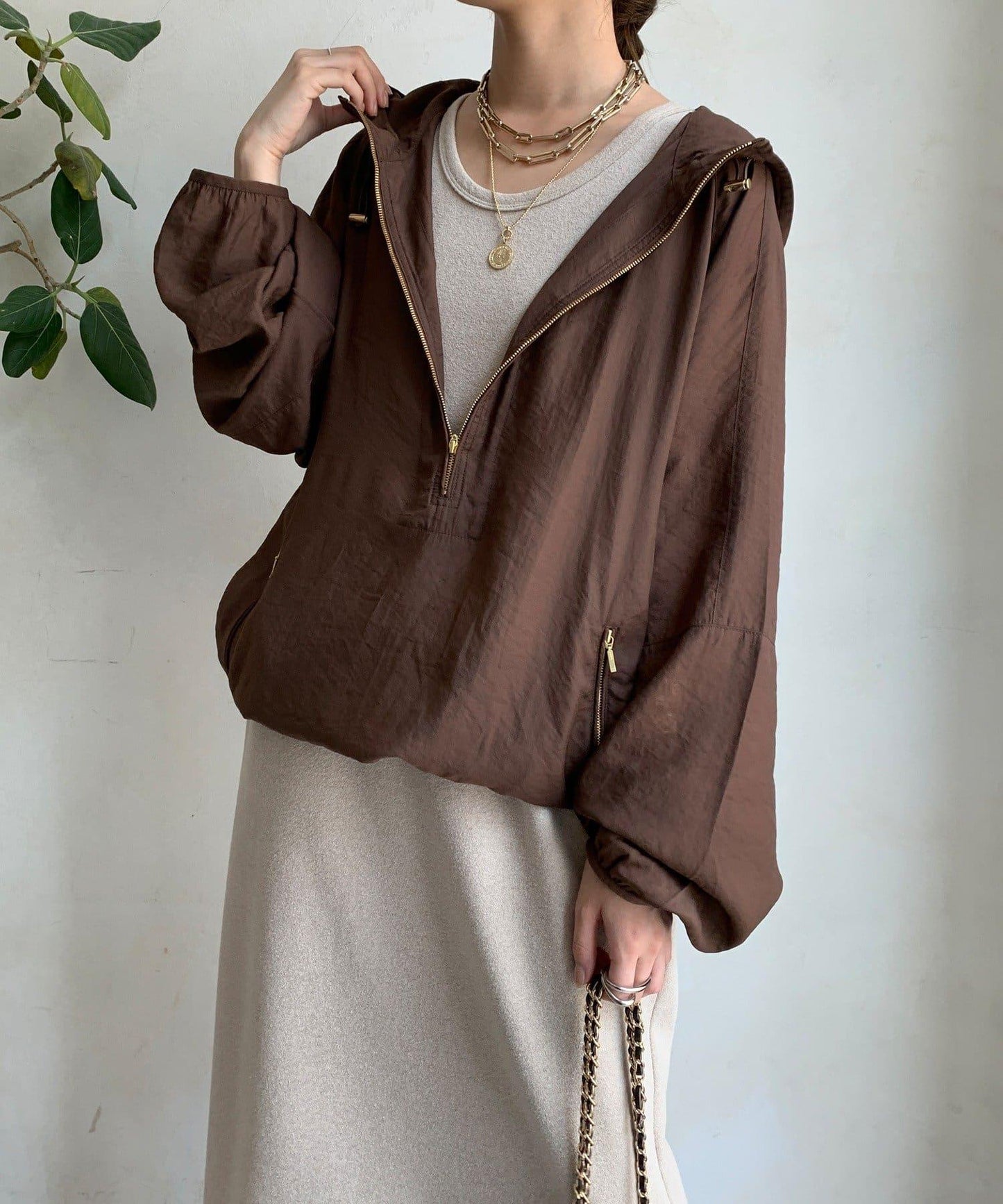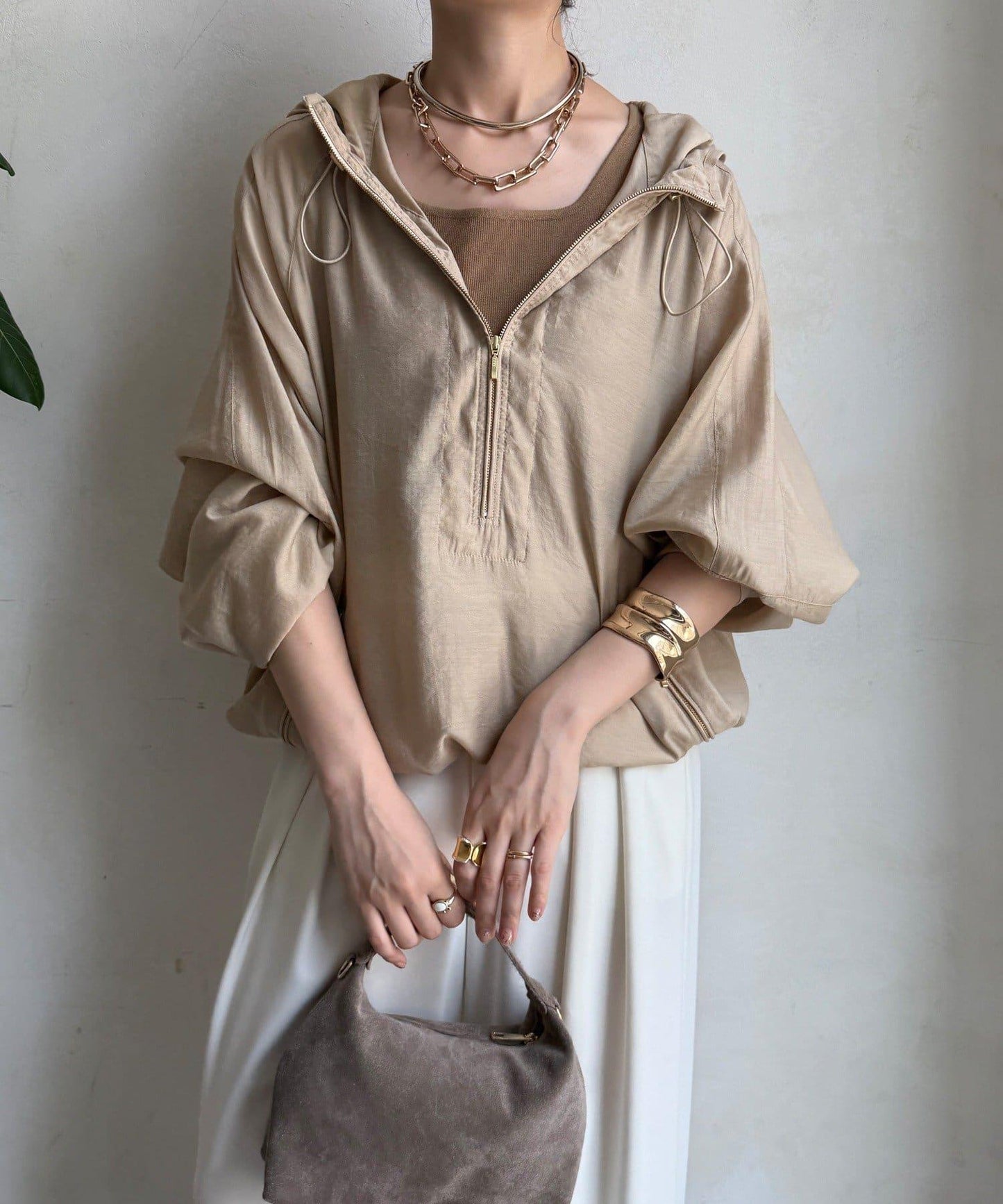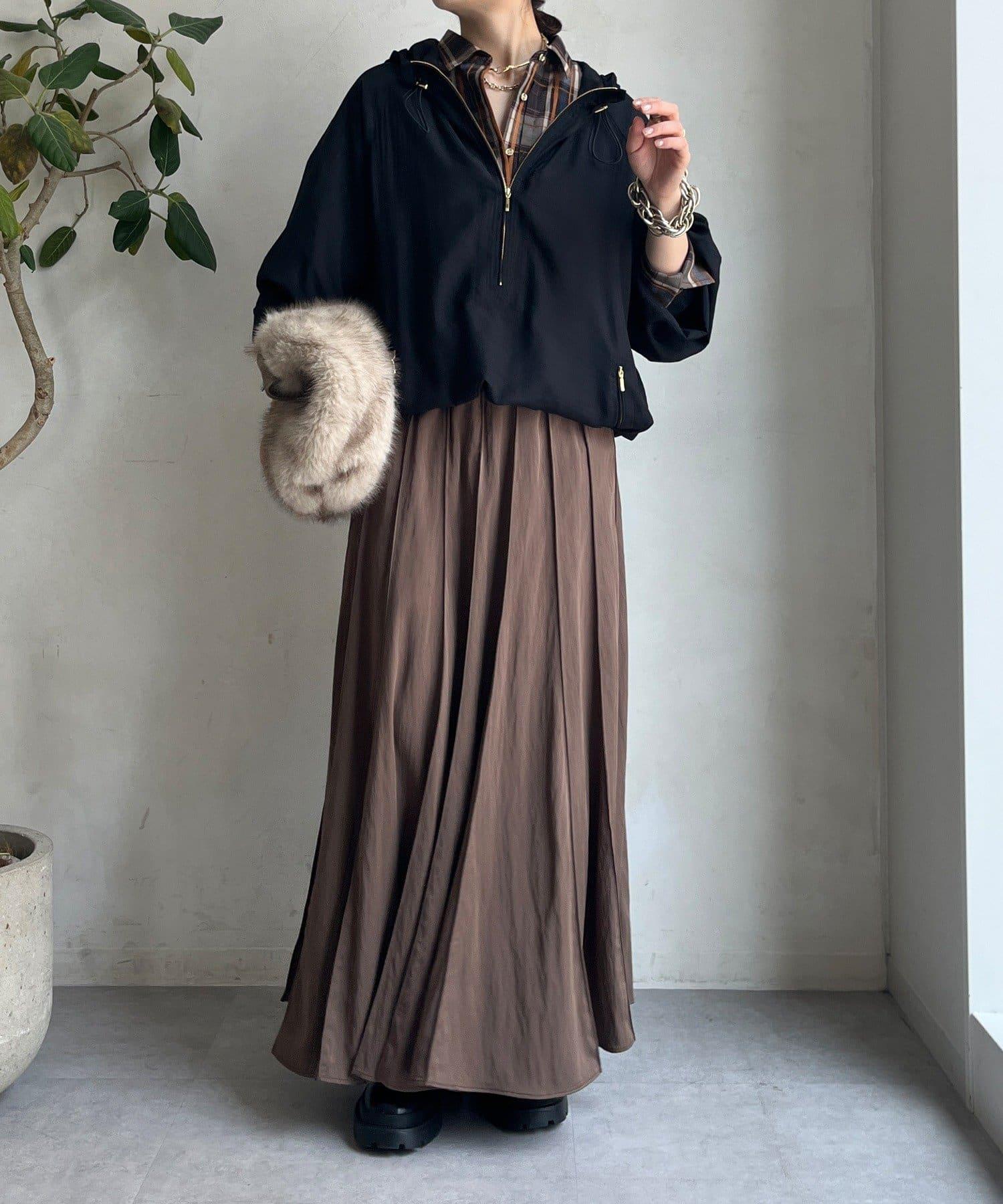 下襬有抽繩規格,可以收緊,變為圓形輪廓。