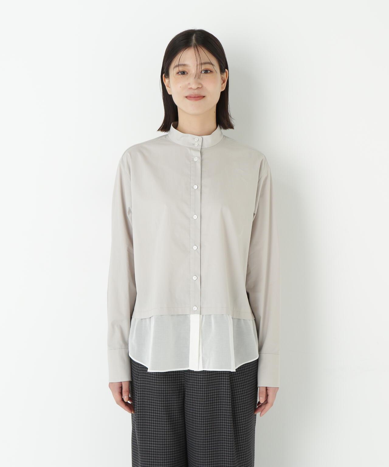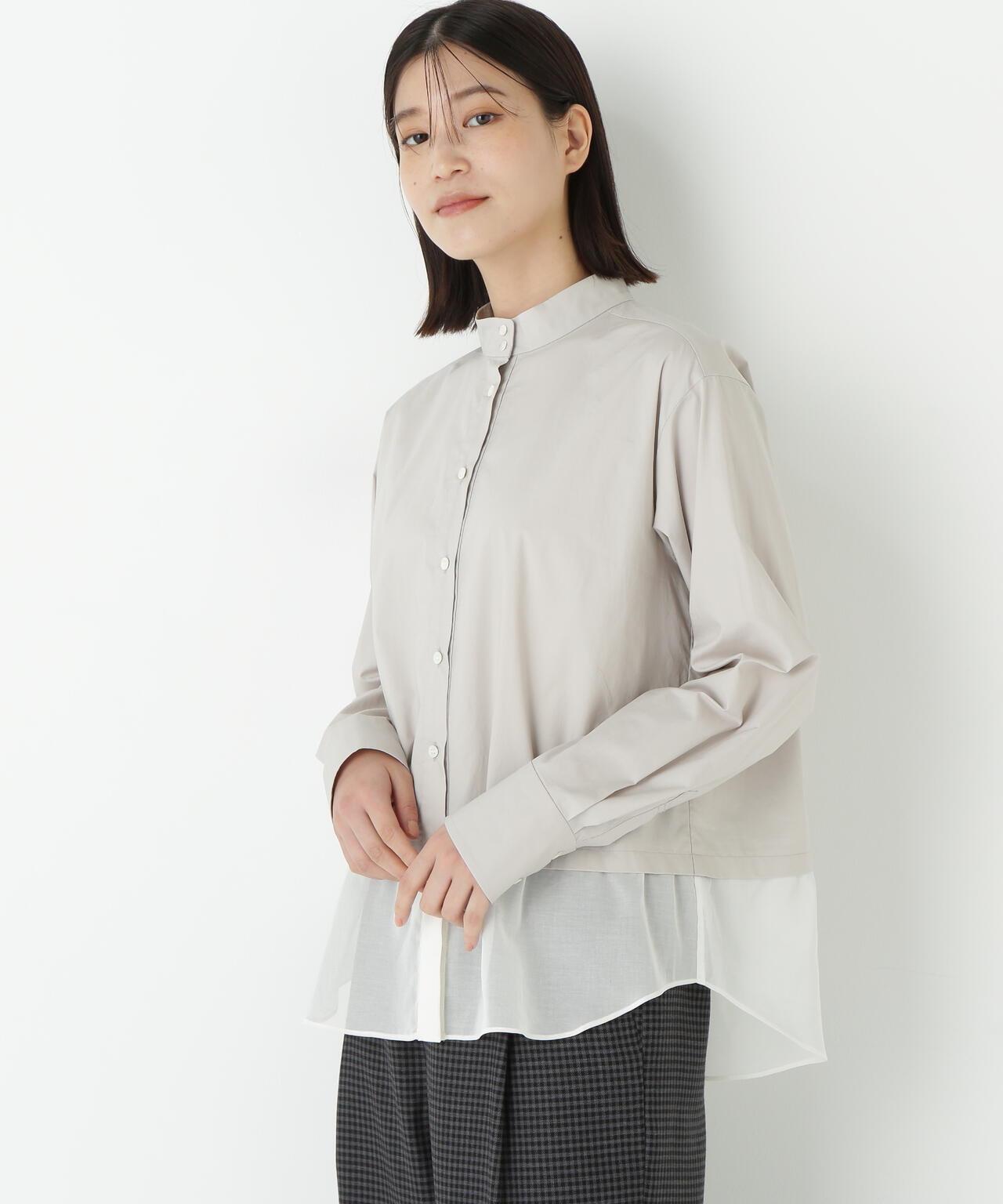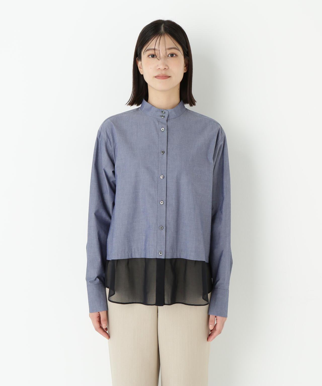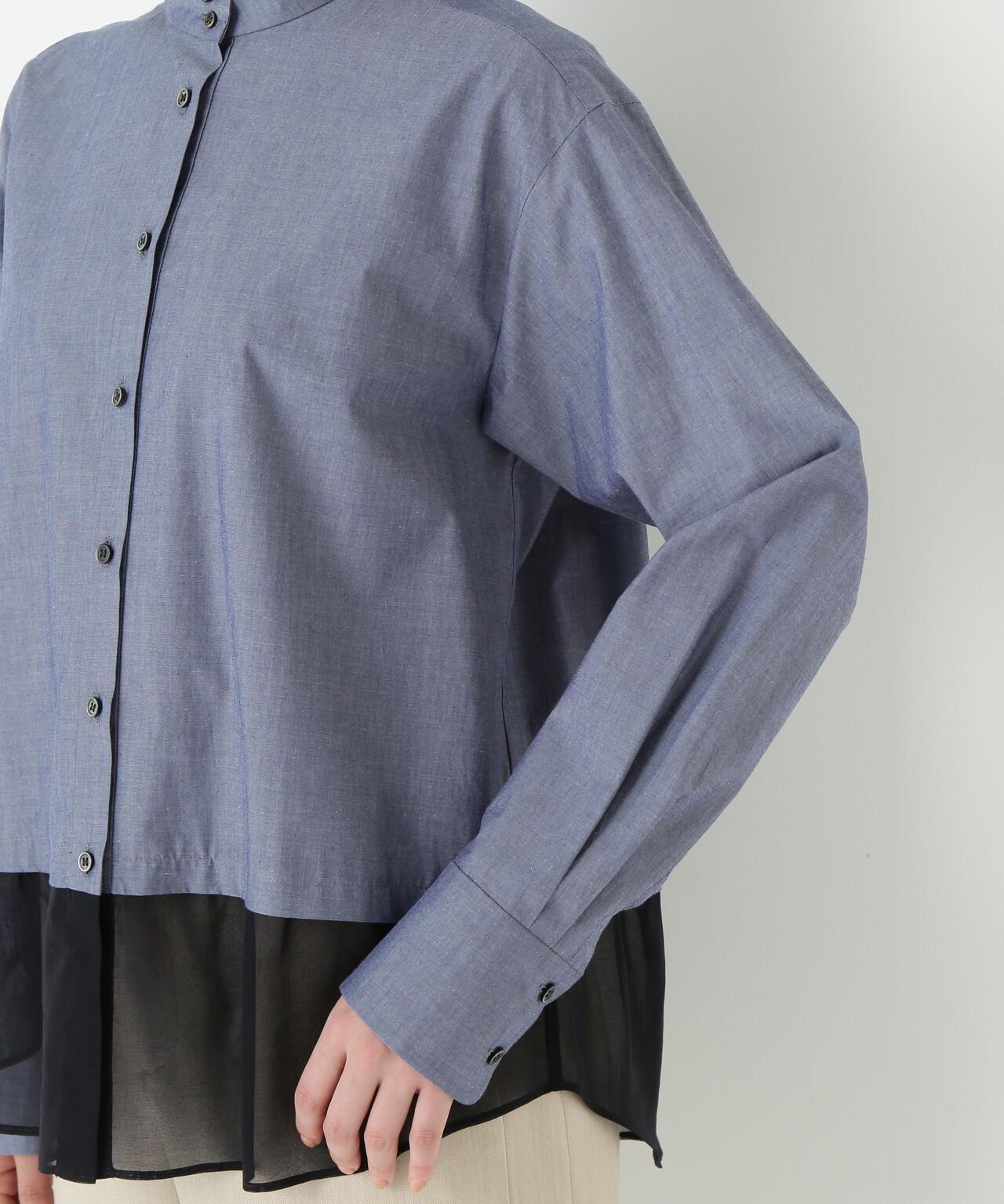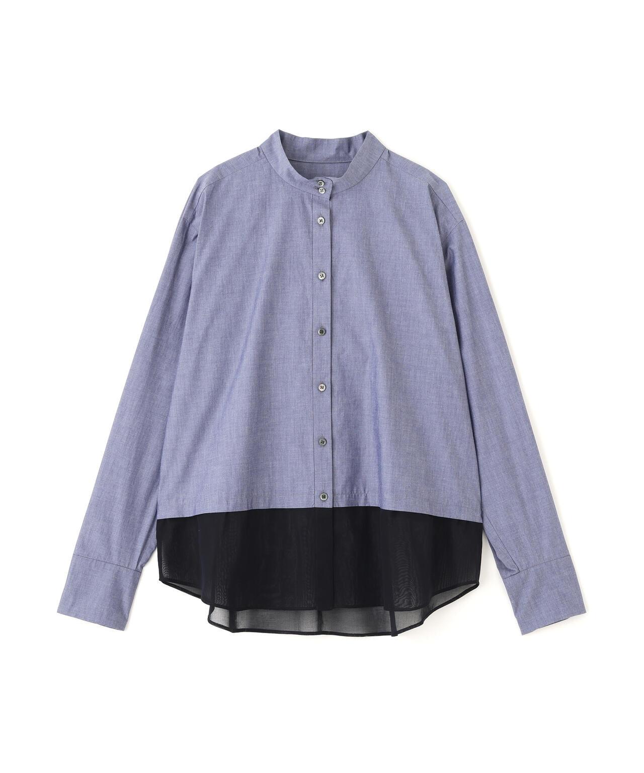透視下襬拼接高領襯衫