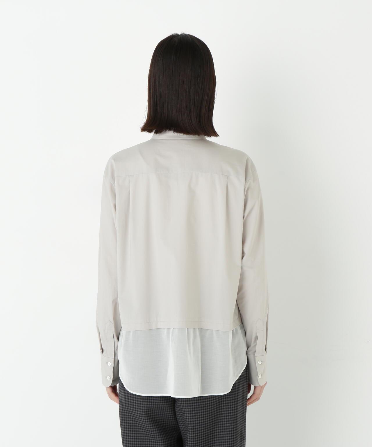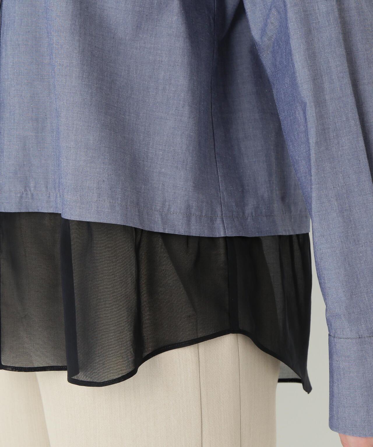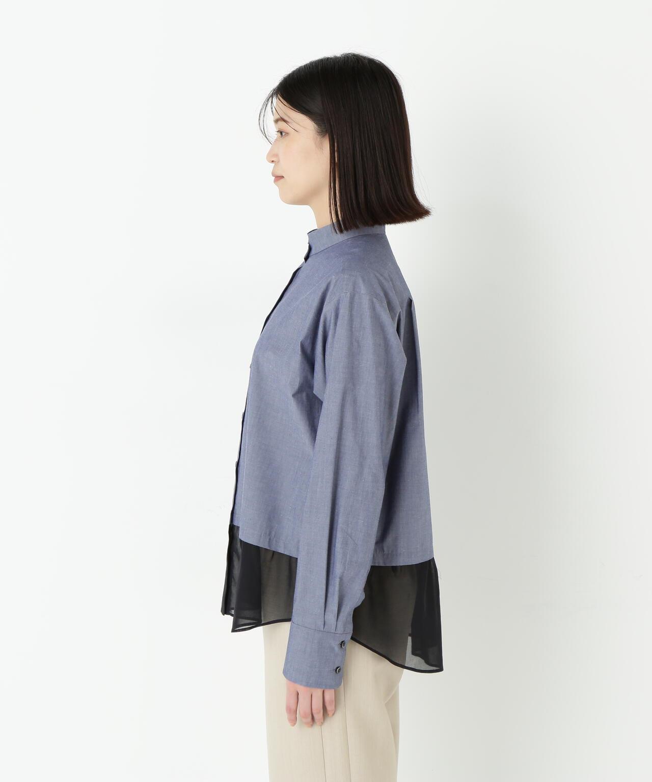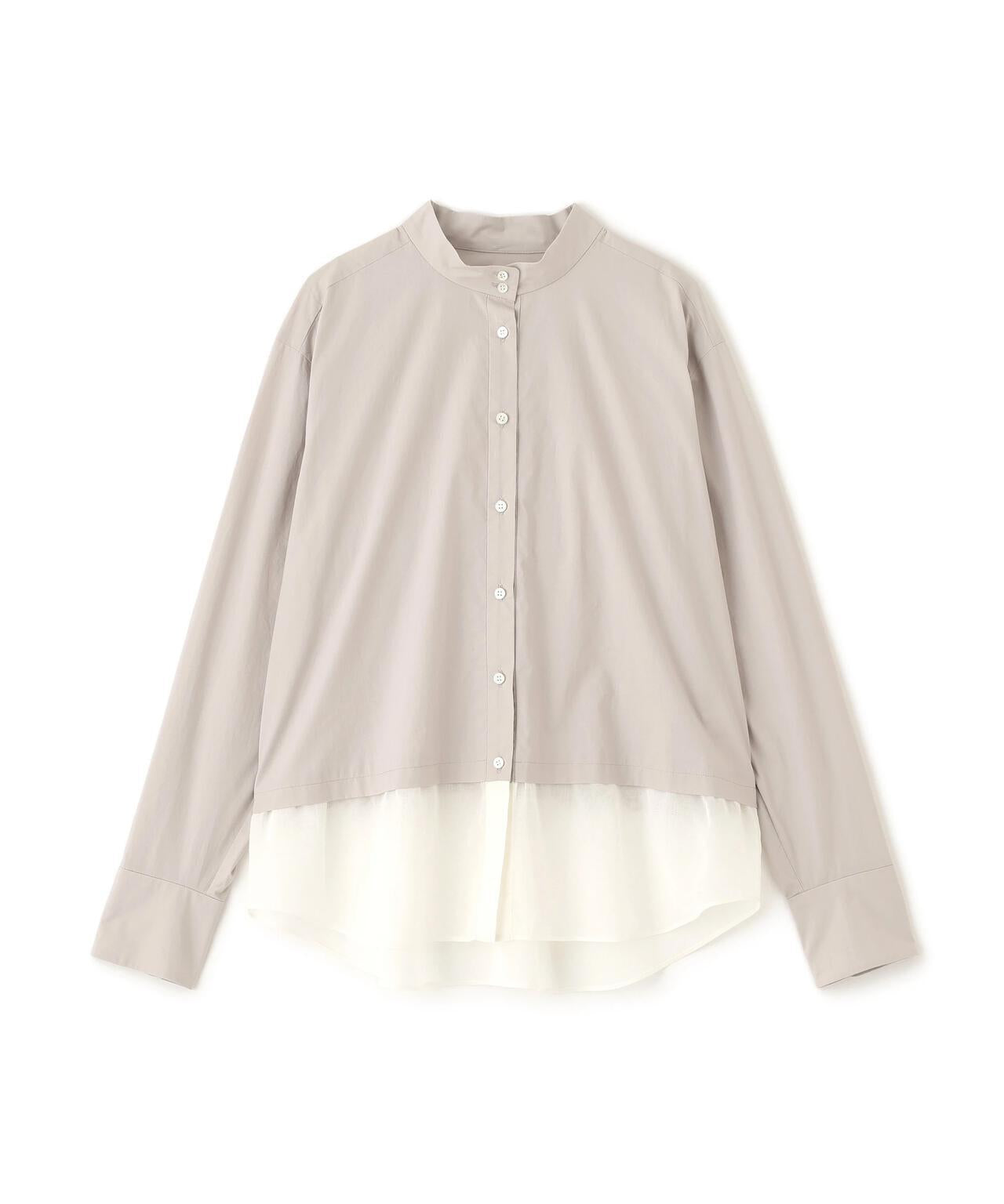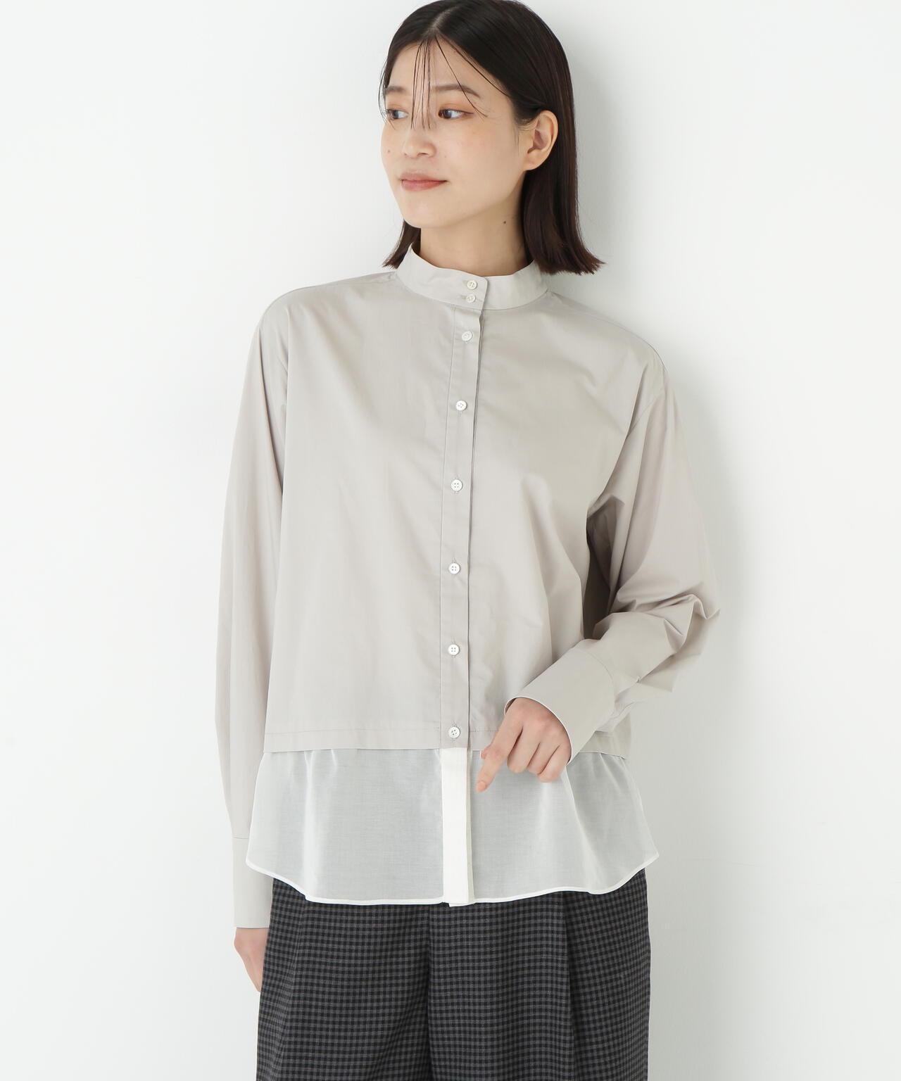 透視下襬拼接高領襯衫