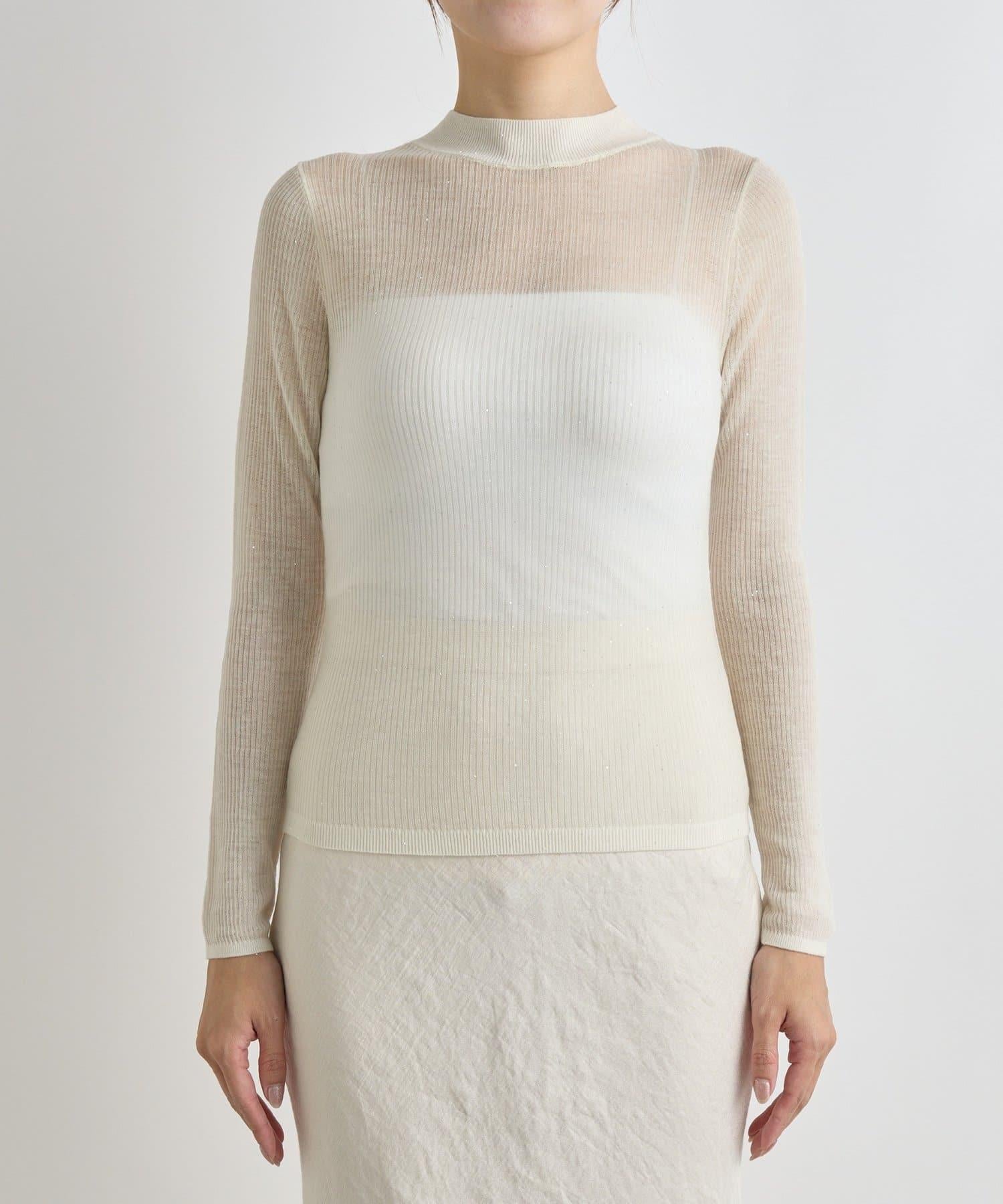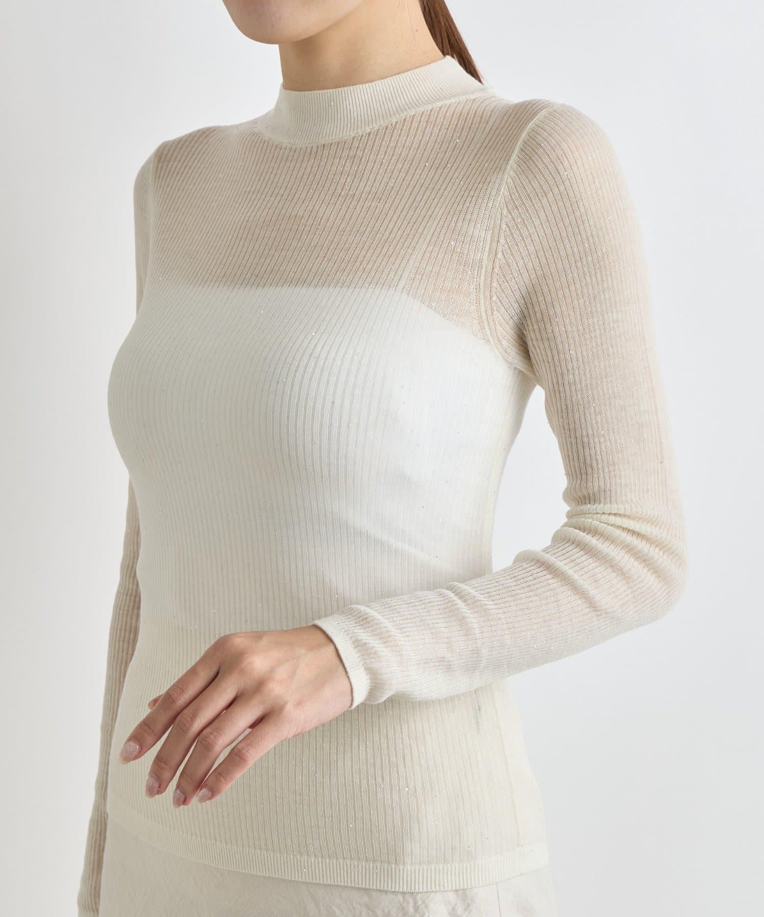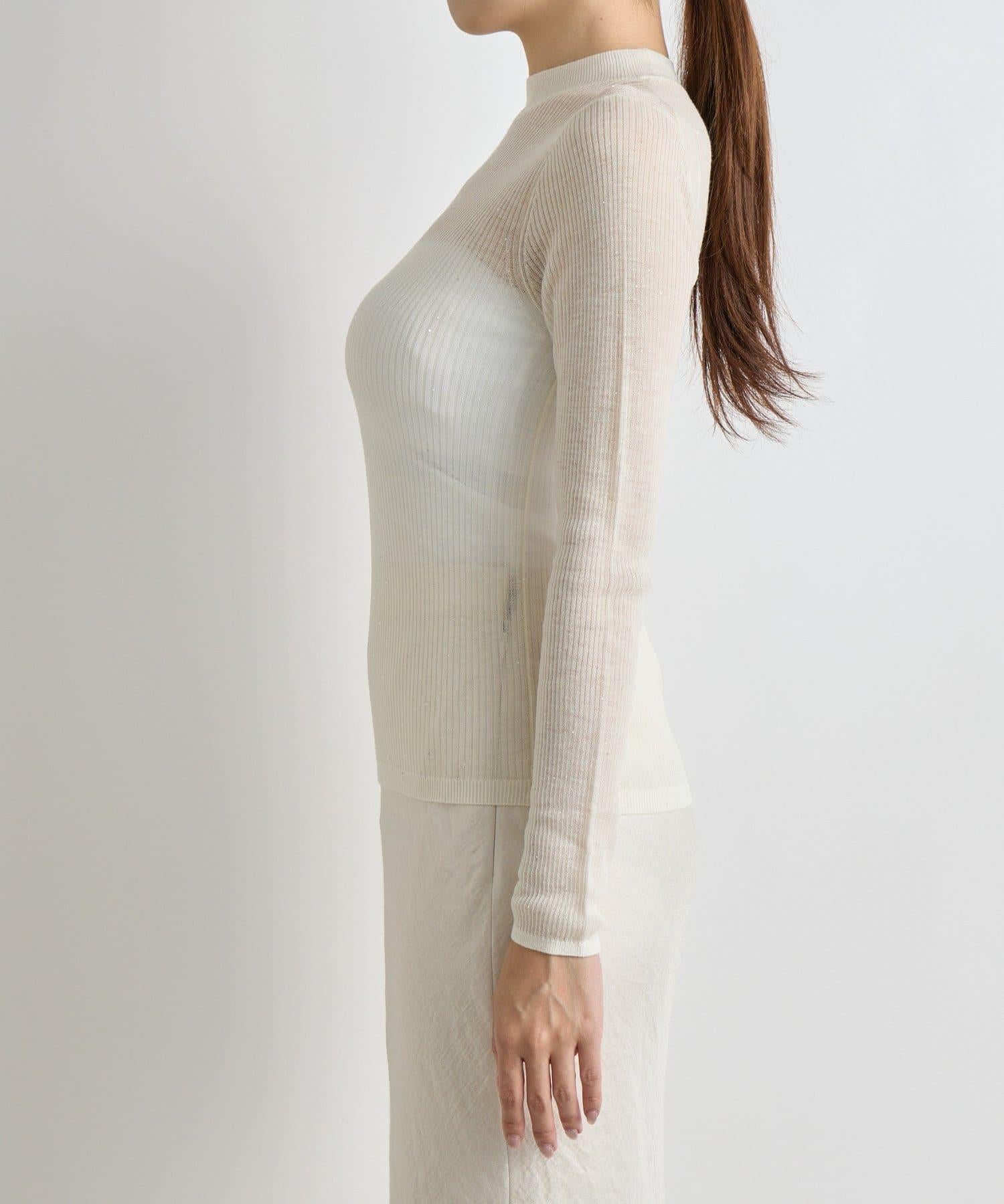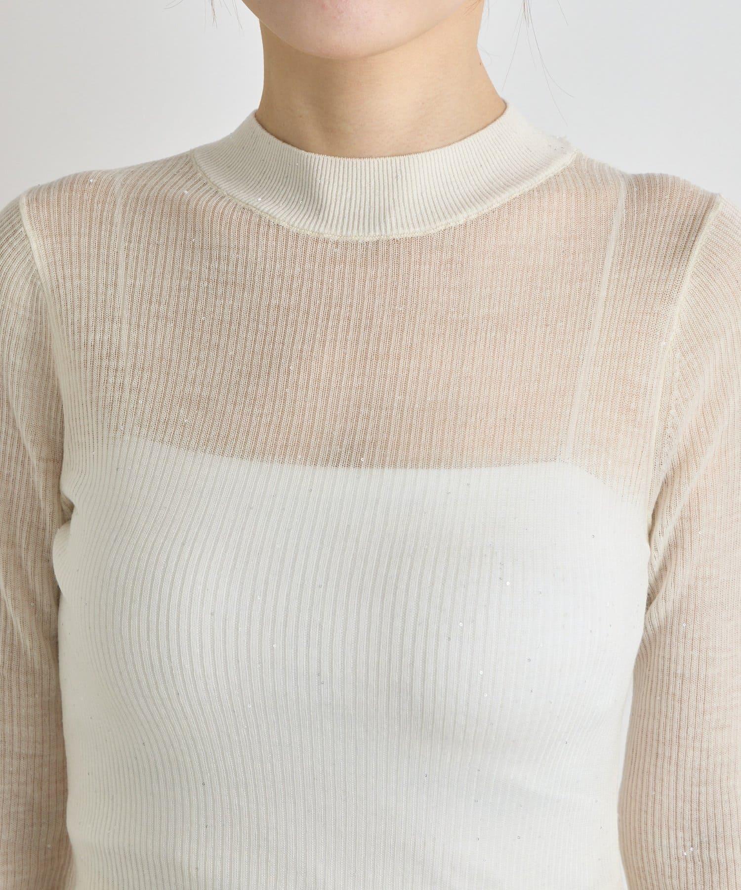 透視亮片高領羅紋針織衫