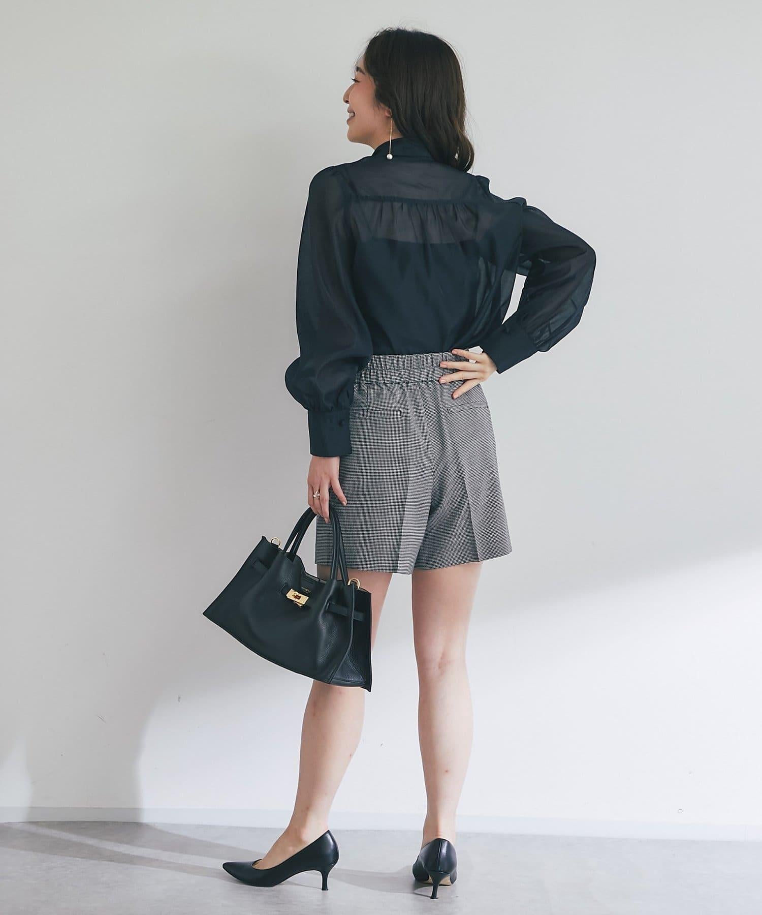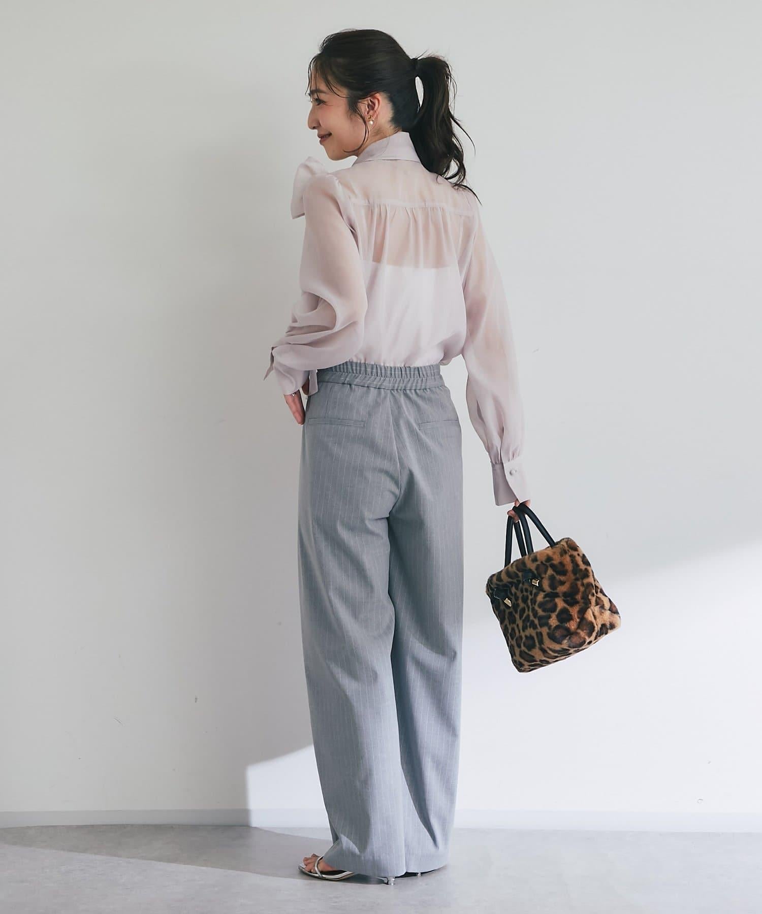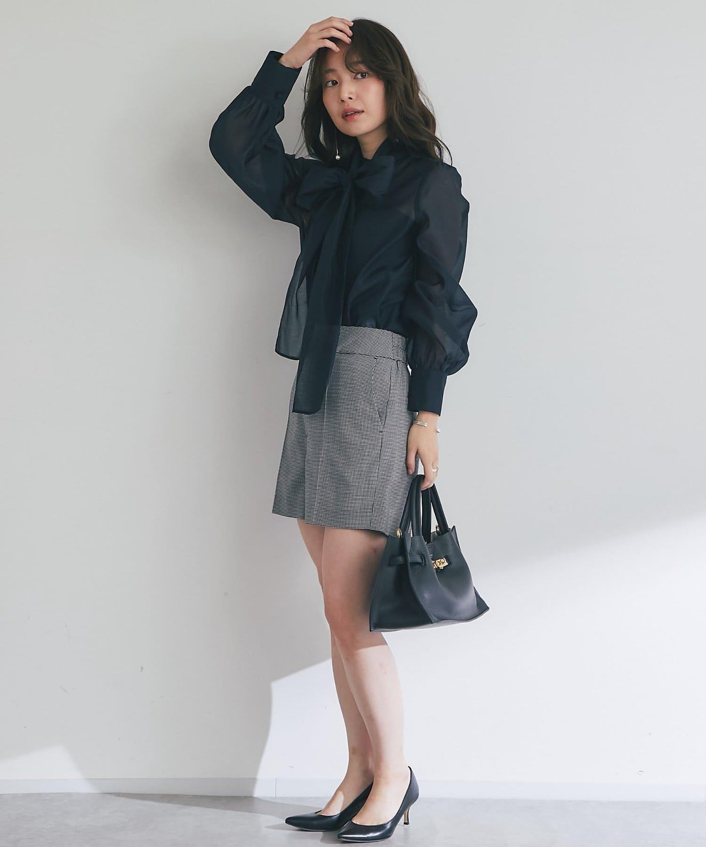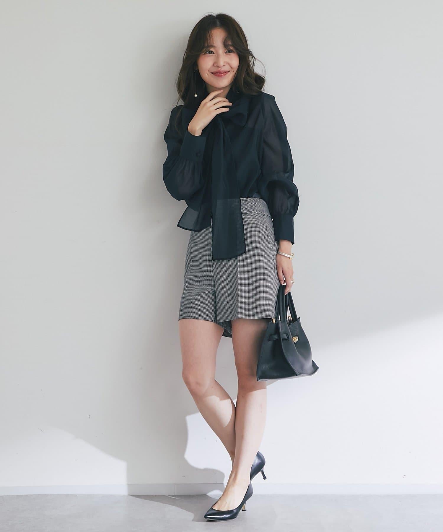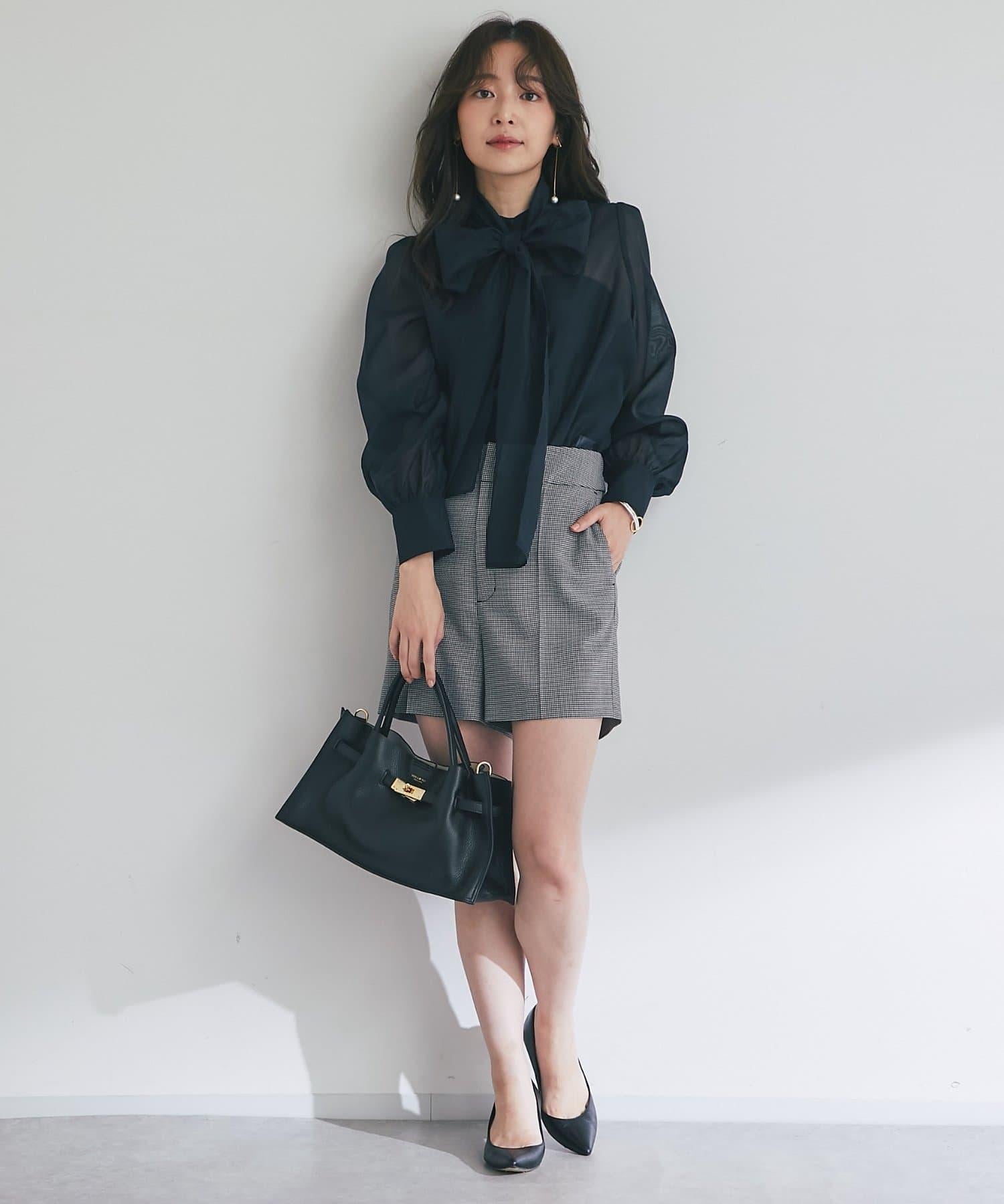 帶有大蝴蝶結領結設計的透視上衣既迷人又優雅。