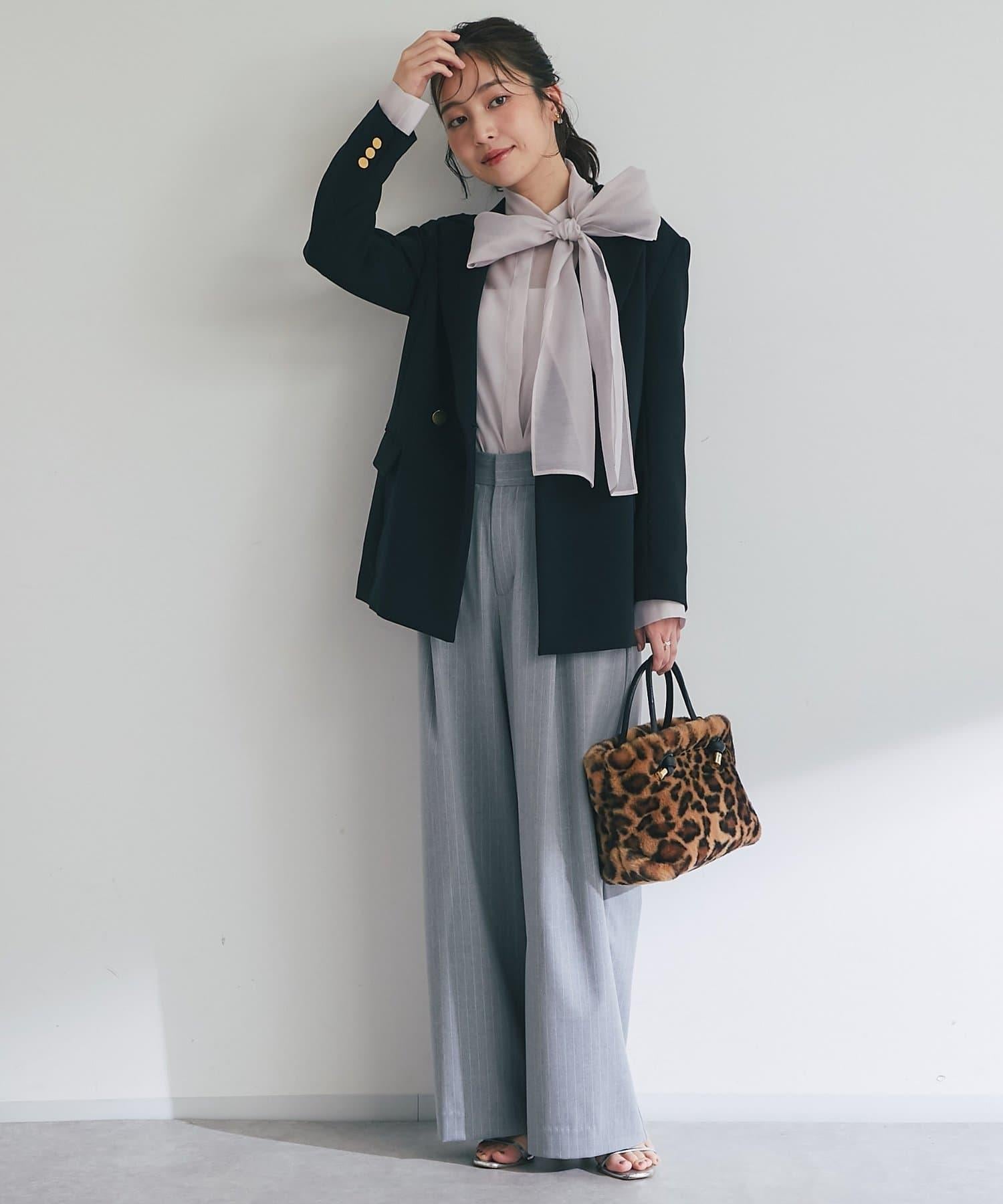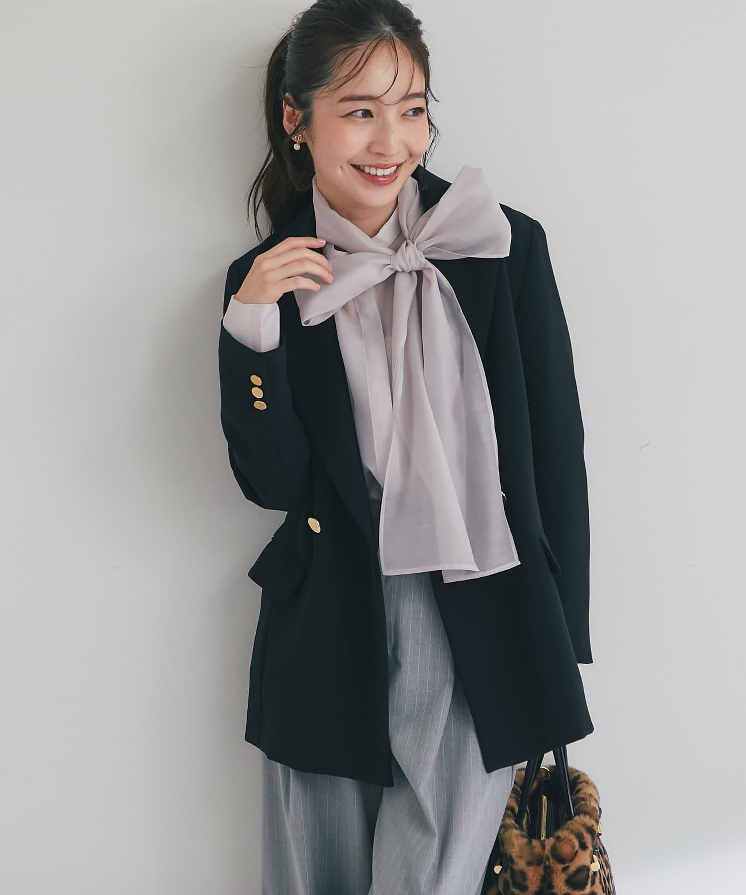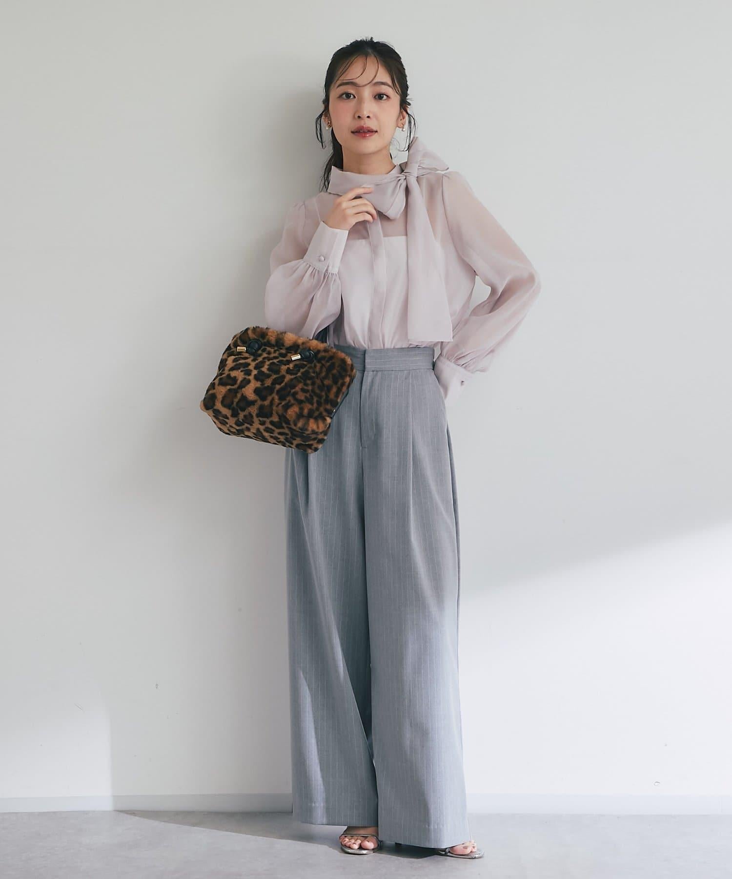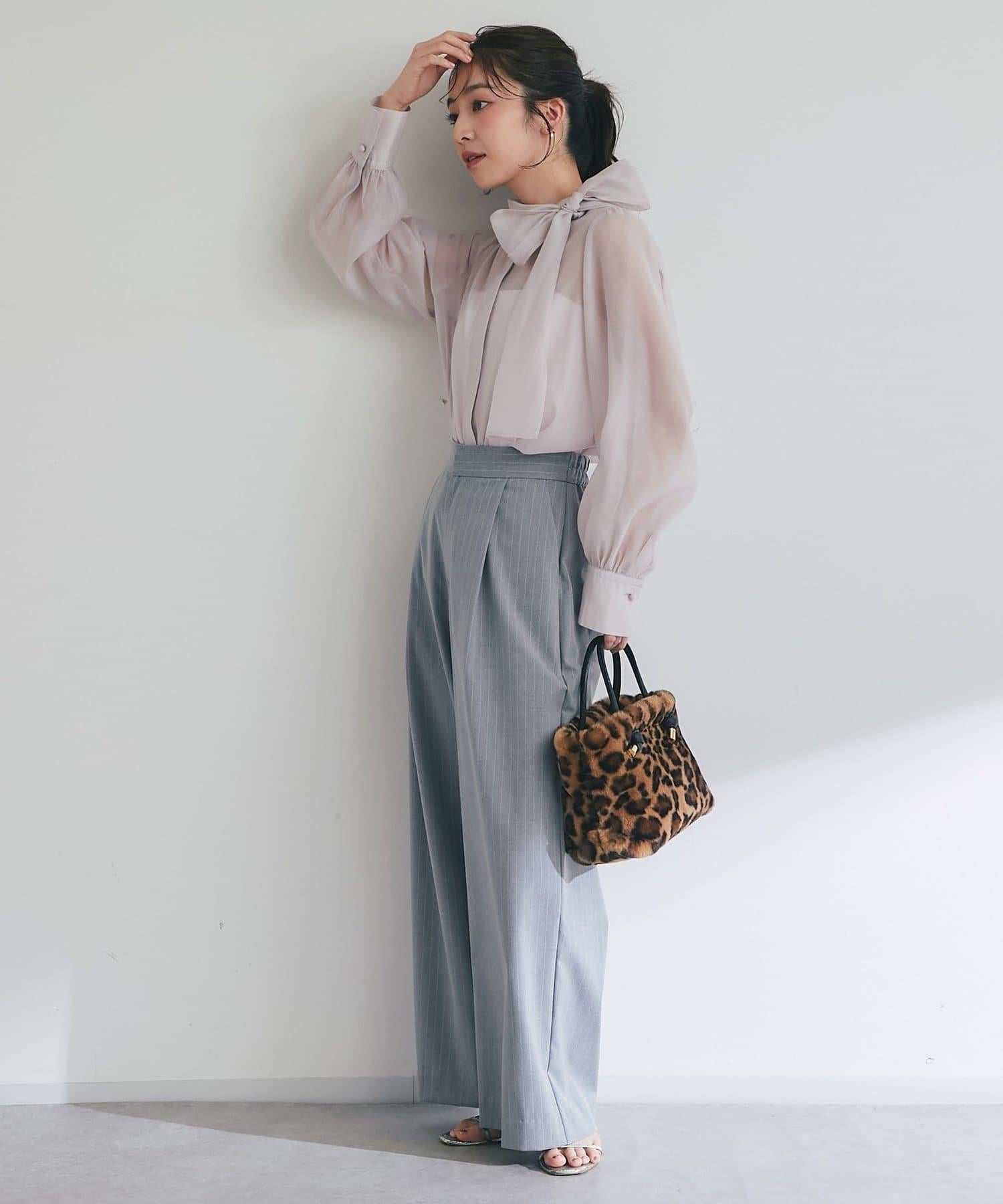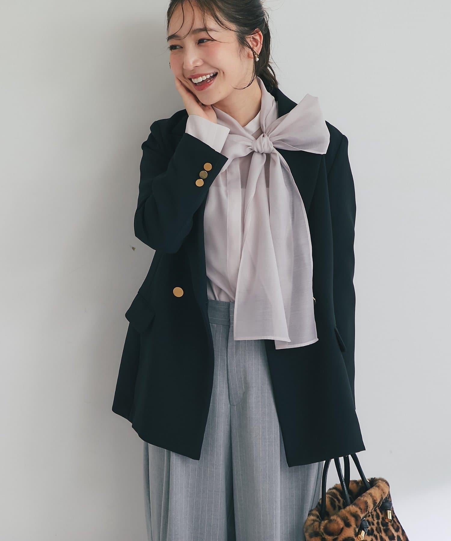 帶有大蝴蝶結領結設計的透視上衣既迷人又優雅。