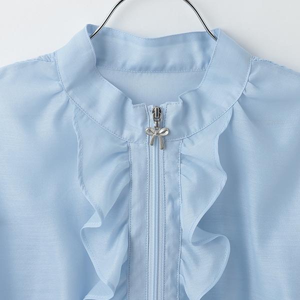 因為是立領,而前襟的褶邊又有甜美的感覺,所以可以隨意穿出成熟的韻味。