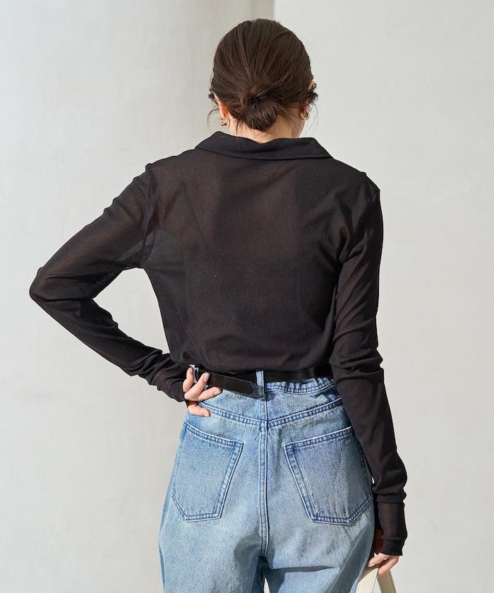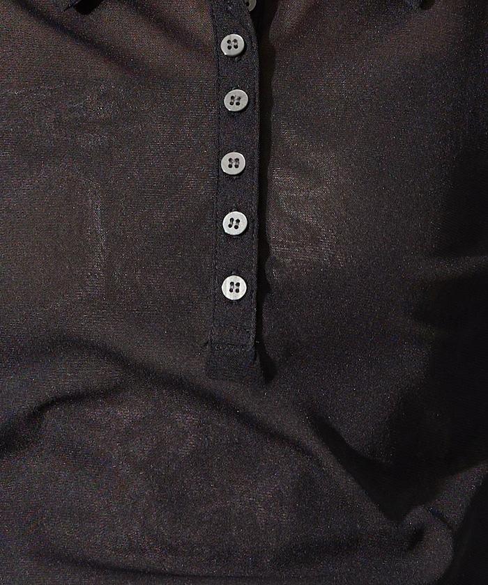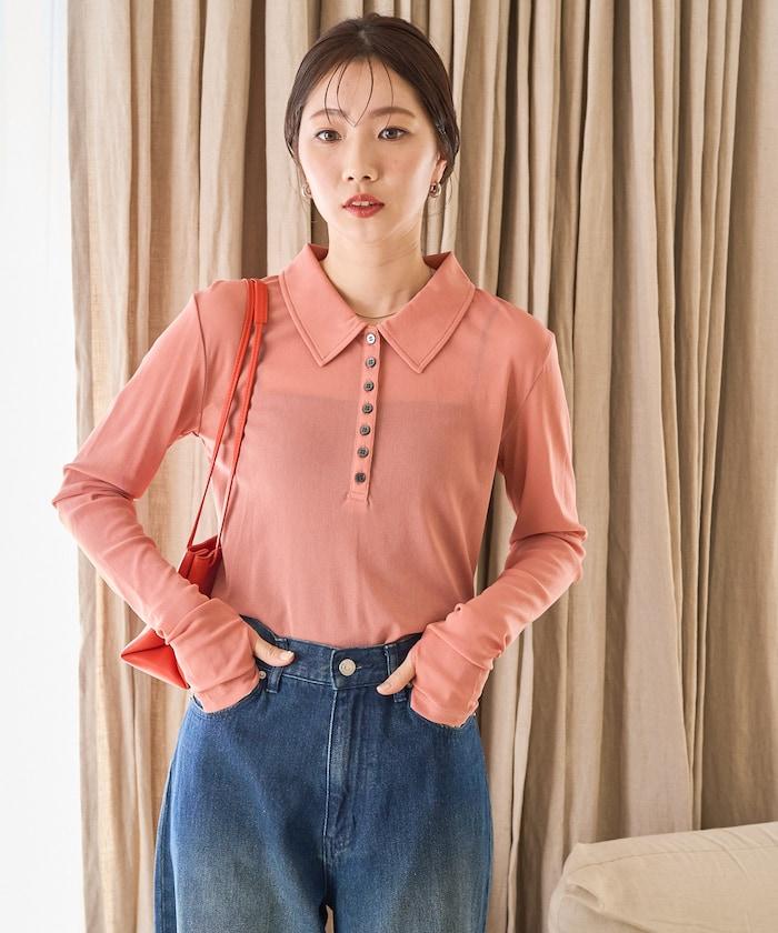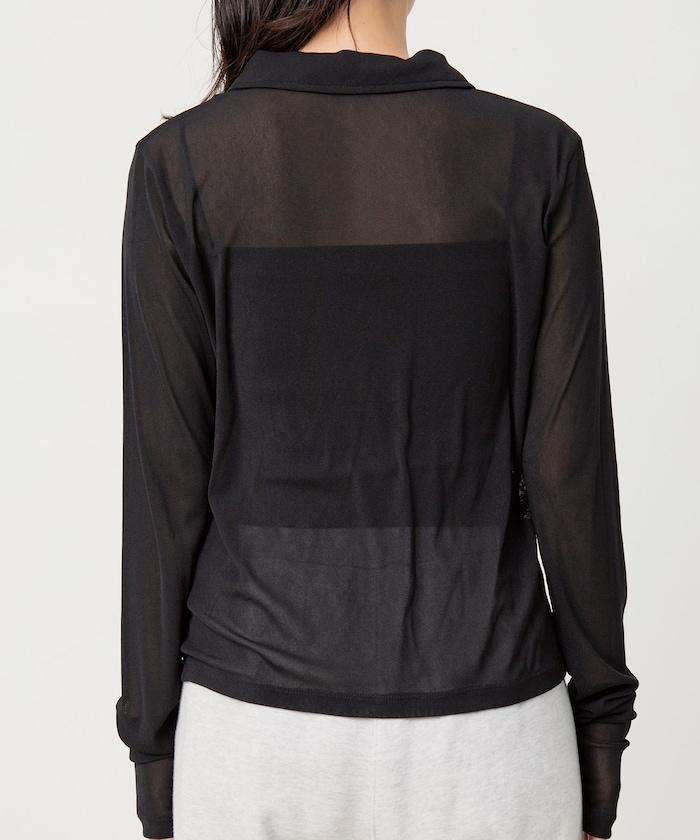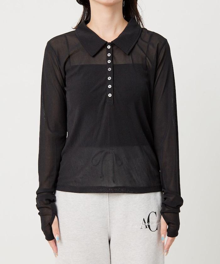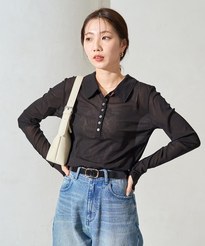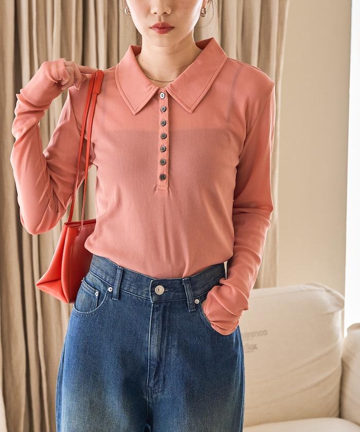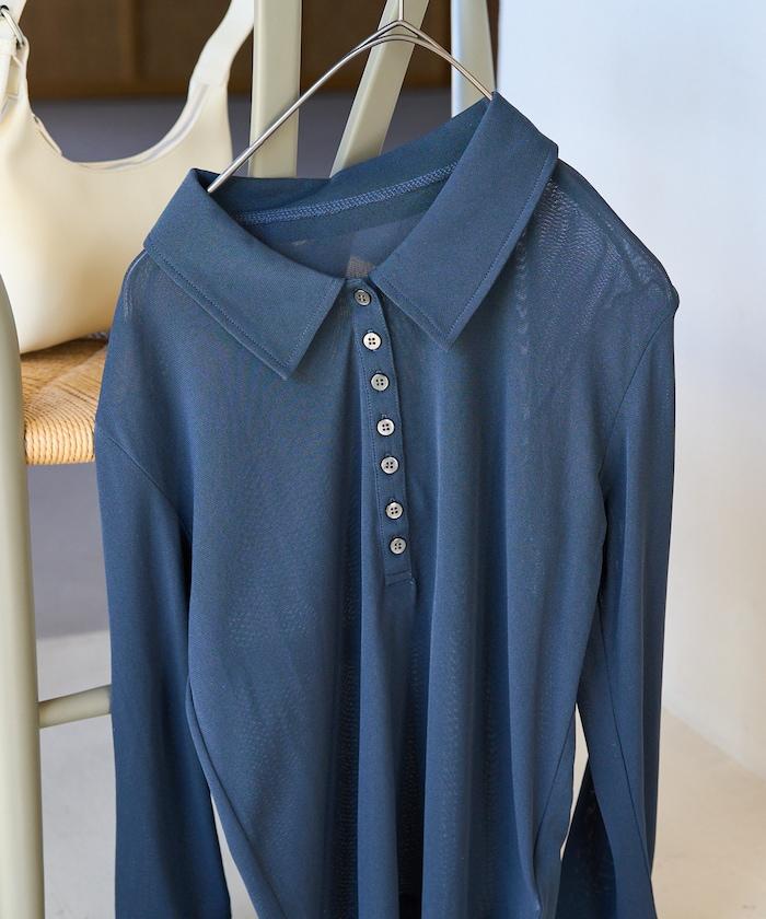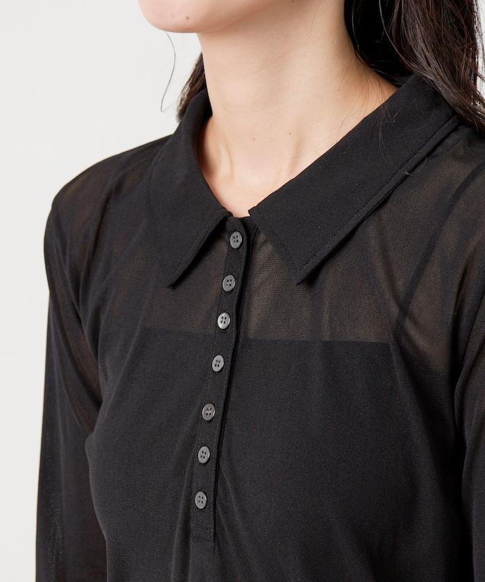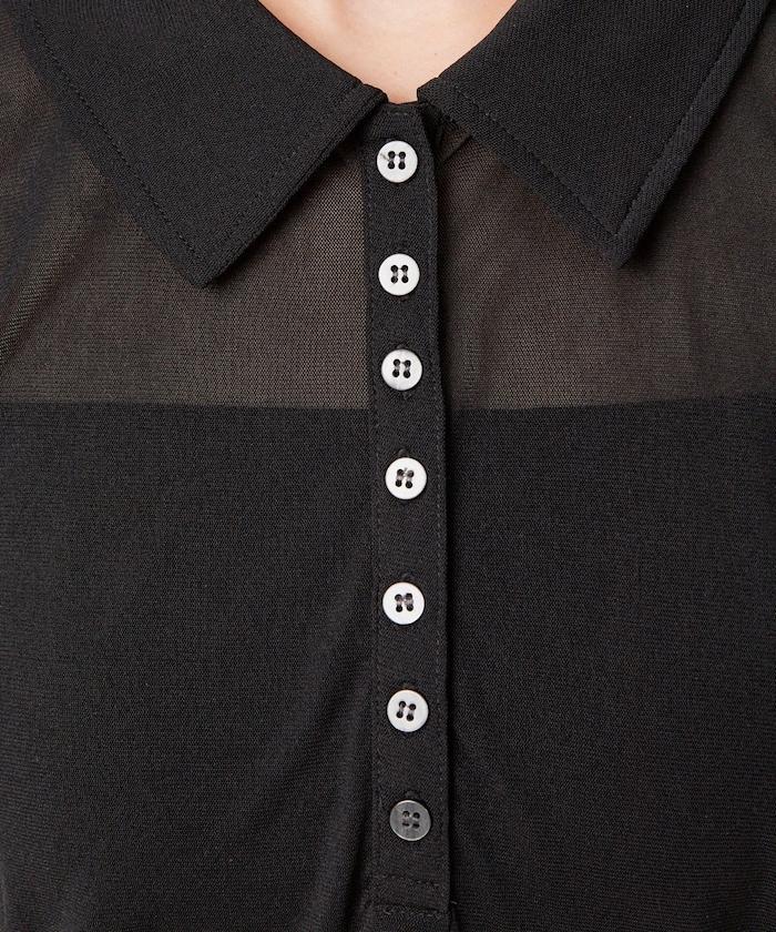 一款具有優雅透視感和 polo 領設計的時尚上衣。