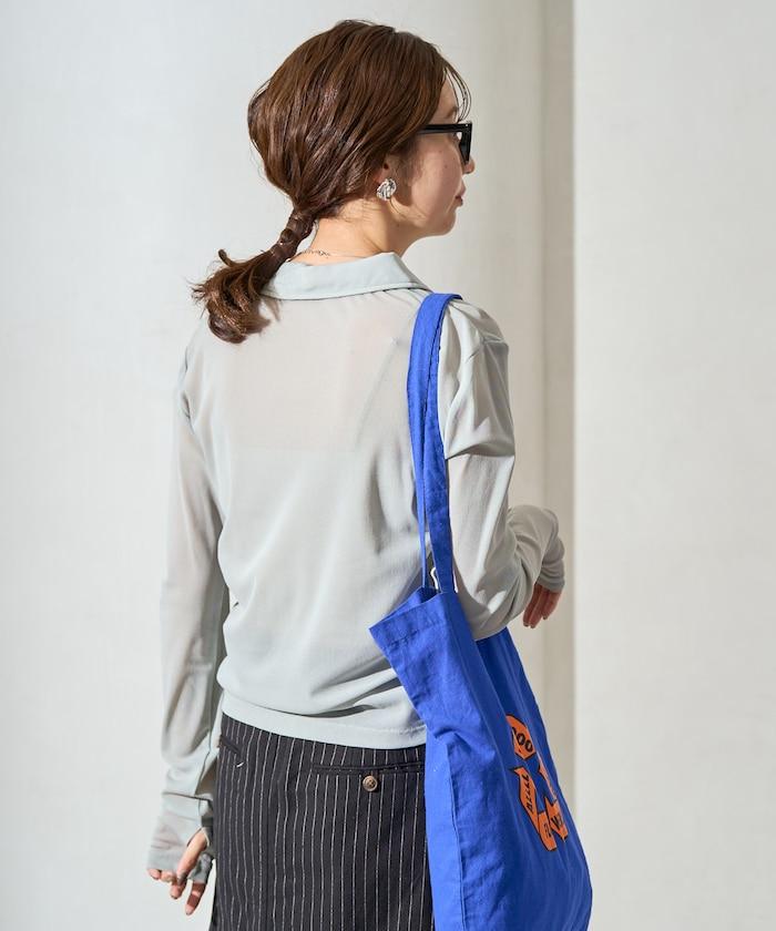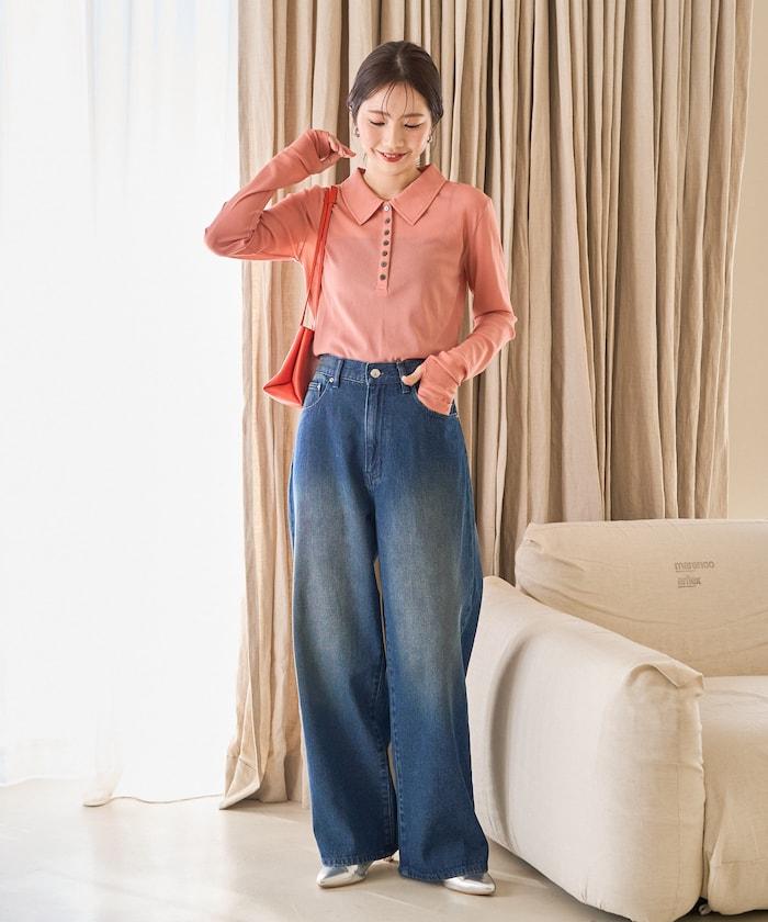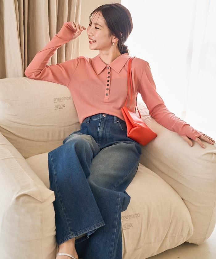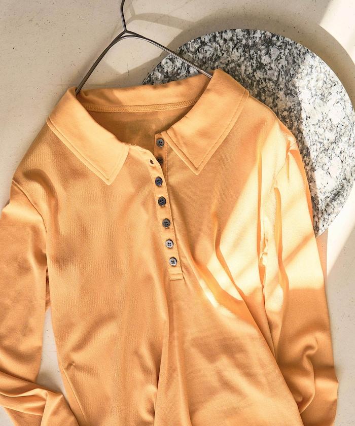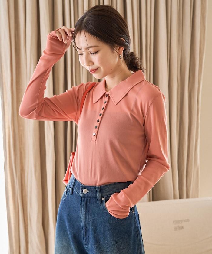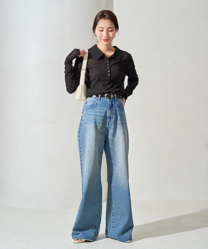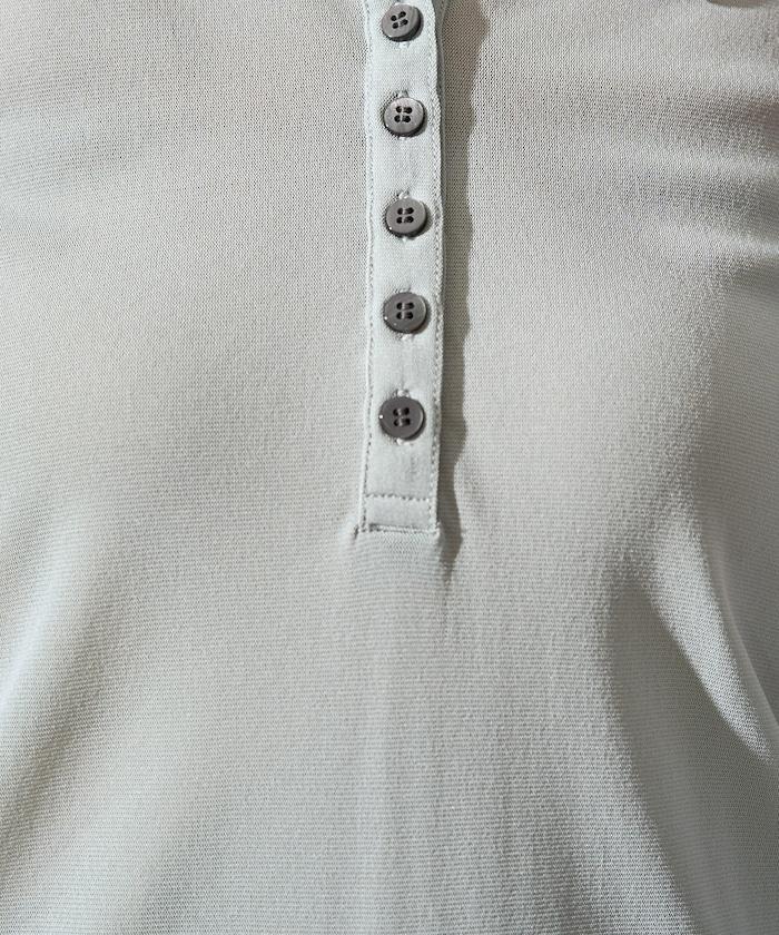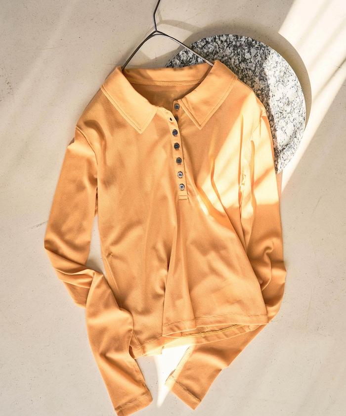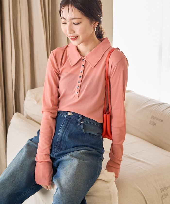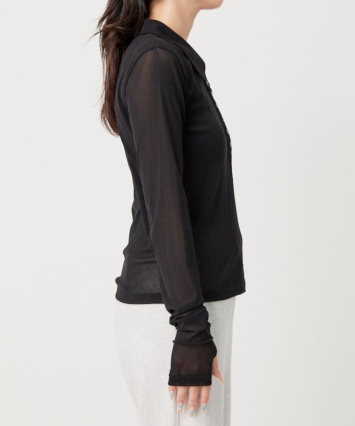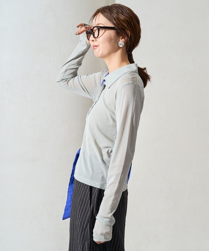 一款具有優雅透視感和 polo 領設計的時尚上衣。