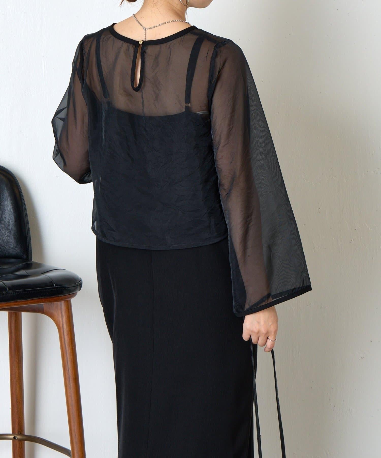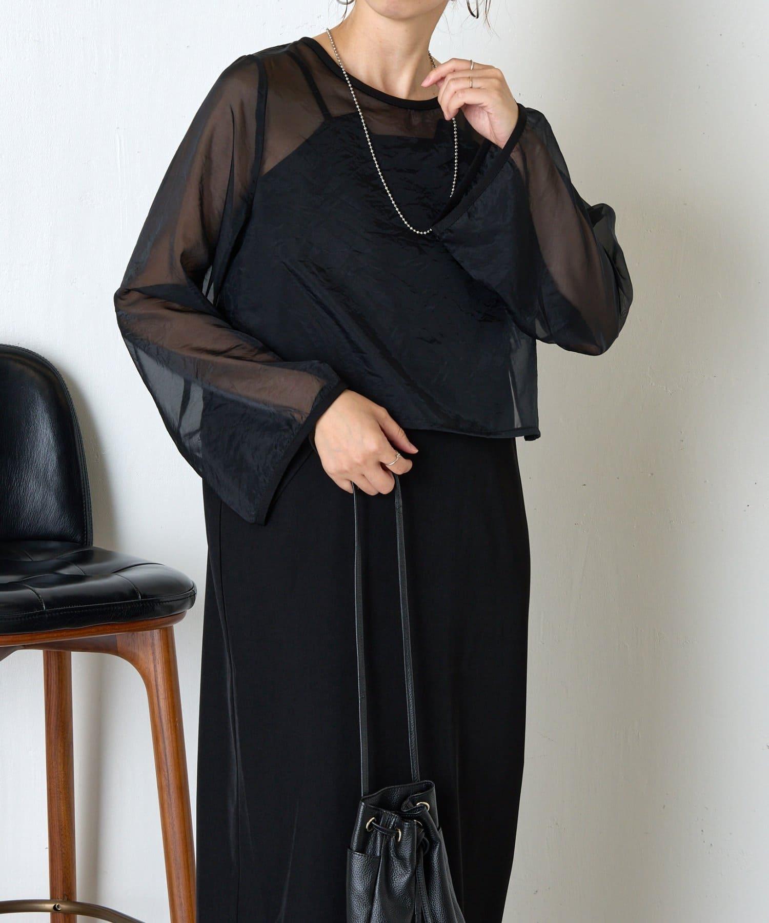 這是一款半場合單品,包括一件優雅成熟的吊帶連衣裙和一件透視上衣。