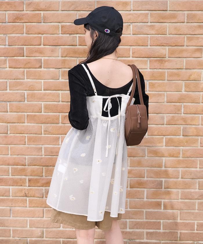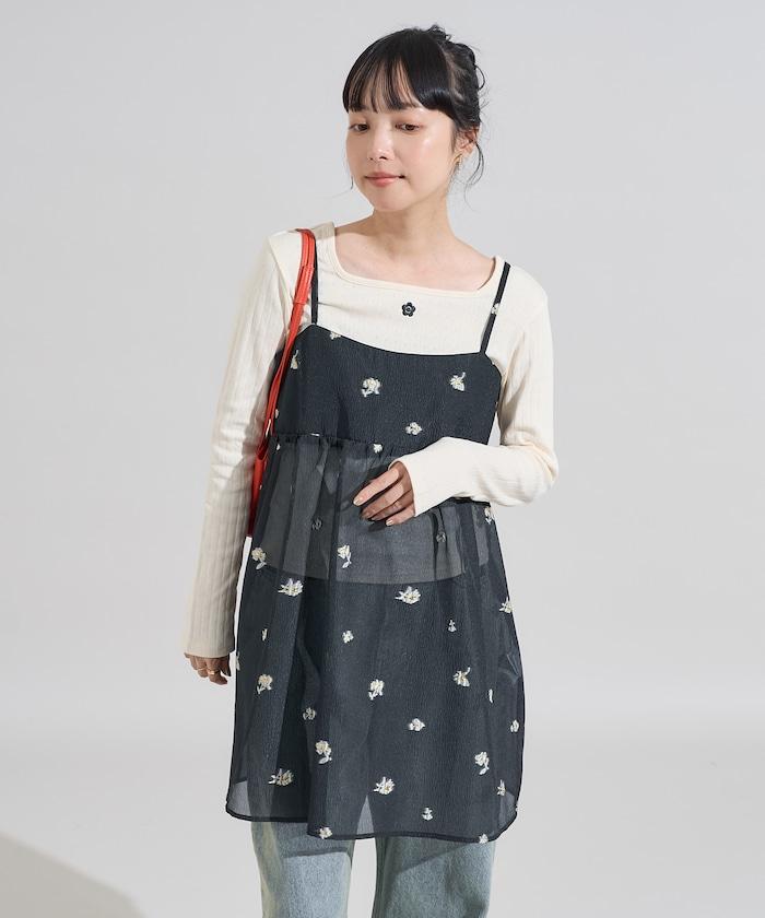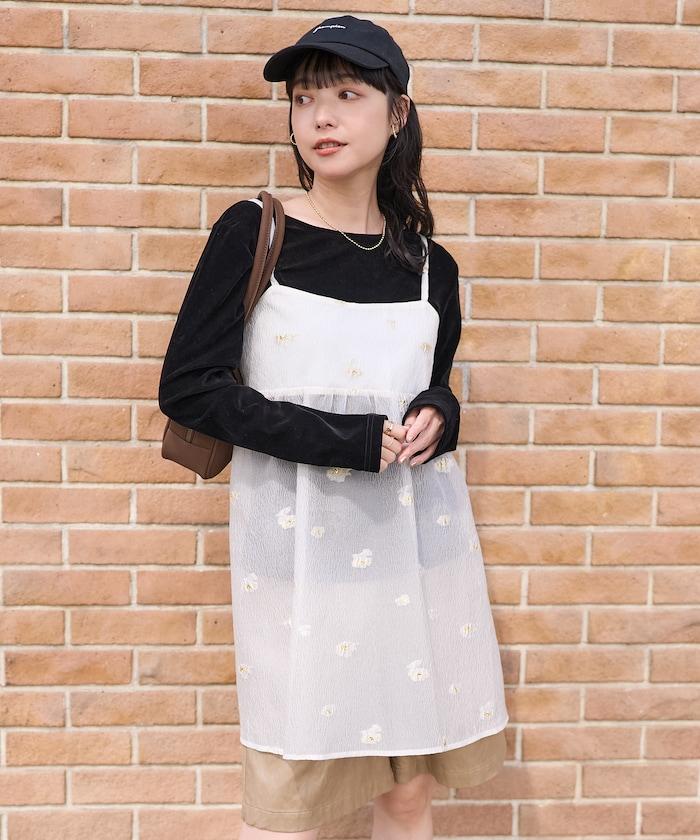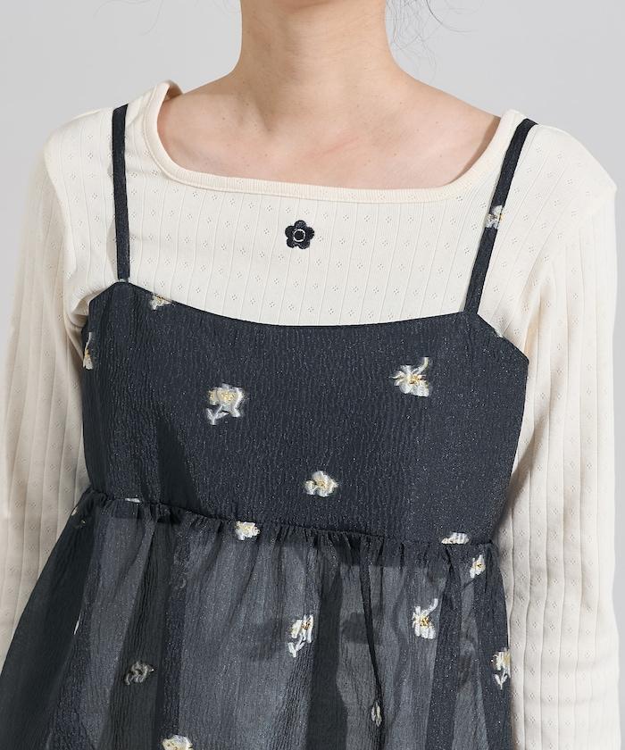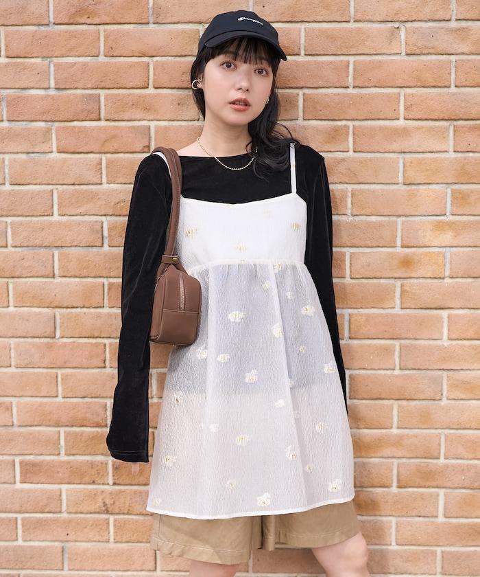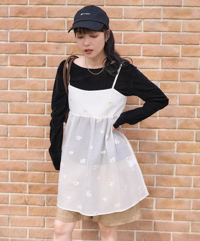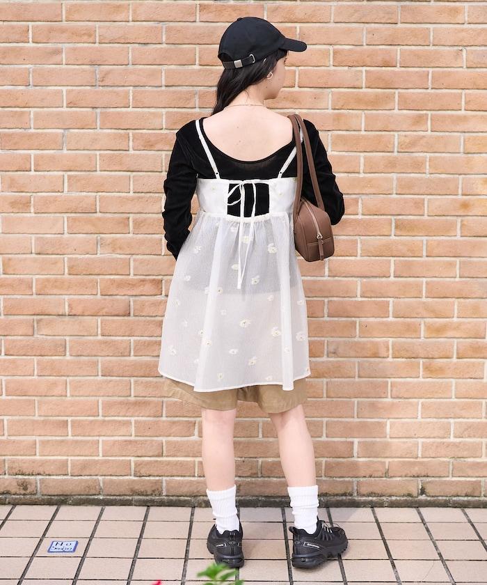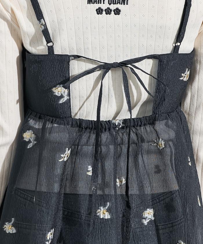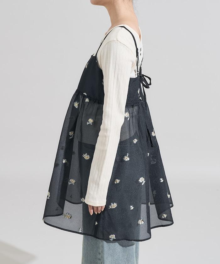 採用透視提花面料製成,繡有花朵,由我們原創。