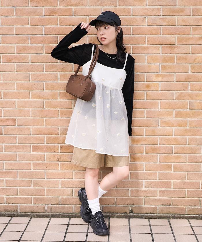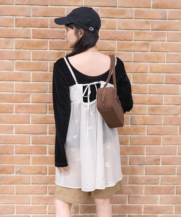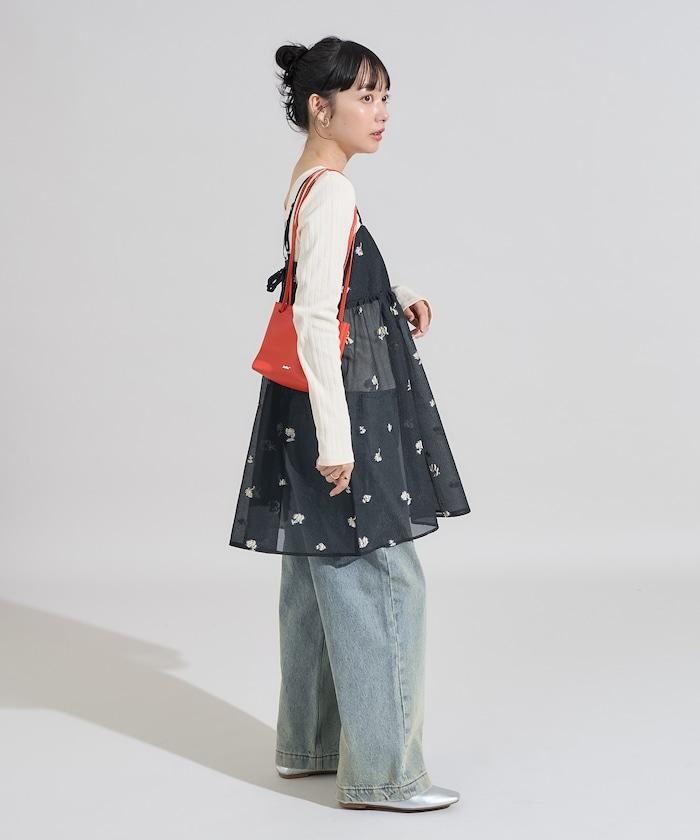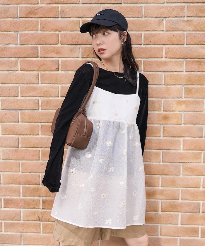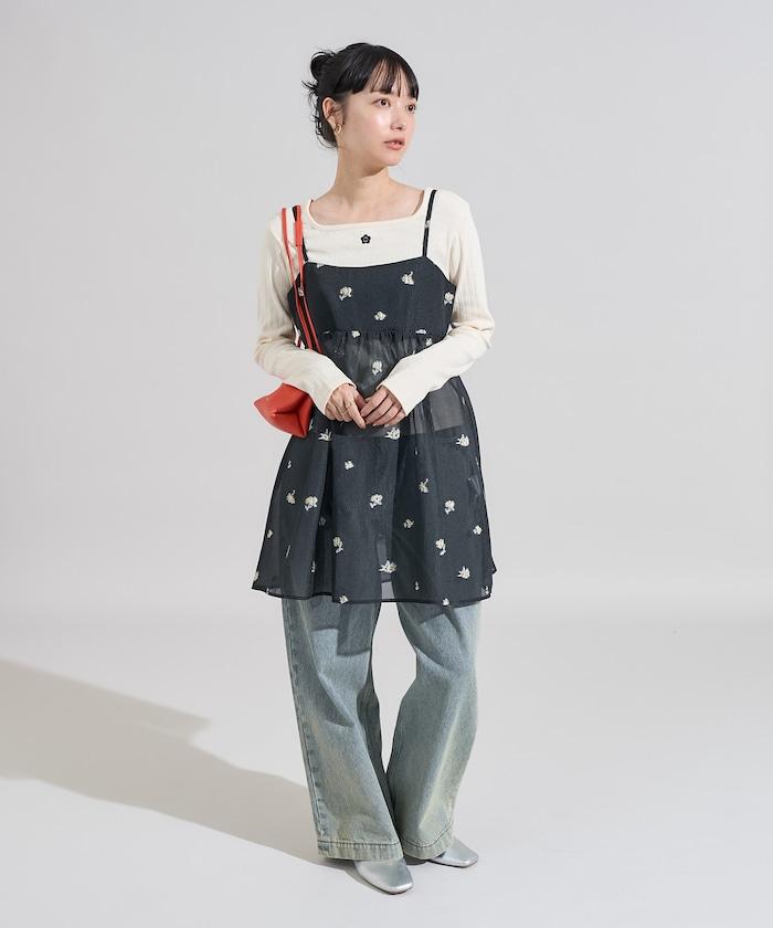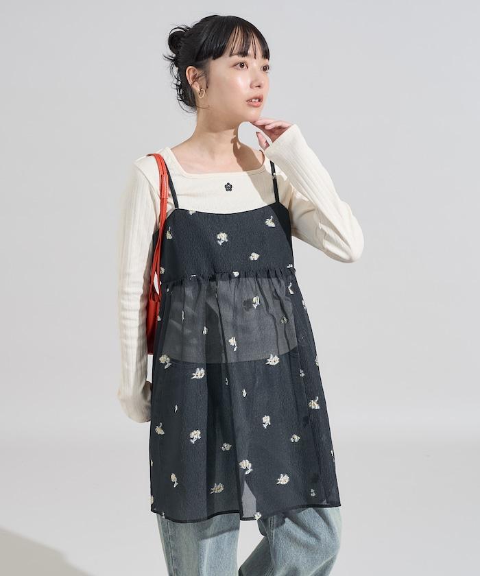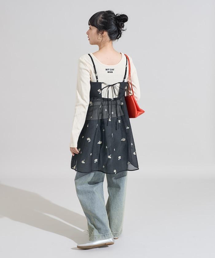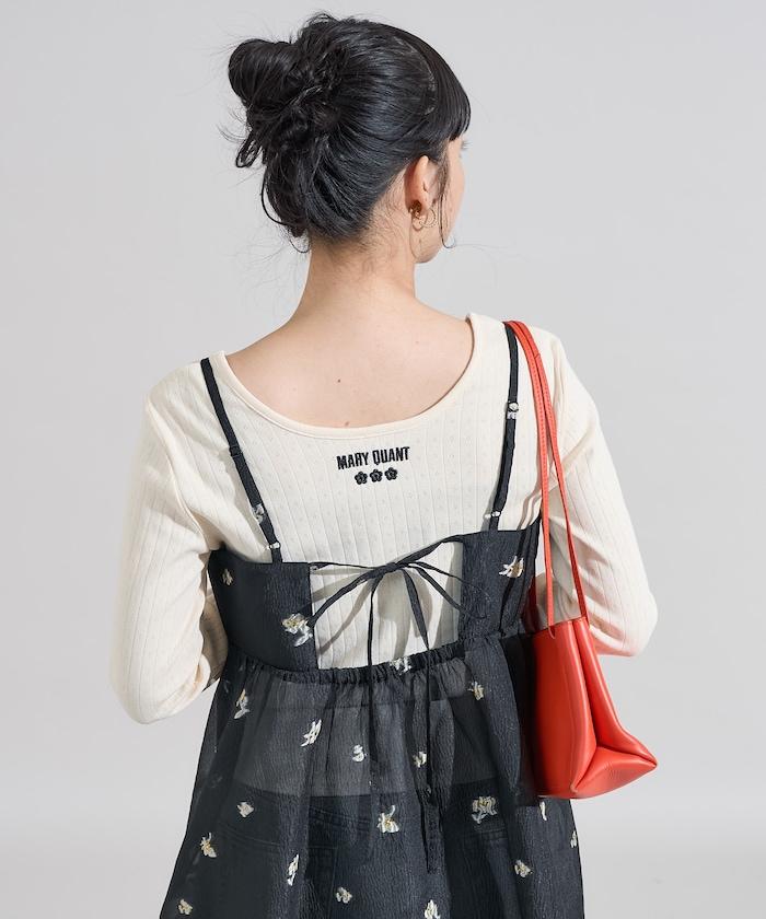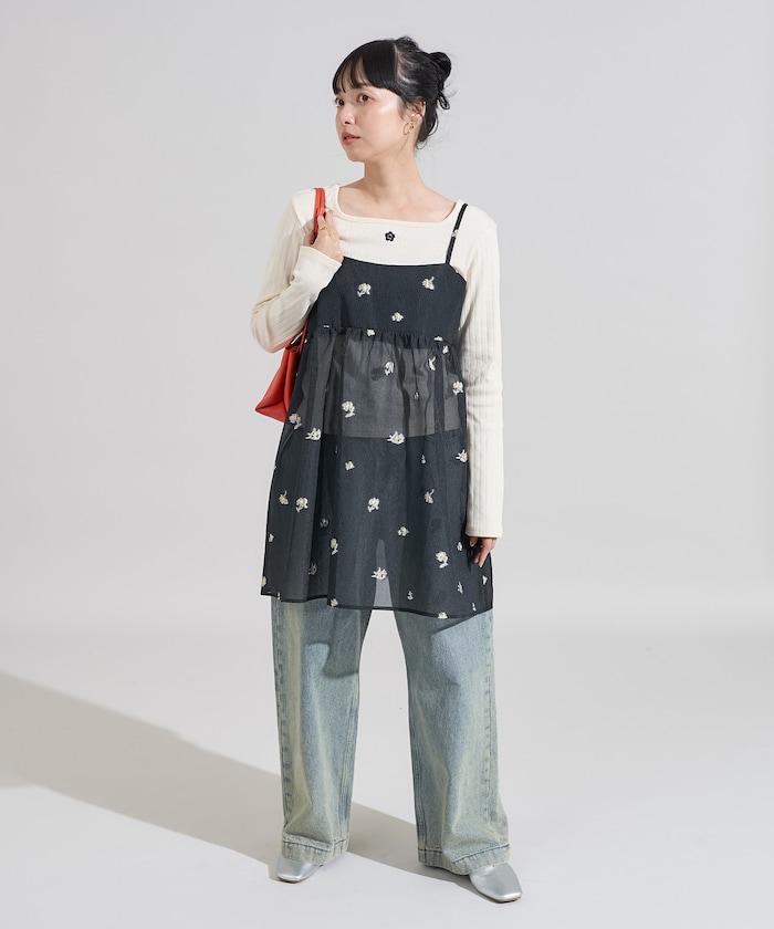 採用透視提花面料製成,繡有花朵,由我們原創。
