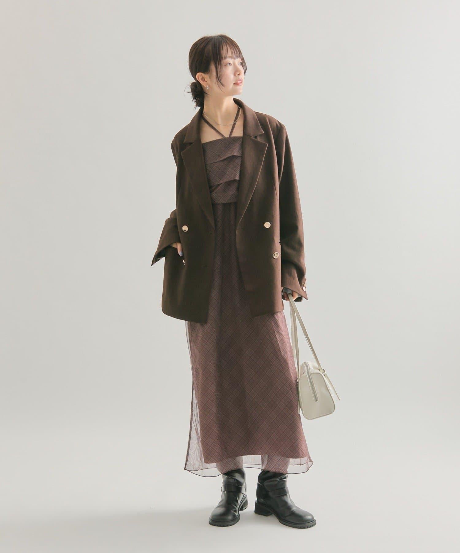 薄紗材質給人寬鬆的感覺,格紋圖案則增添了秋天的氣息。